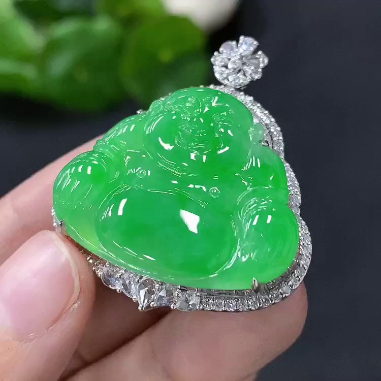 翡翠佛公镶嵌挂件 18k金镶 总重约13.9克工艺品