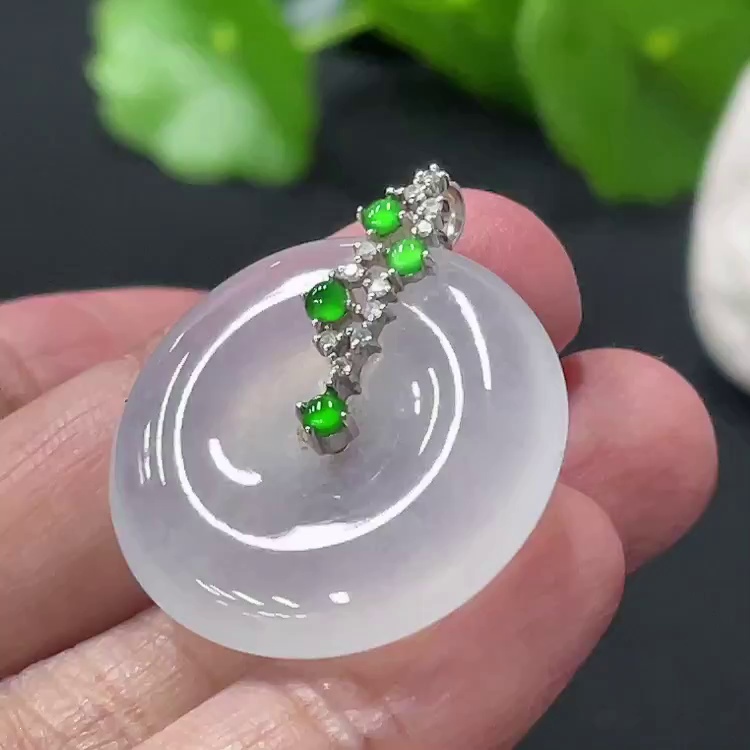 翡翠平安扣挂件 18k金扣头 货品总重约9.28g工艺品