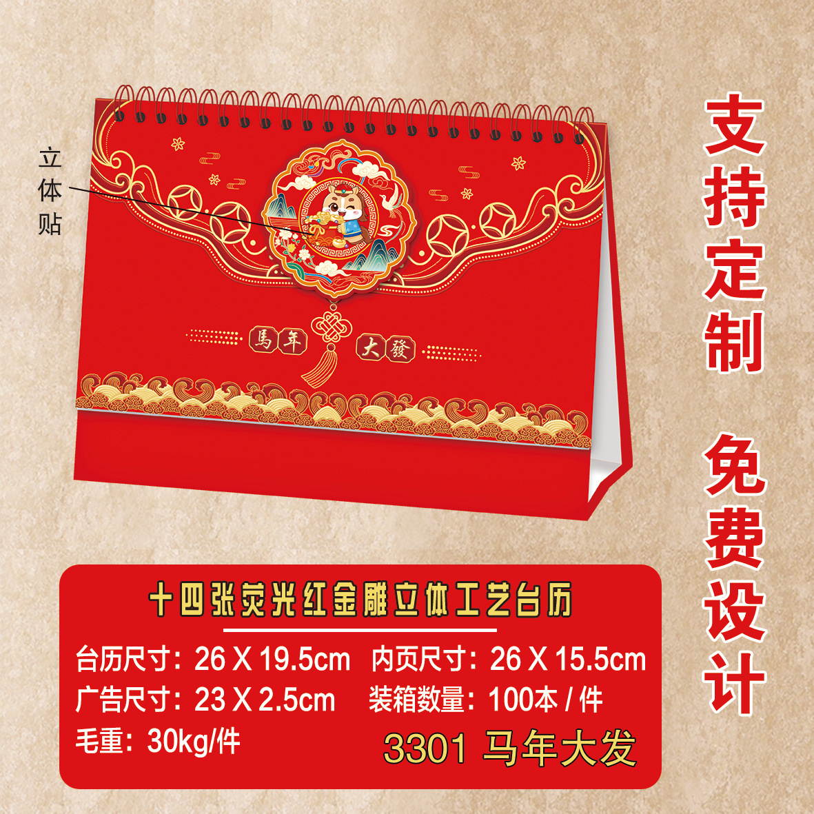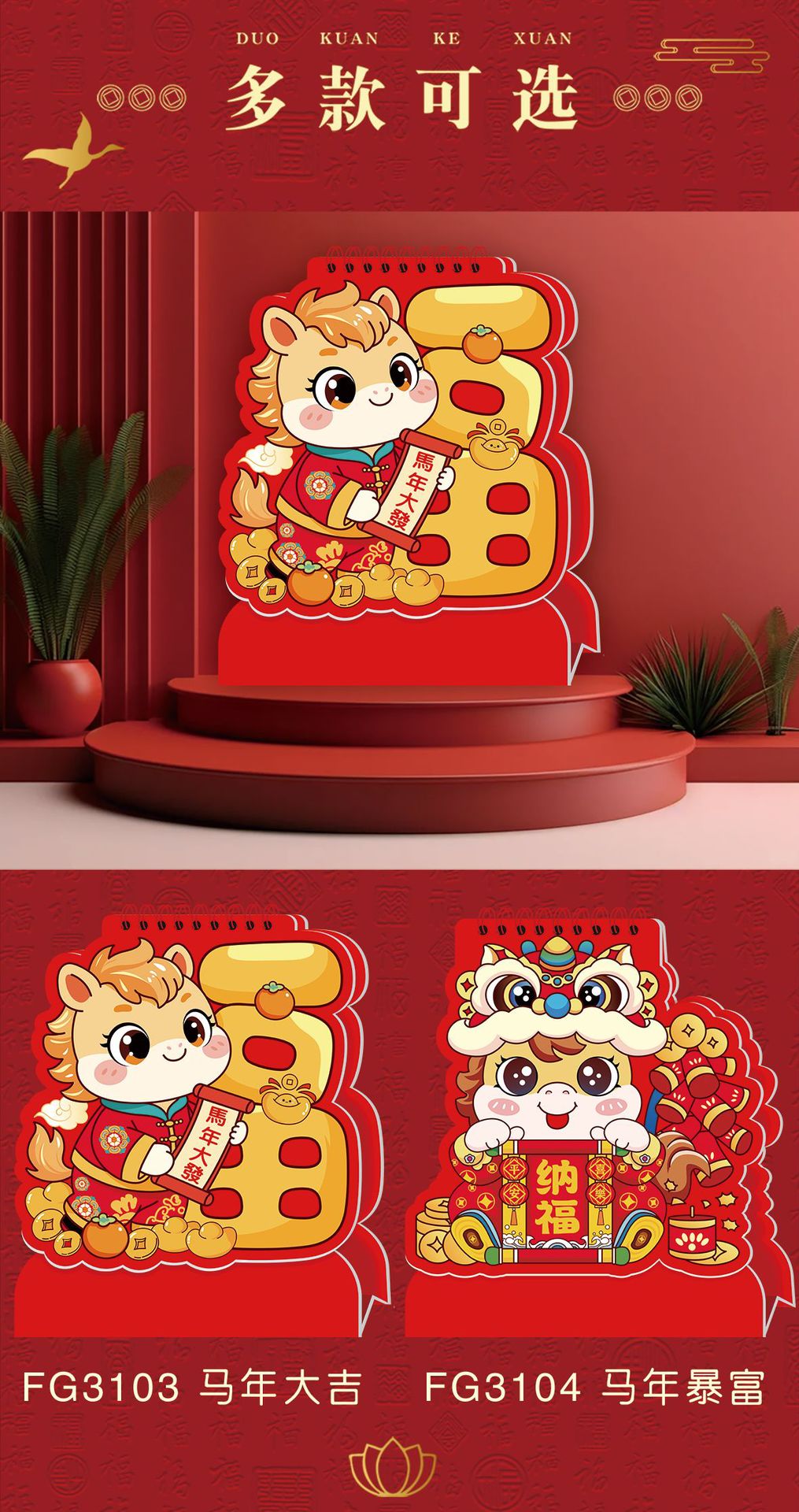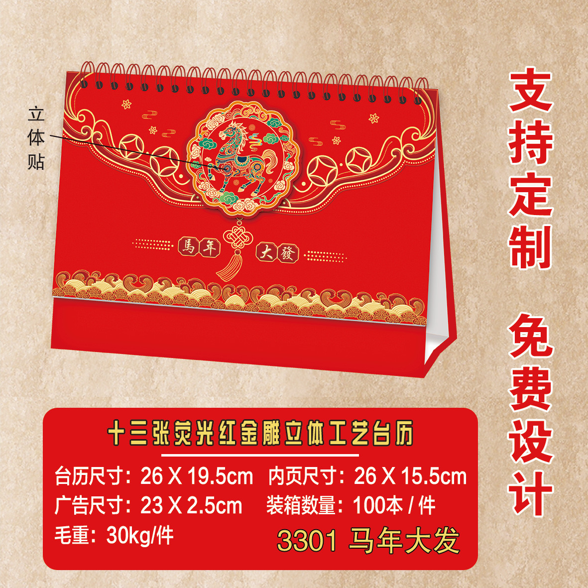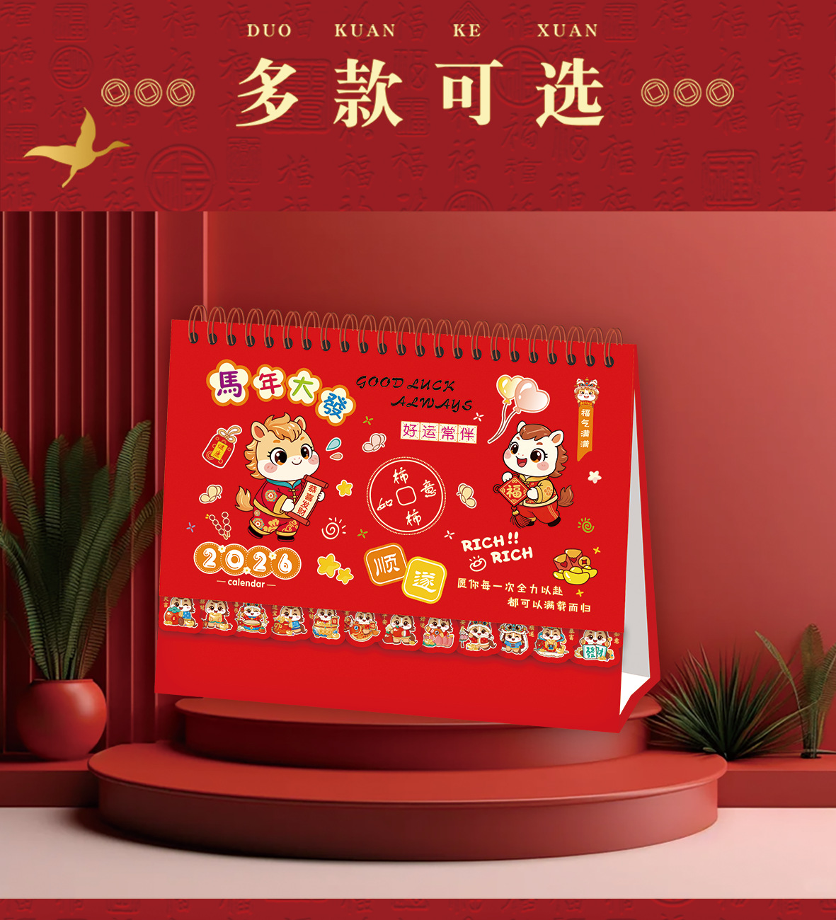 2026马年台历定制logo新款可爱创意台历卡通多功能记事日历桌面