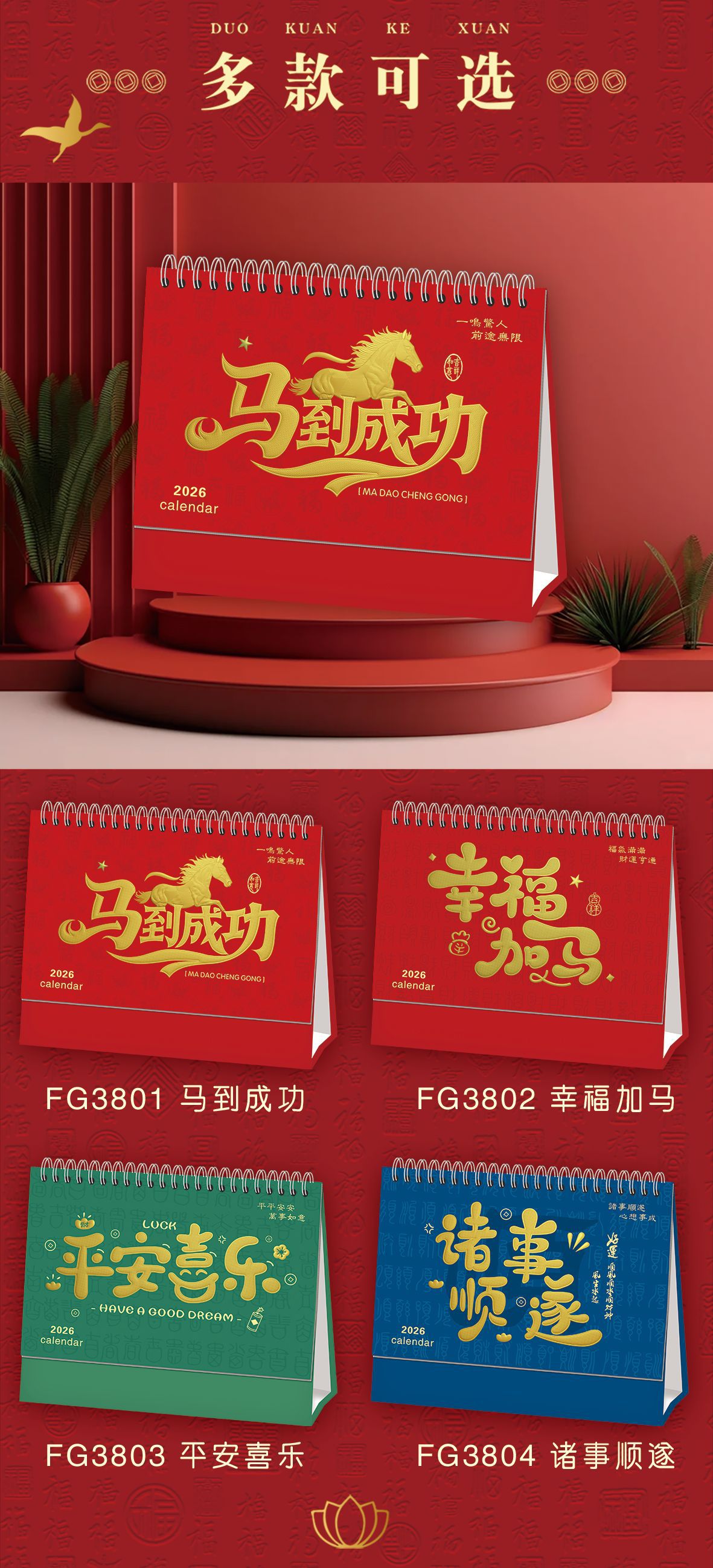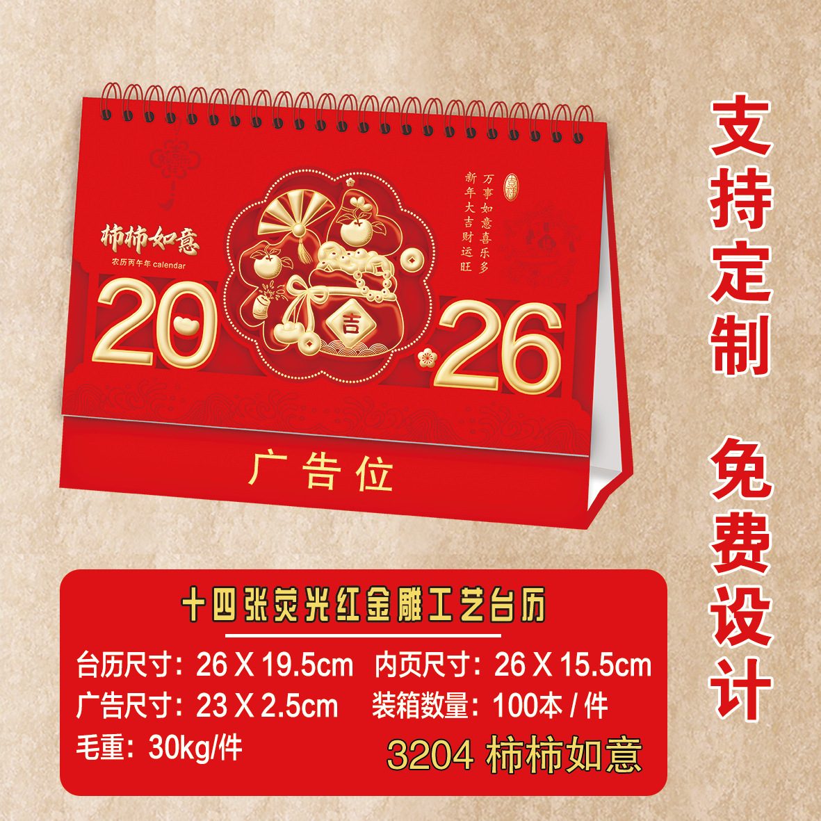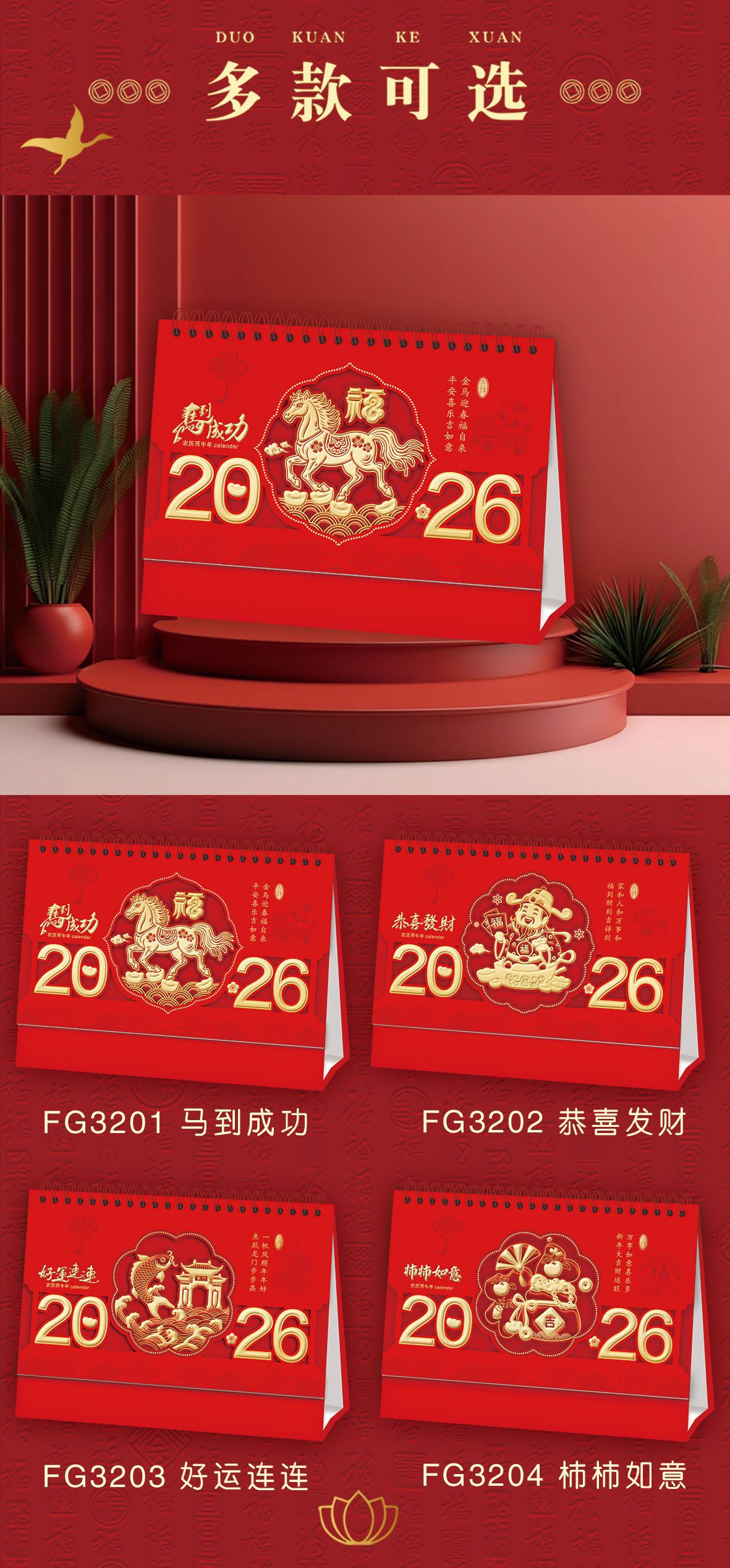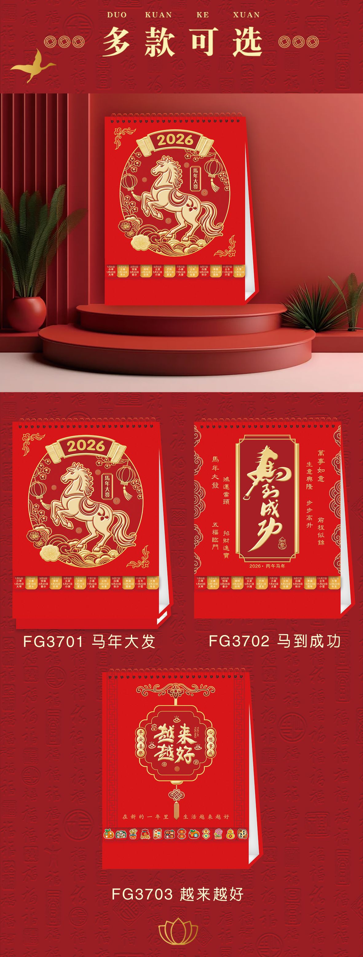 2026马年台历定制logo新款可爱创意台历卡通多功能记事日历桌面