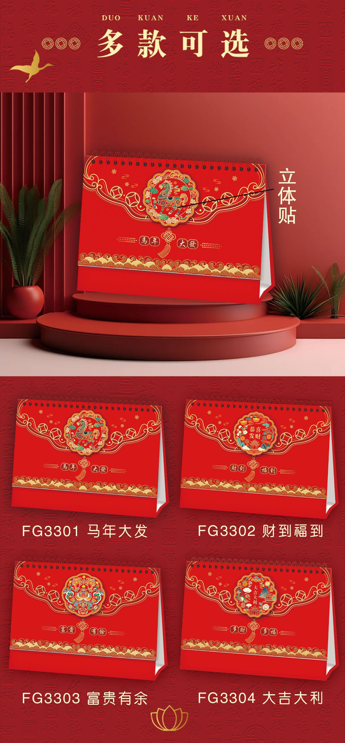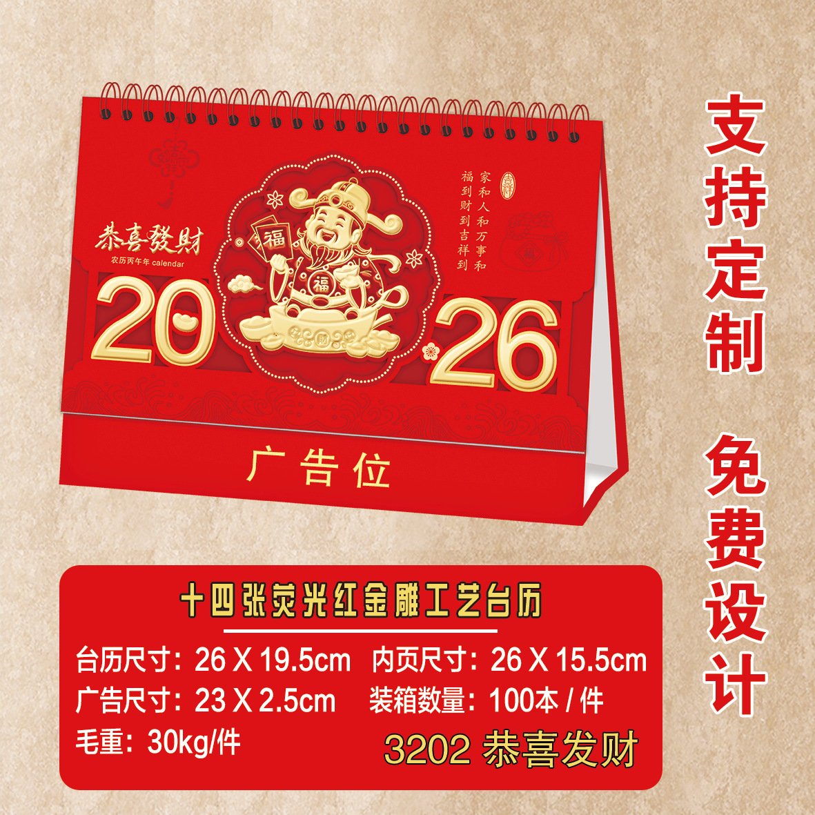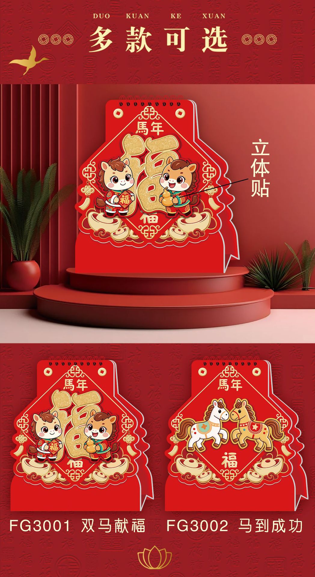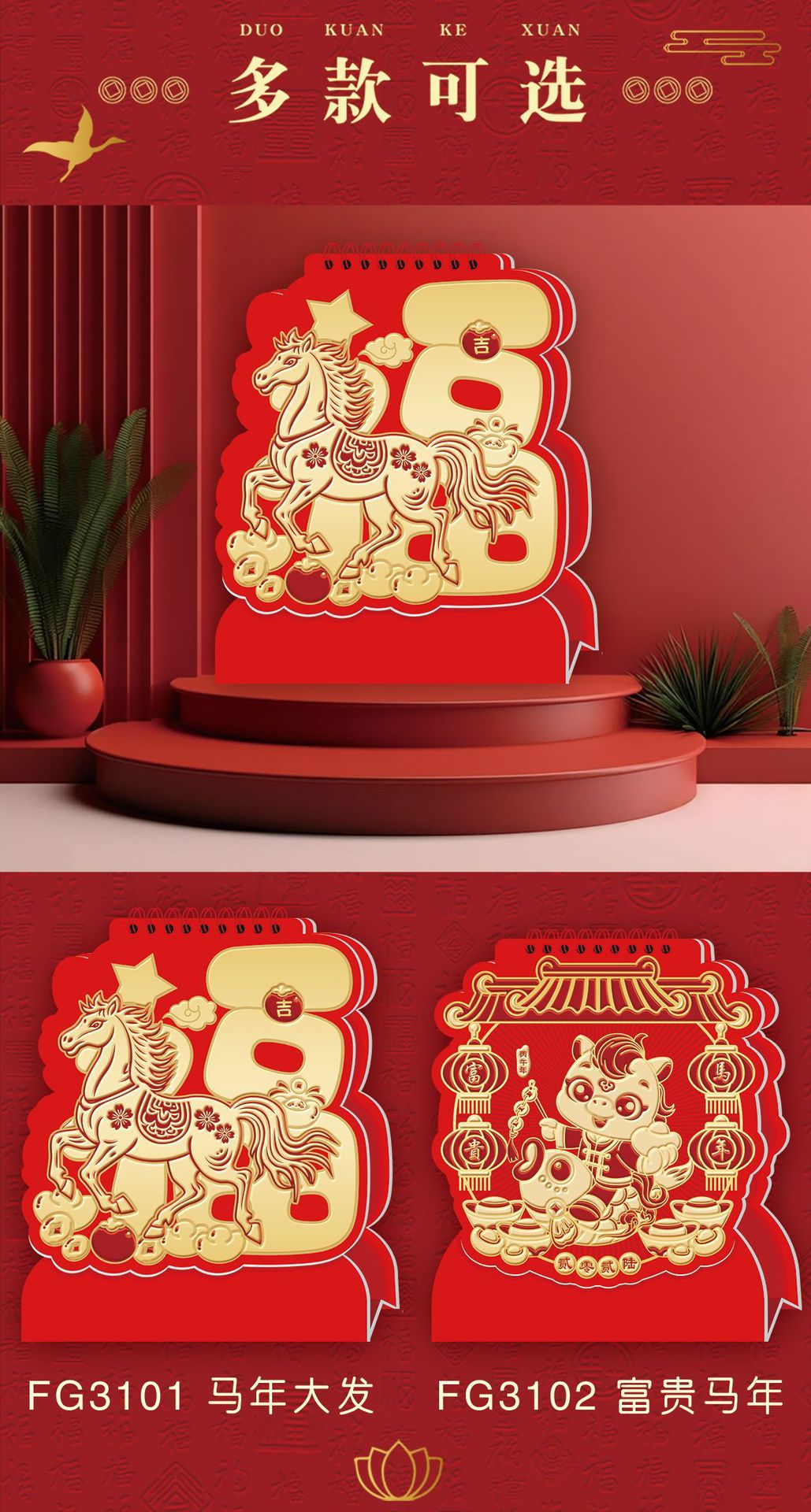 2026马年台历定制logo新款可爱创意台历卡通多功能记事日历桌面