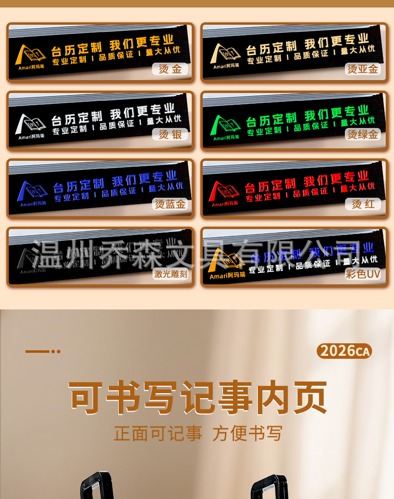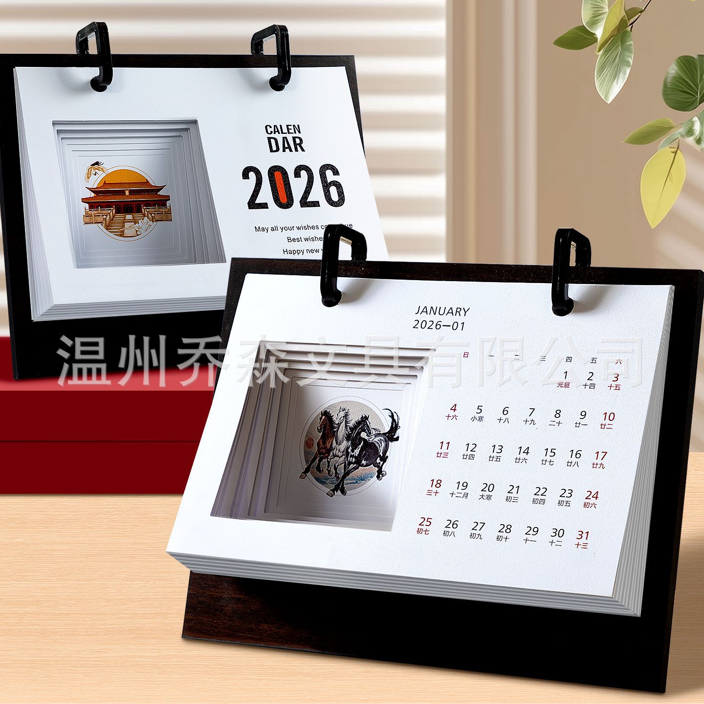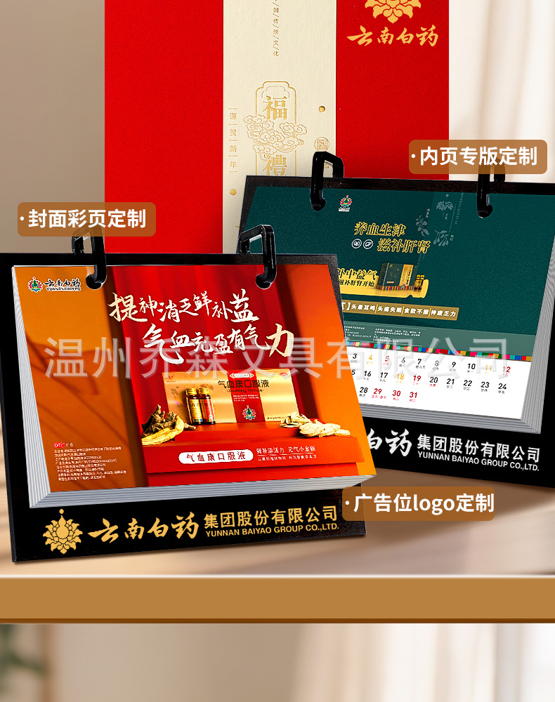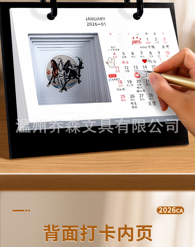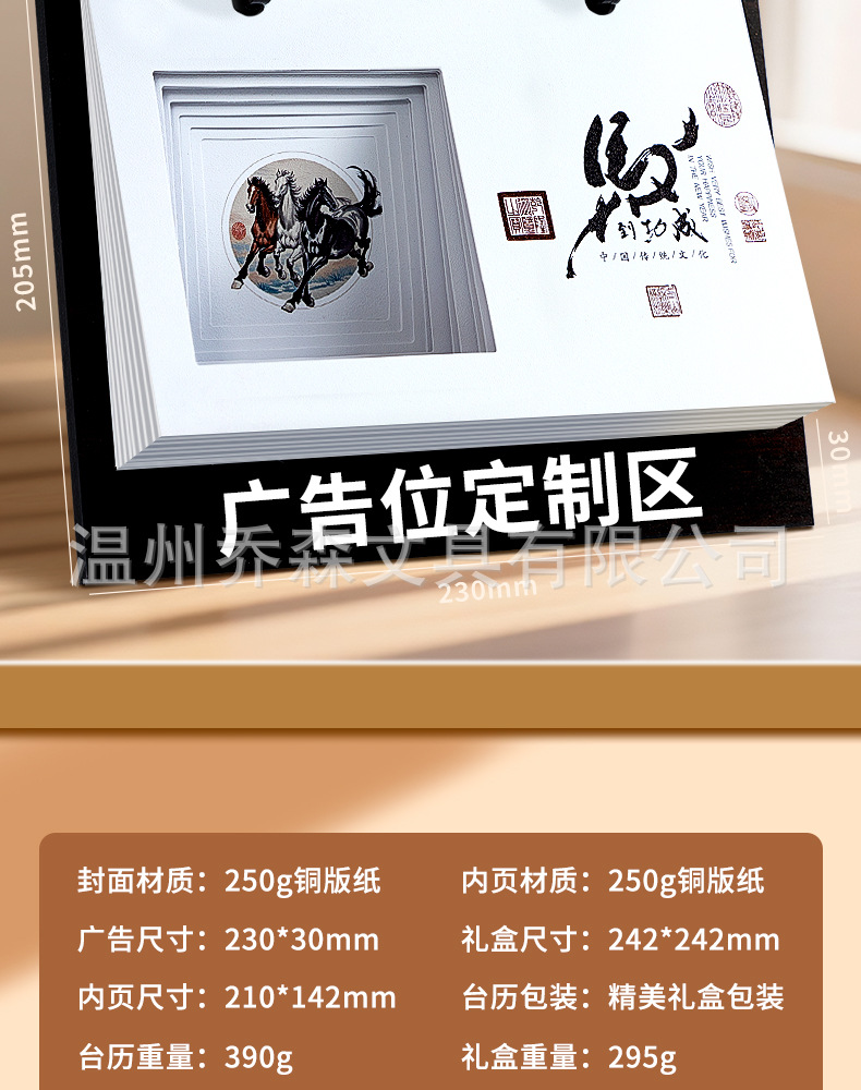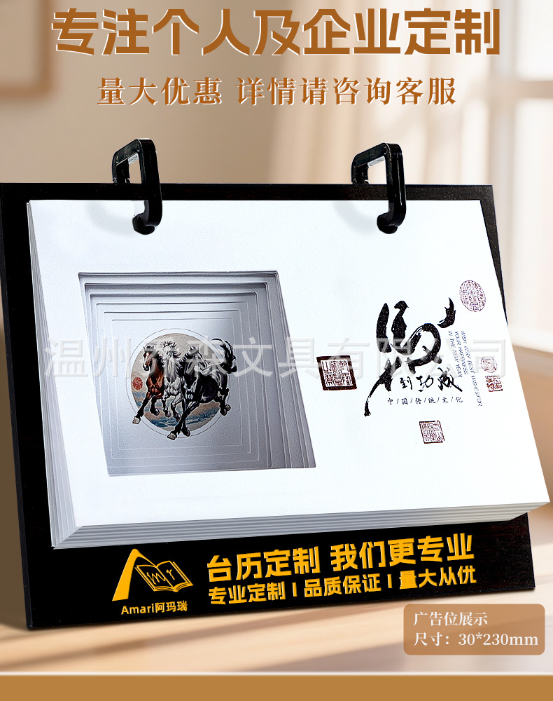 轻奢台历定制轻奢高级木质办公摆件收纳日历套装新款定做马年台历