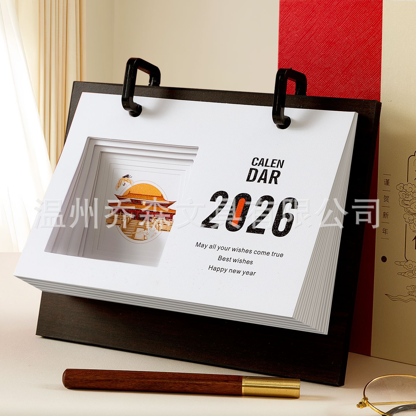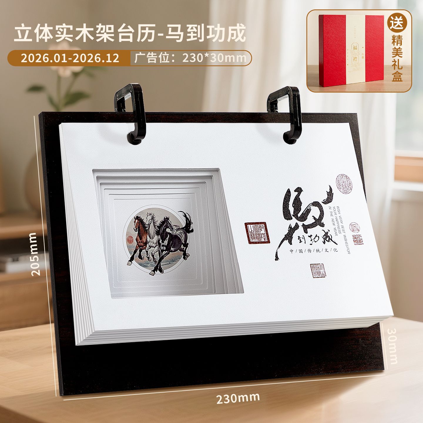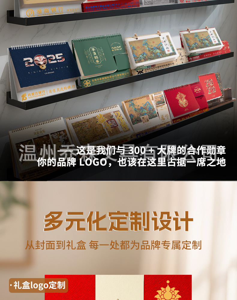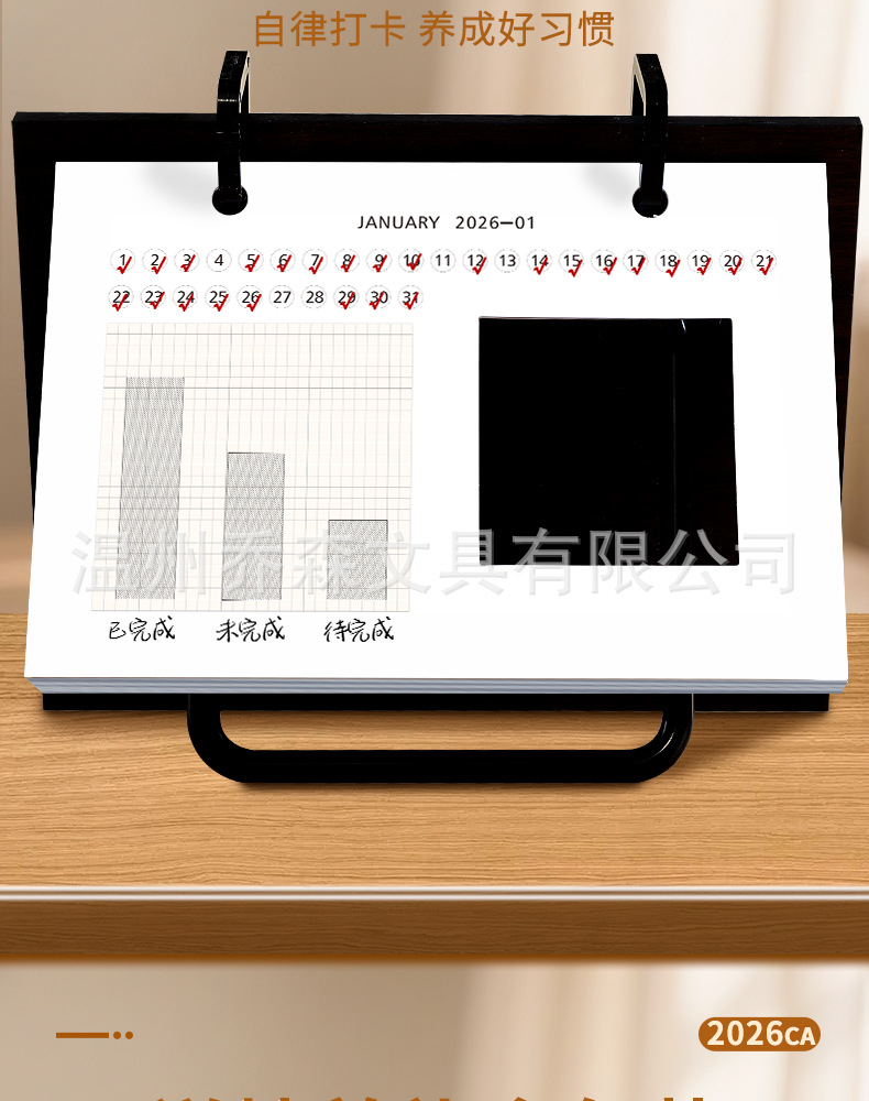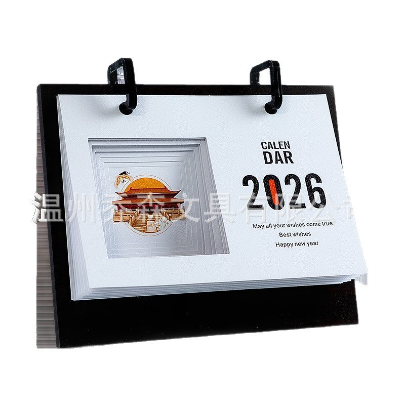 轻奢台历定制轻奢高级木质办公摆件收纳日历套装新款定做马年台历