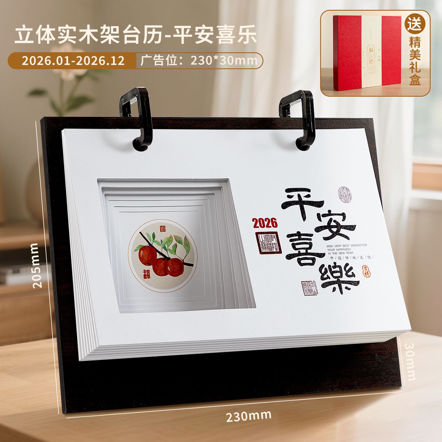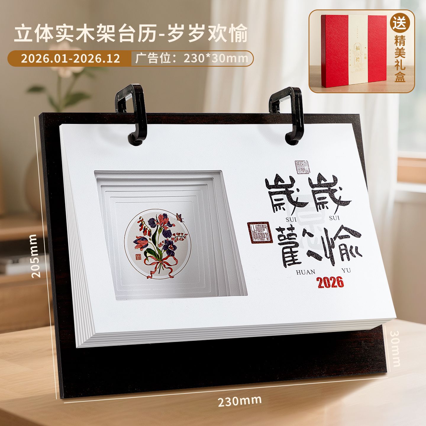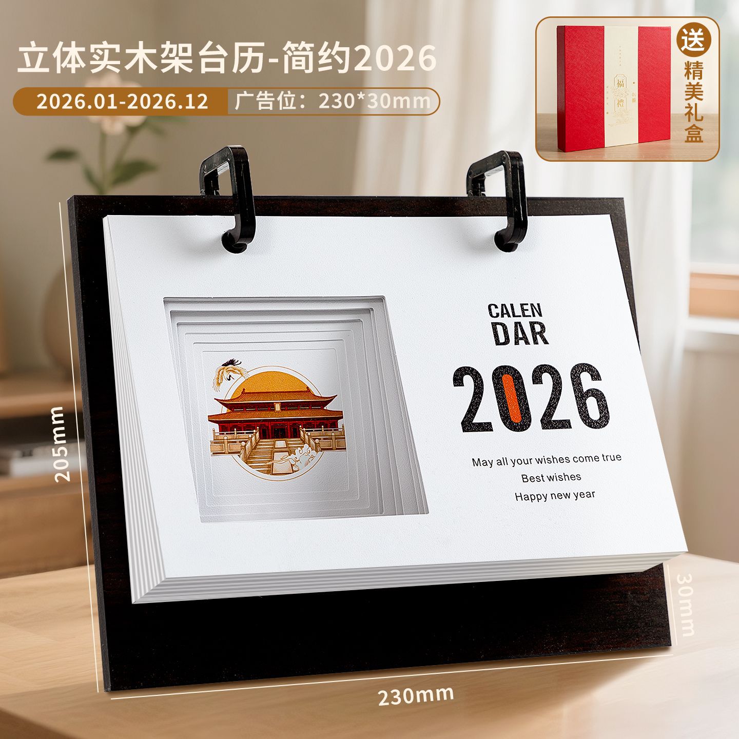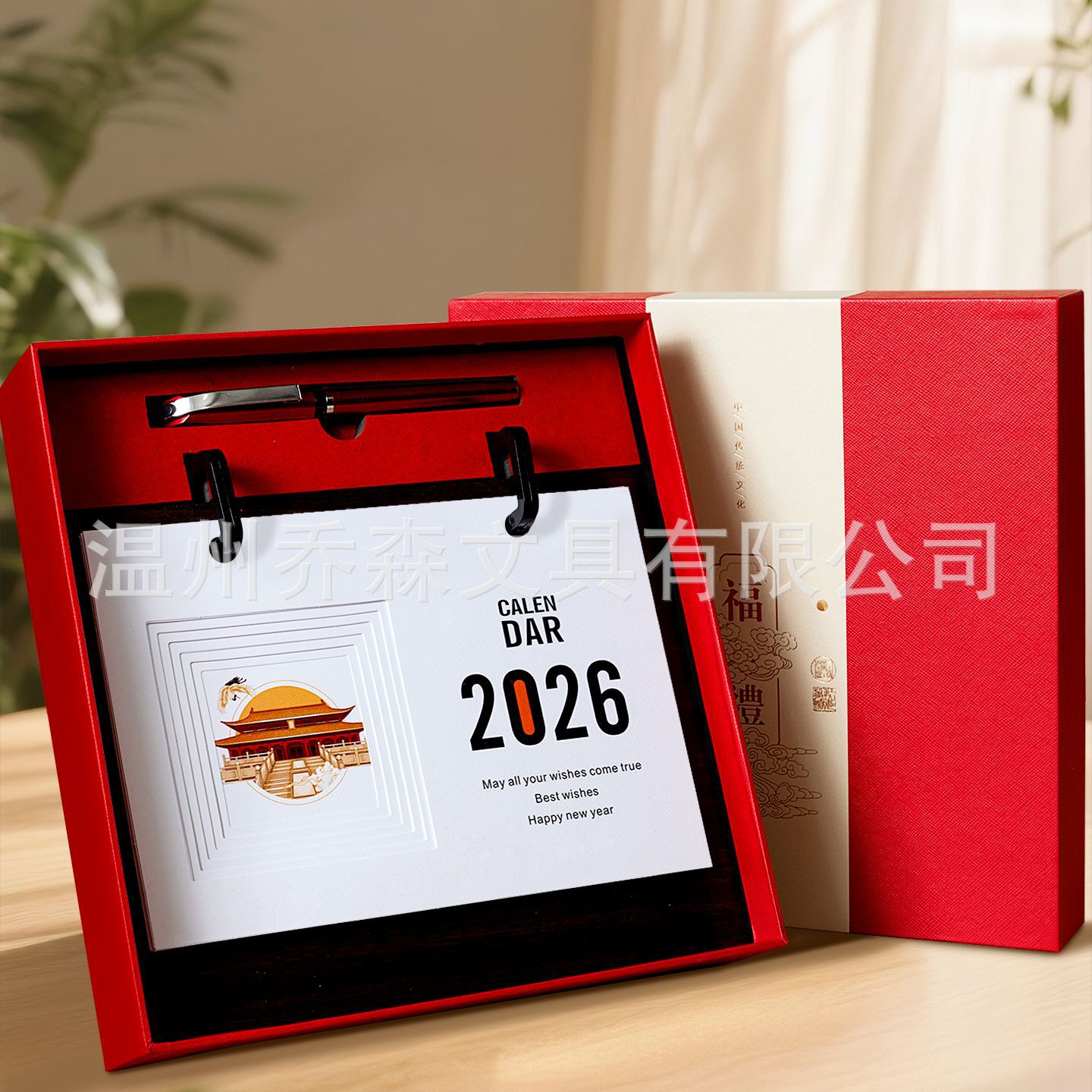 轻奢台历定制轻奢高级木质办公摆件收纳日历套装新款定做马年台历