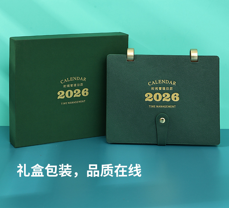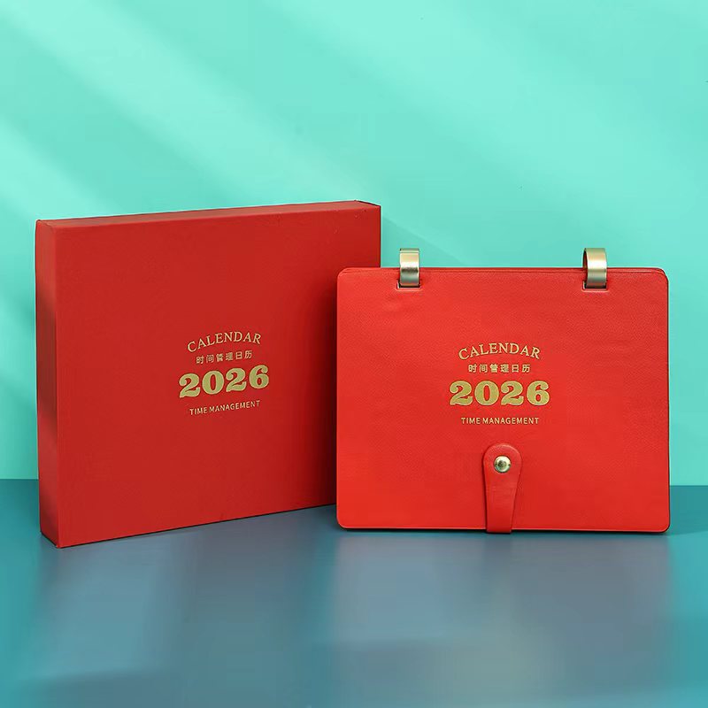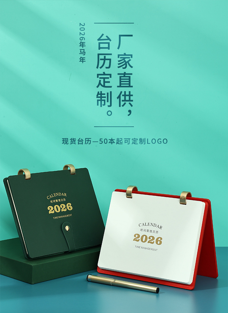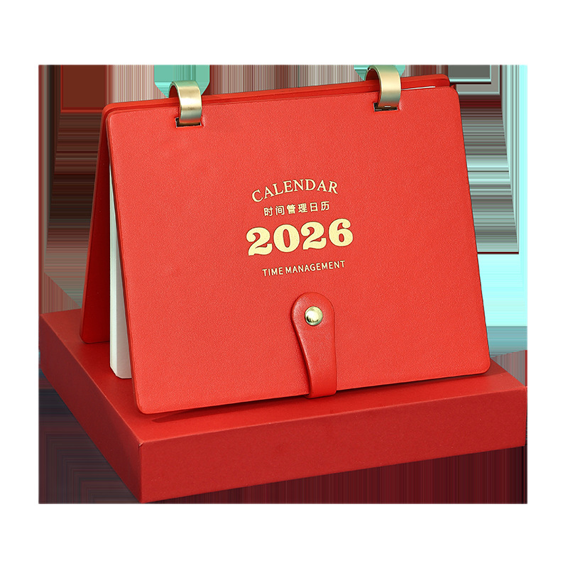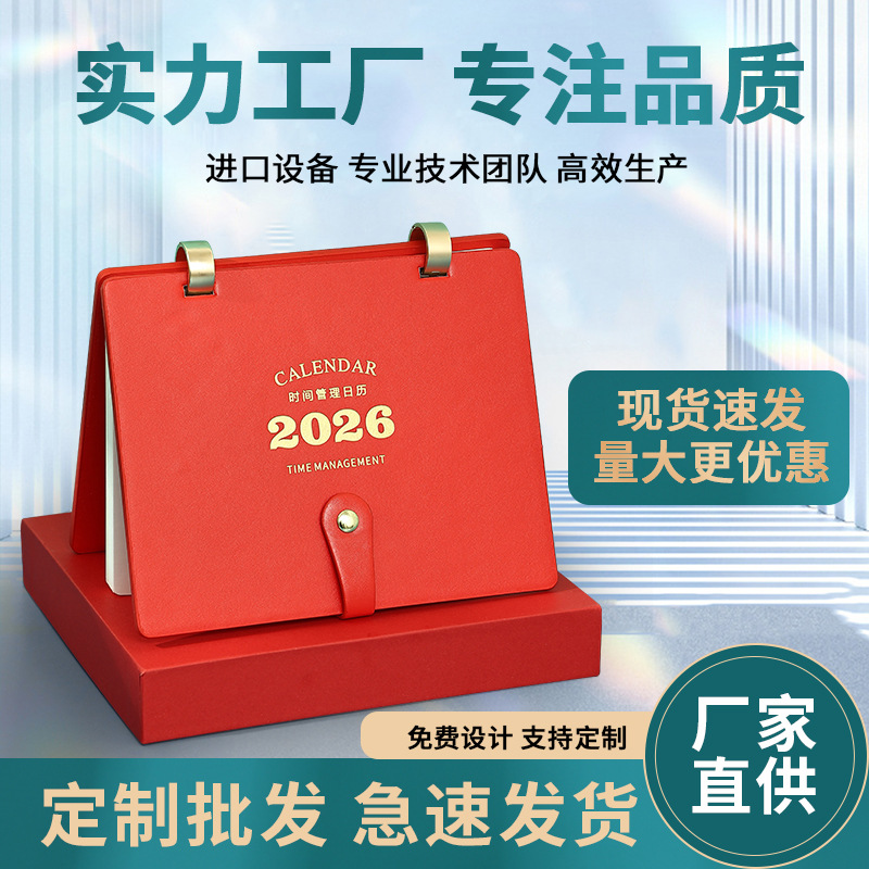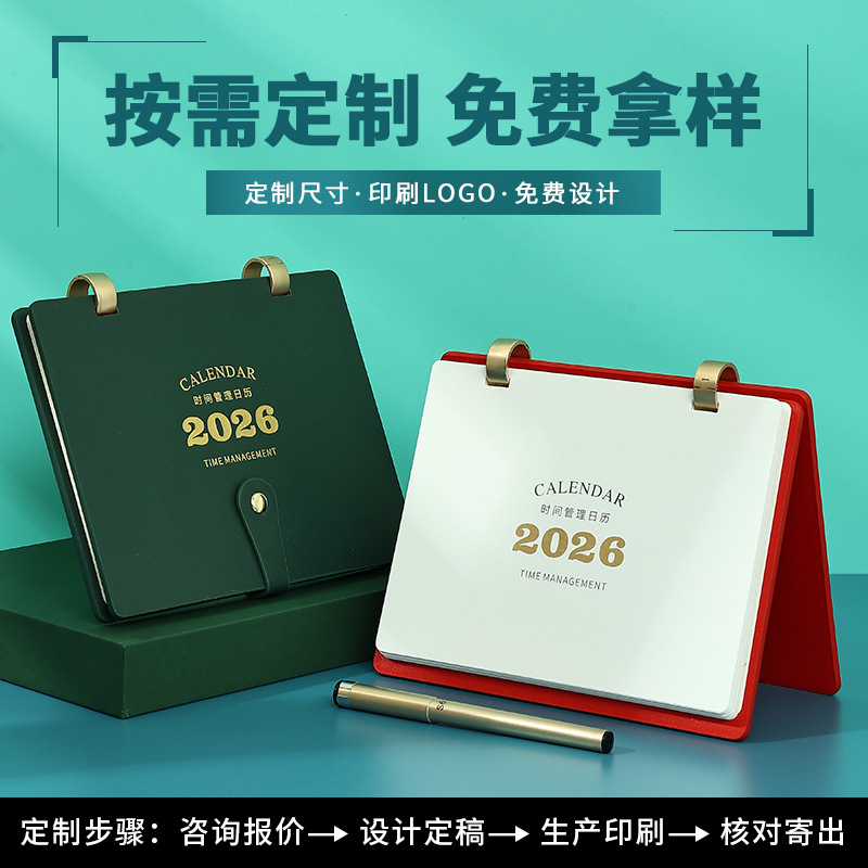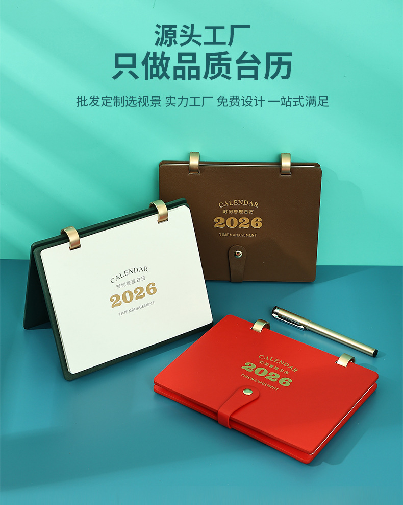 2026马年皮面台历月历制作高档商务办公桌面精品礼盒皮质带笔日历