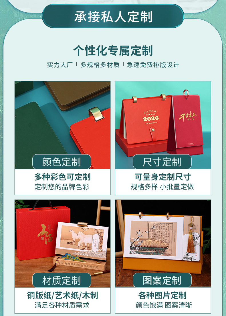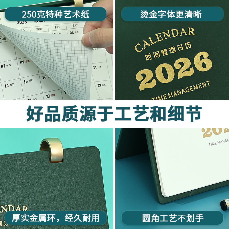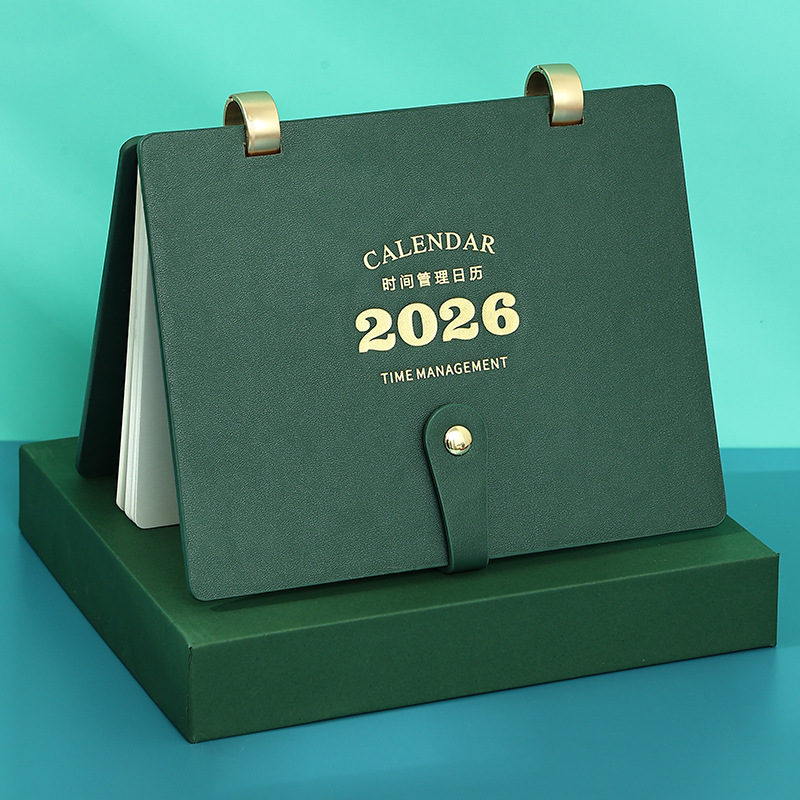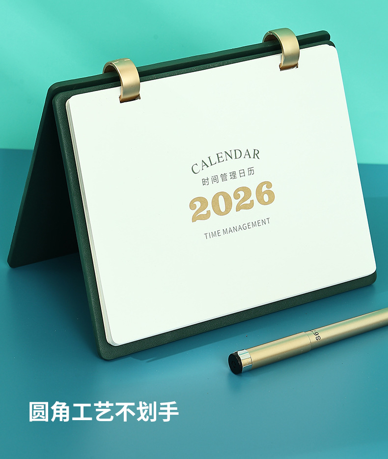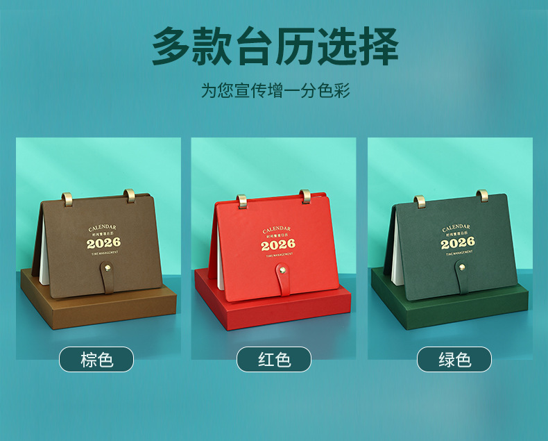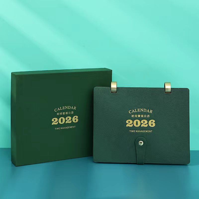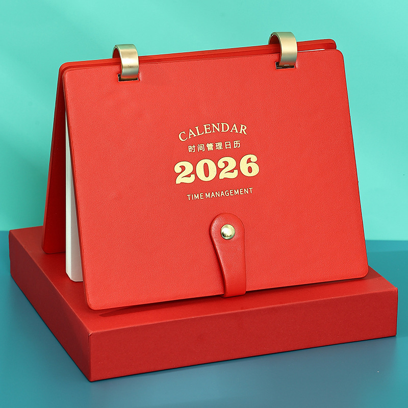 2026马年皮面台历月历制作高档商务办公桌面精品礼盒皮质带笔日历