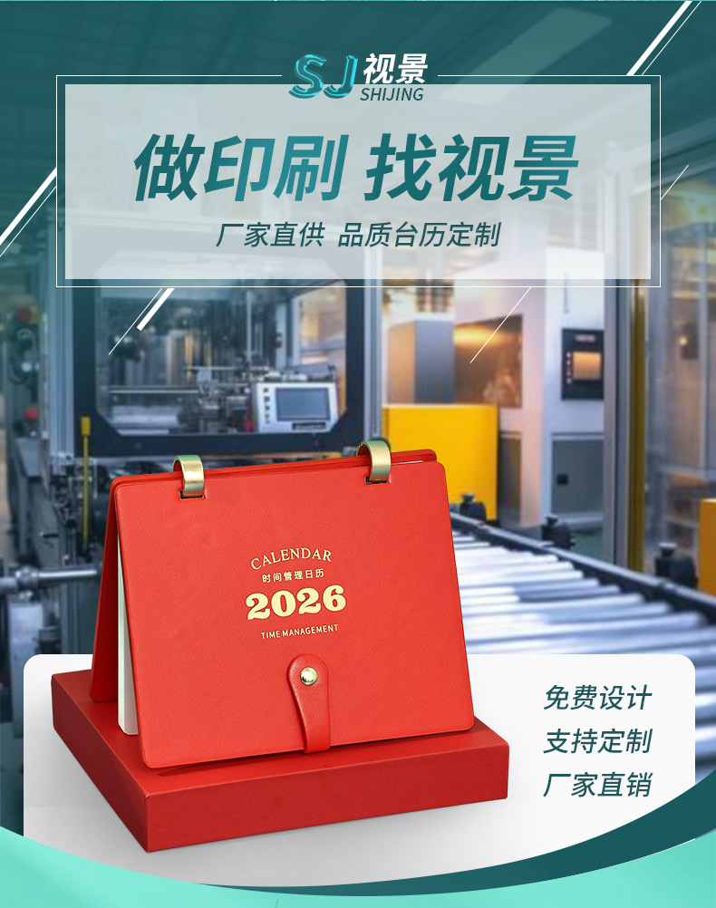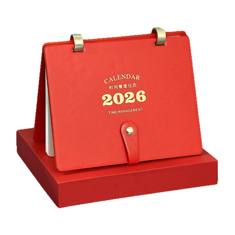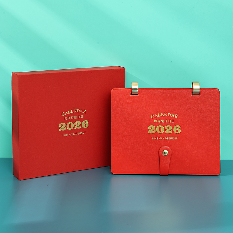 2026马年皮面日月历制作高档商务办公桌面精品礼盒皮质带笔台历