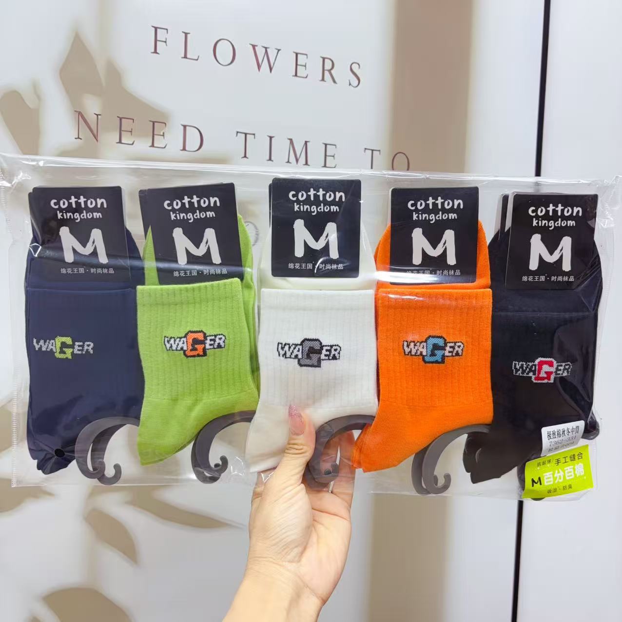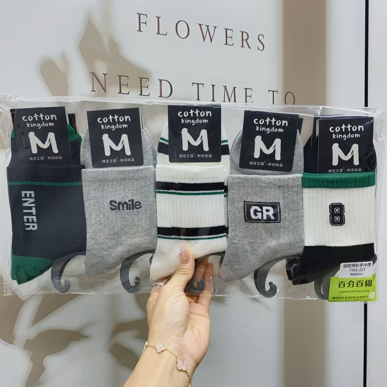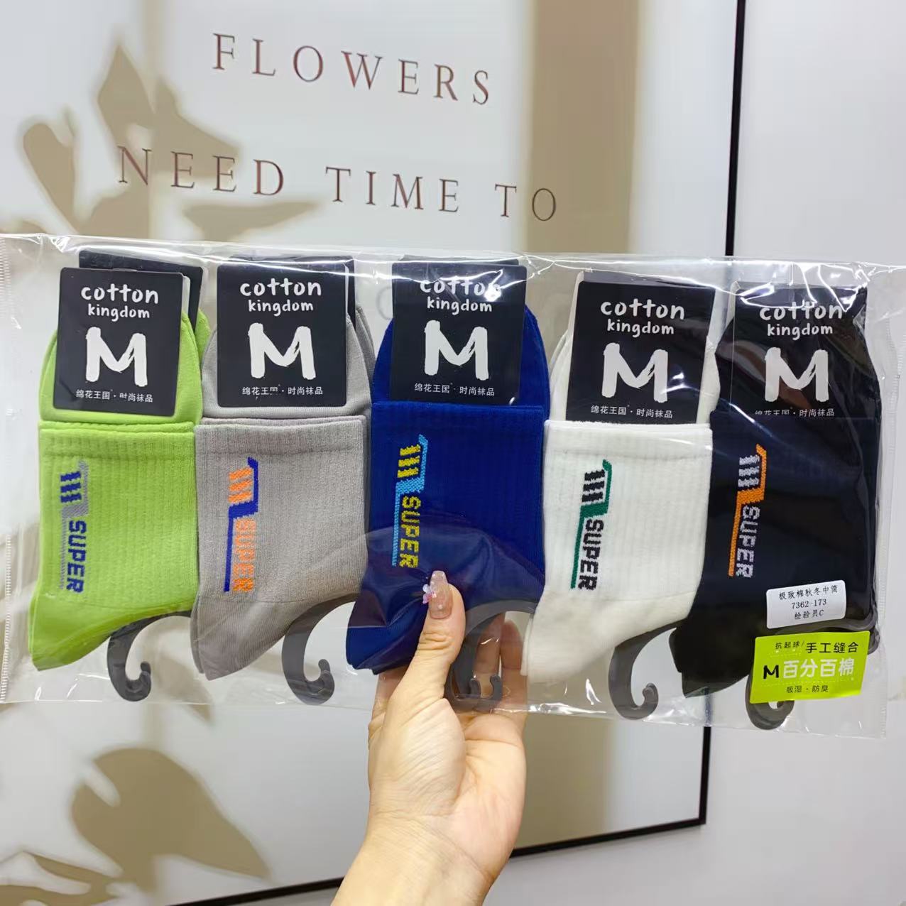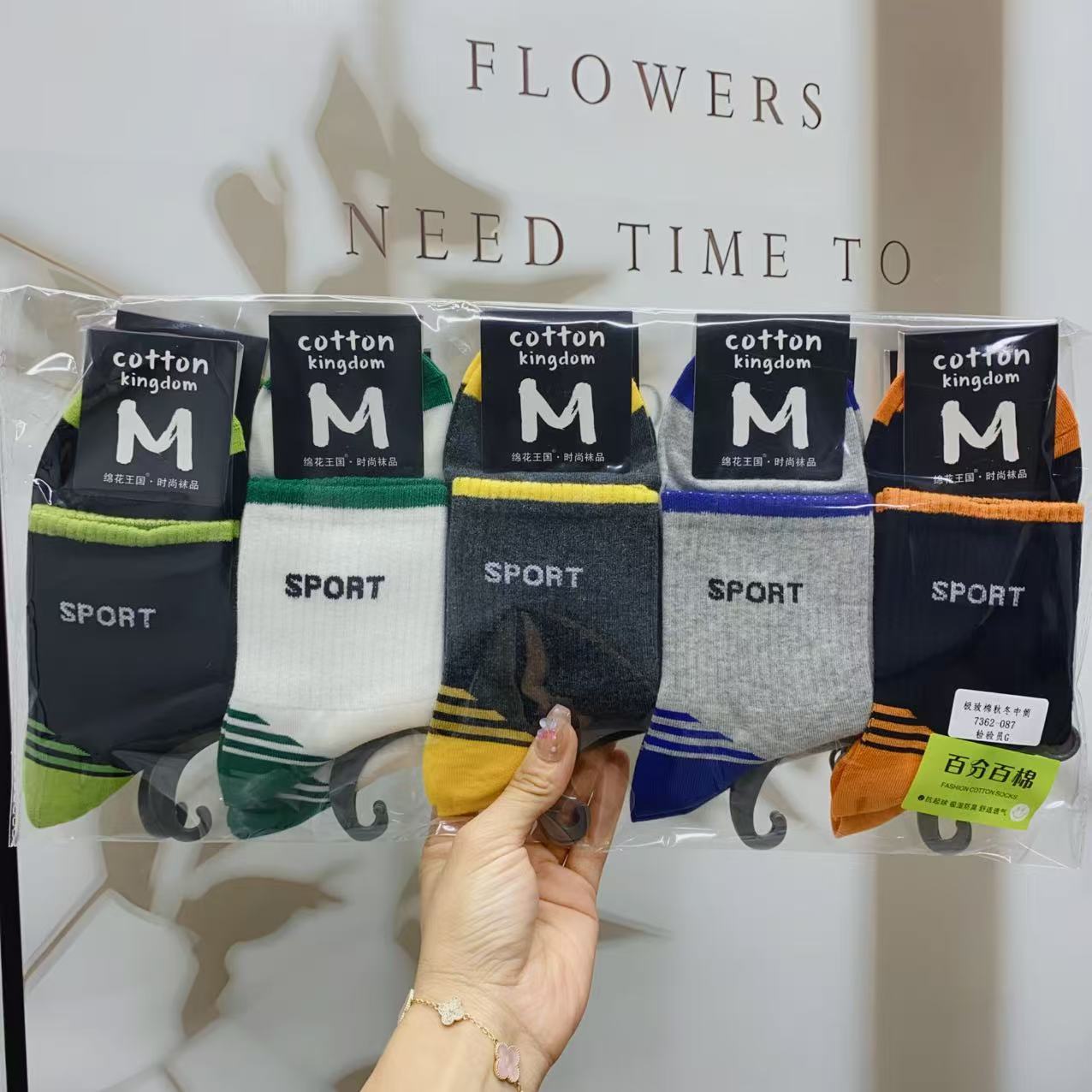 绵花王国新款秋冬款男袜学生运动吸汗舒适中筒袜百搭运动纯棉袜子