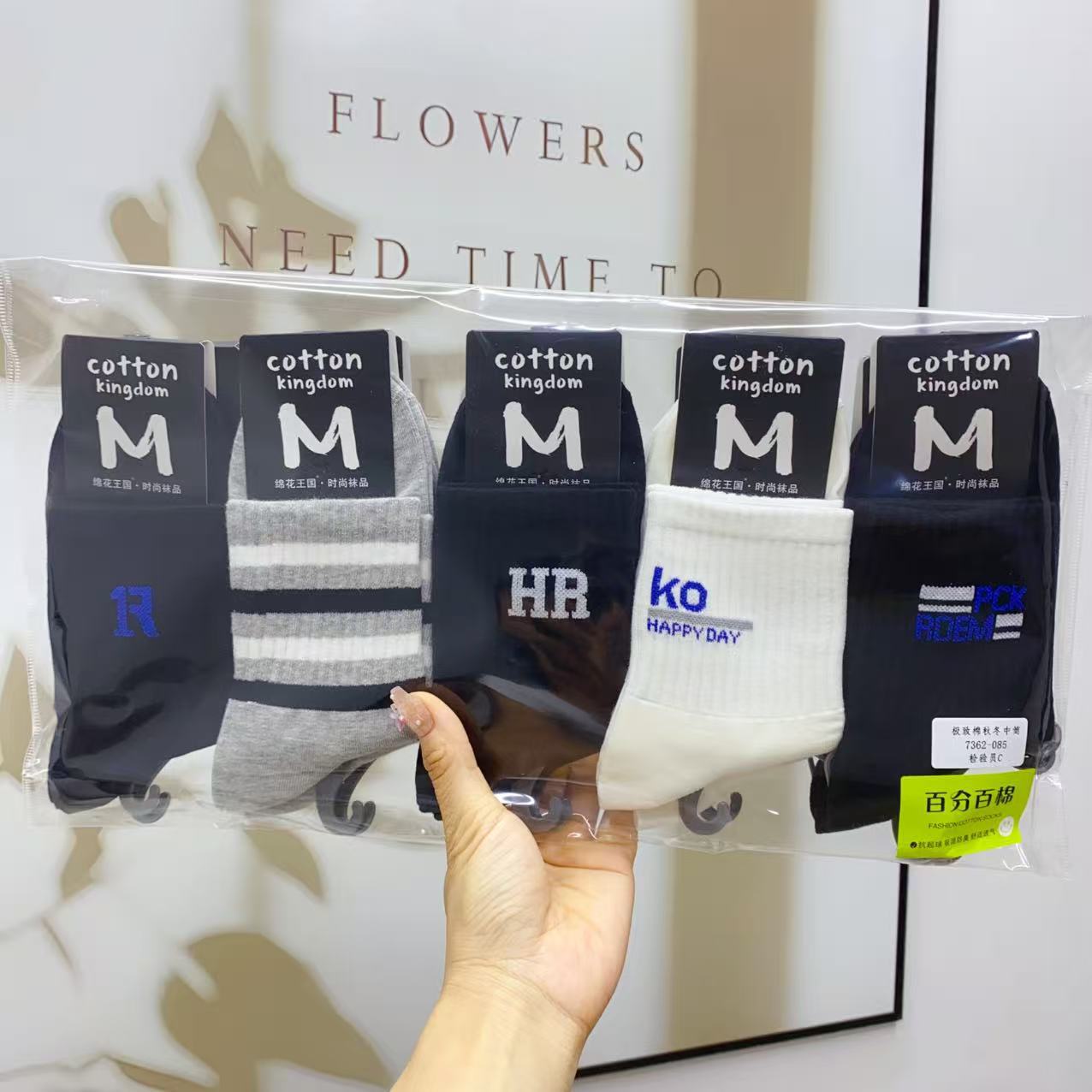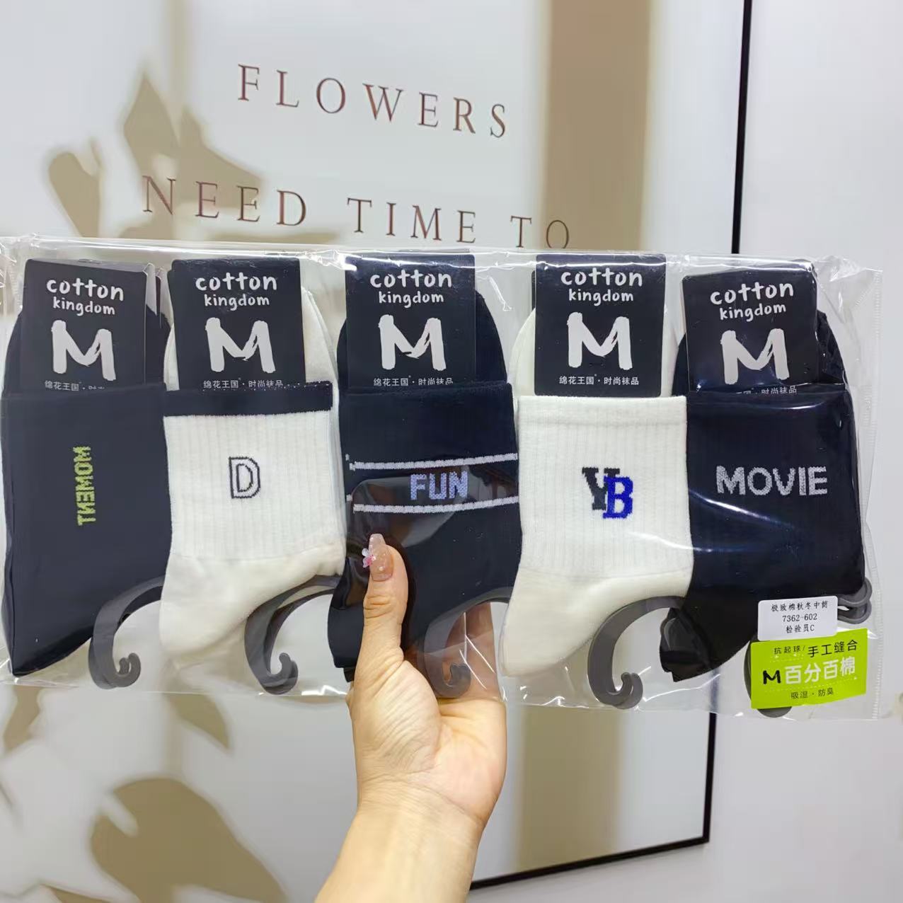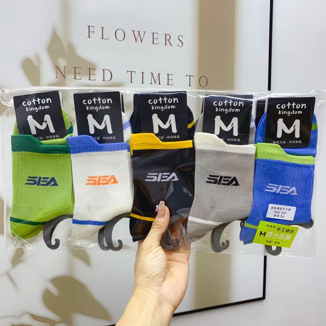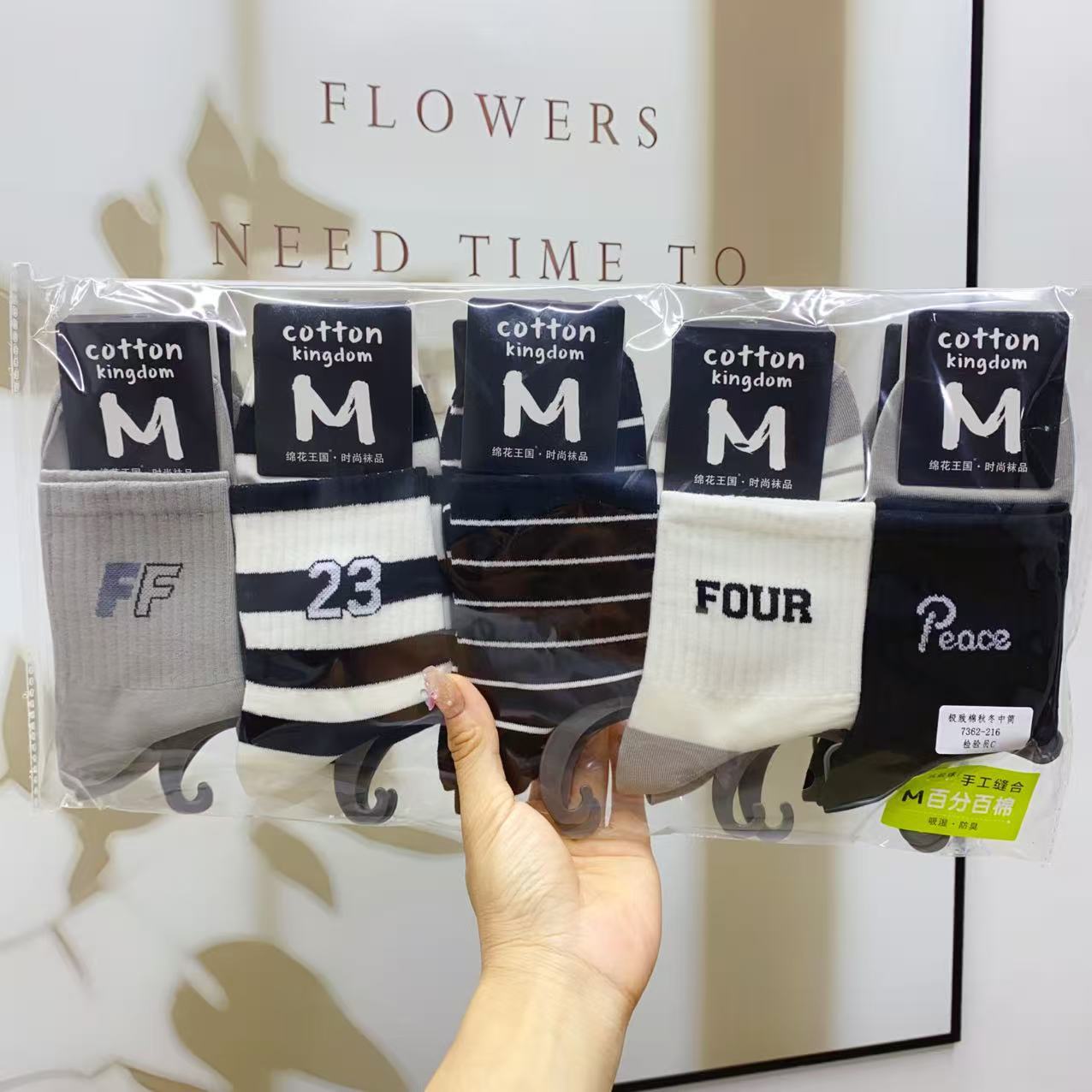 绵花王国新款秋冬款男袜学生运动吸汗舒适中筒袜百搭运动纯棉袜子