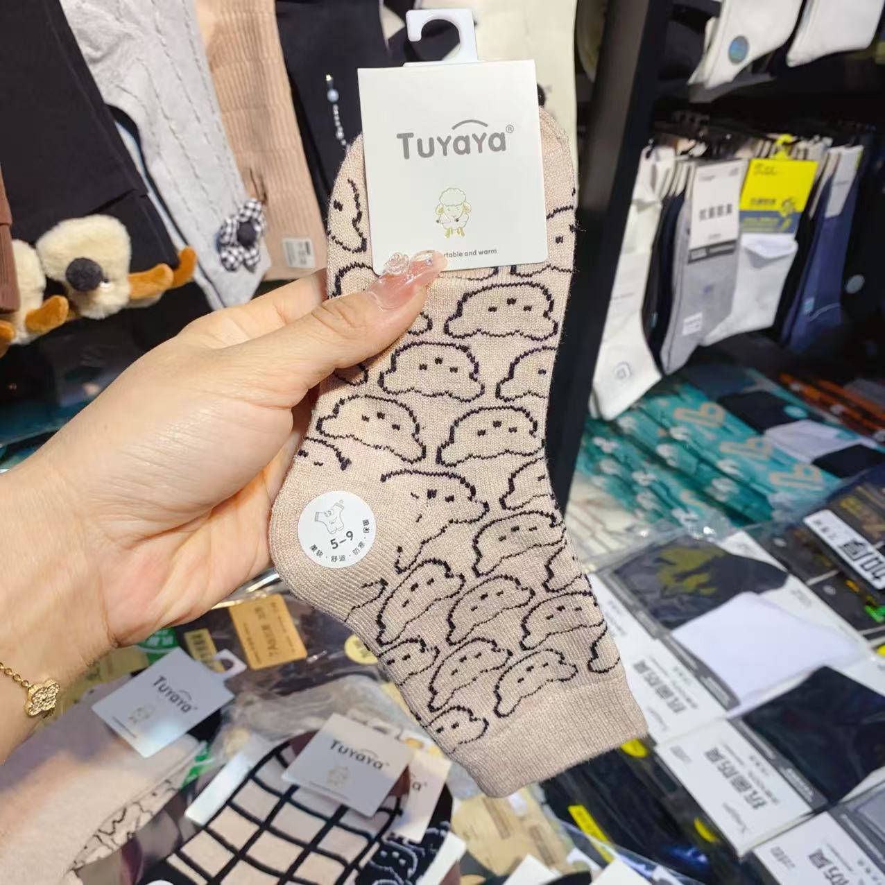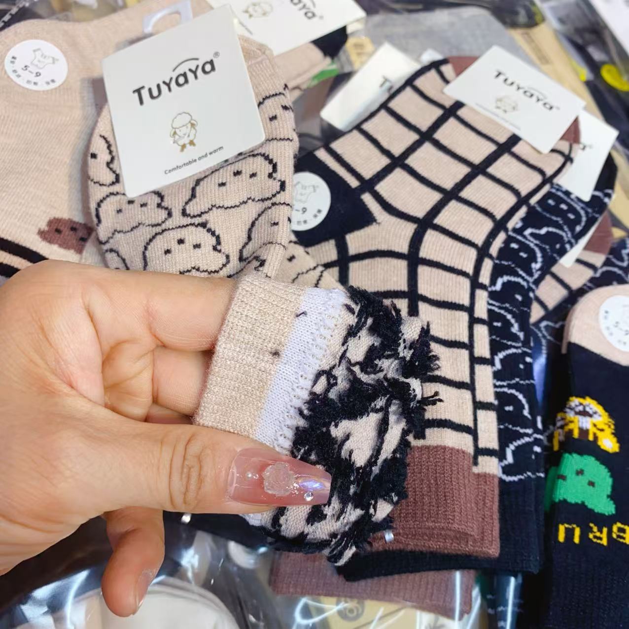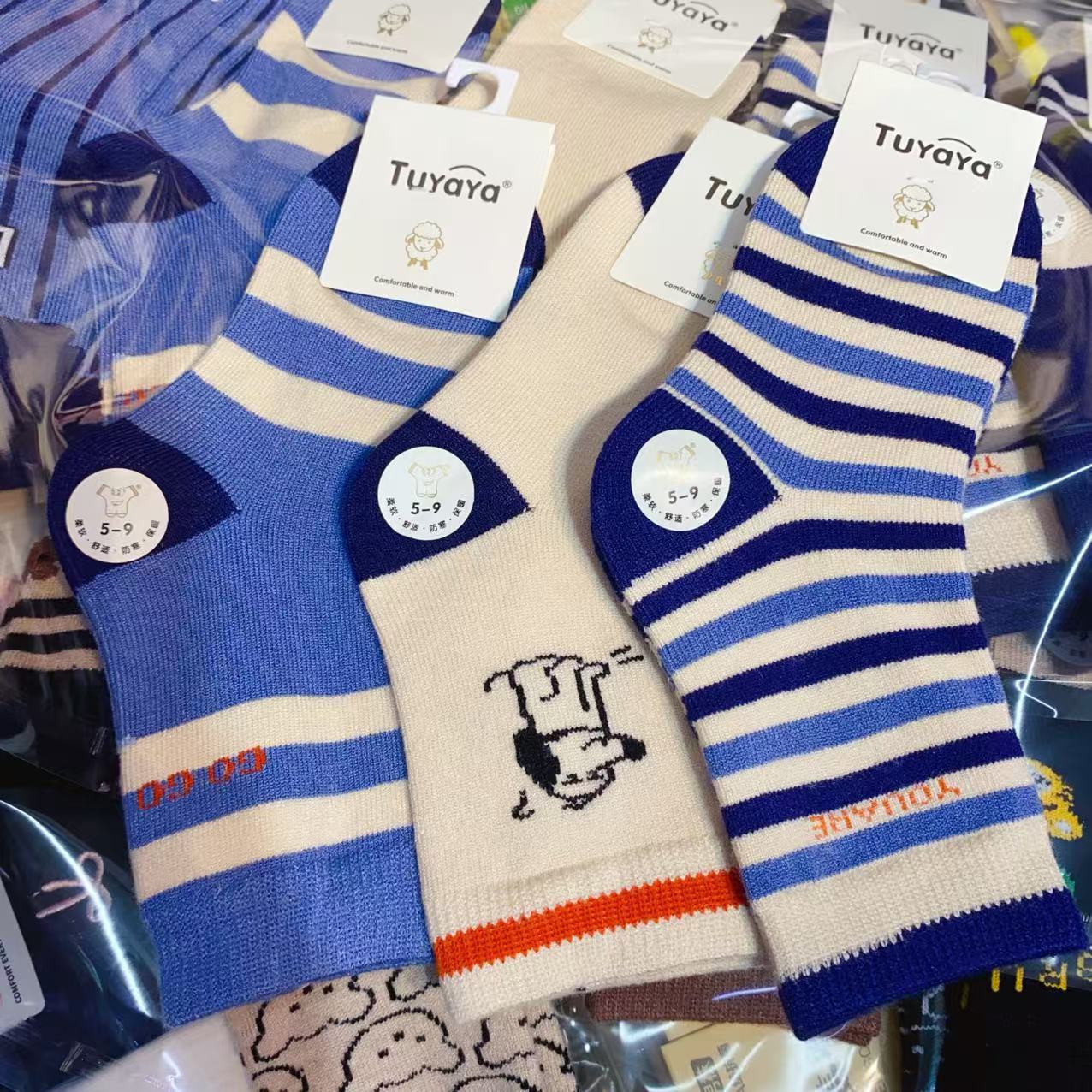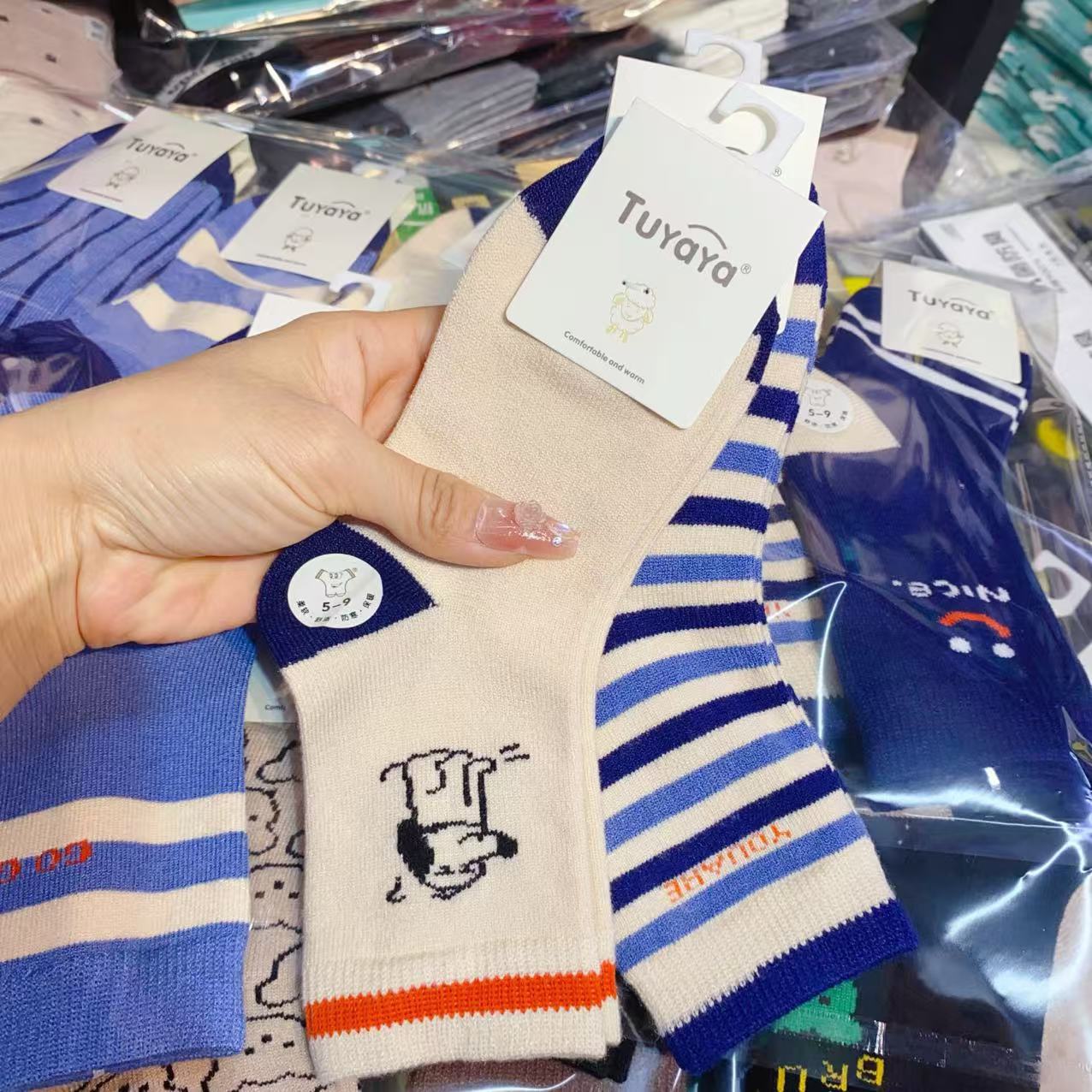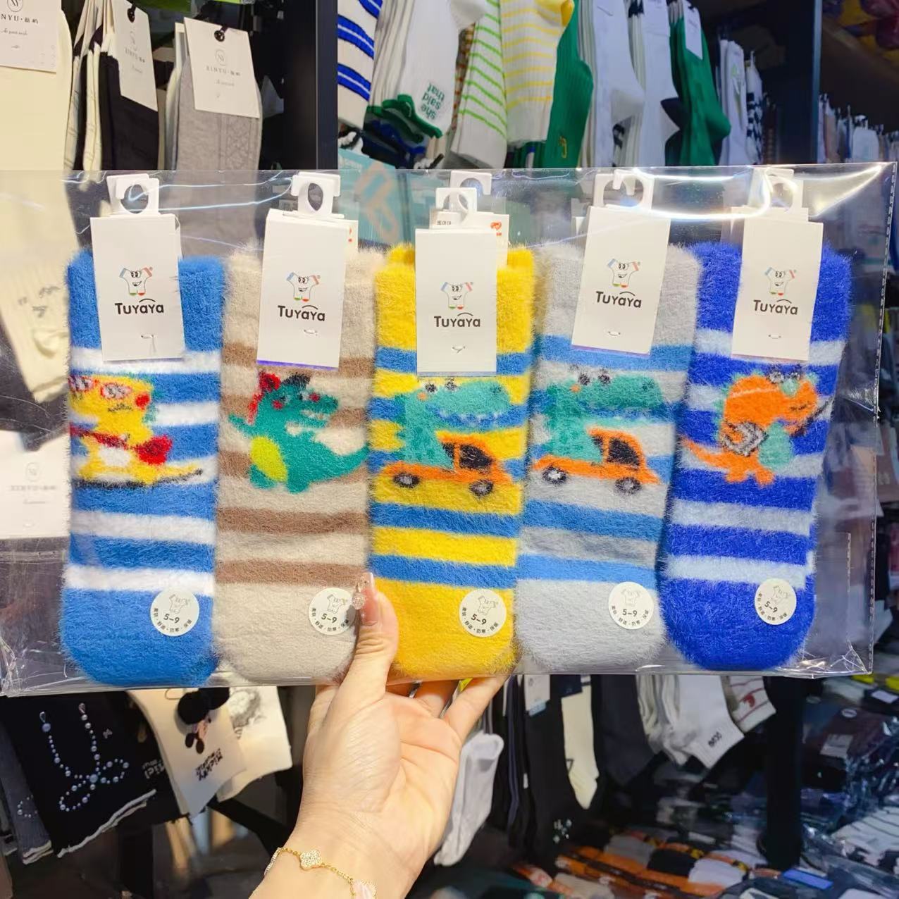 新款儿童袜子秋冬季加绒加厚小熊男孩羊绒袜舒适保暖儿童条纹棉袜