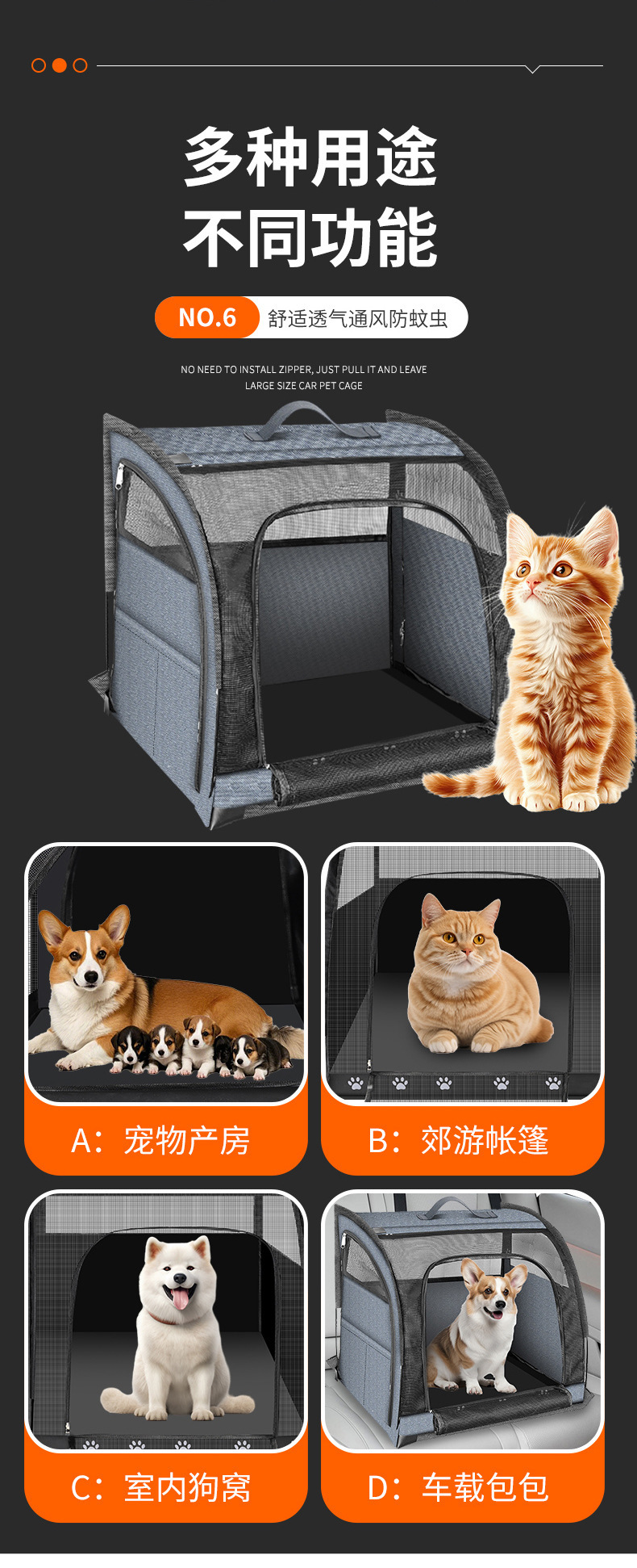 宠物坐垫猫咪狗狗车载窝狗狗车垫旅行汽车外出透气宠物笼车载包