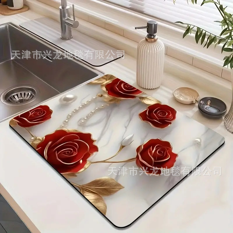 跨境TEMU硅藻泥沥水垫厨房台面吸水速干防滑沥水垫餐桌隔热垫代发