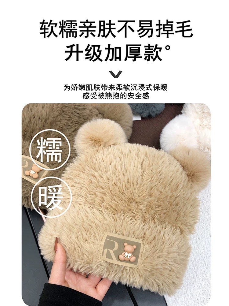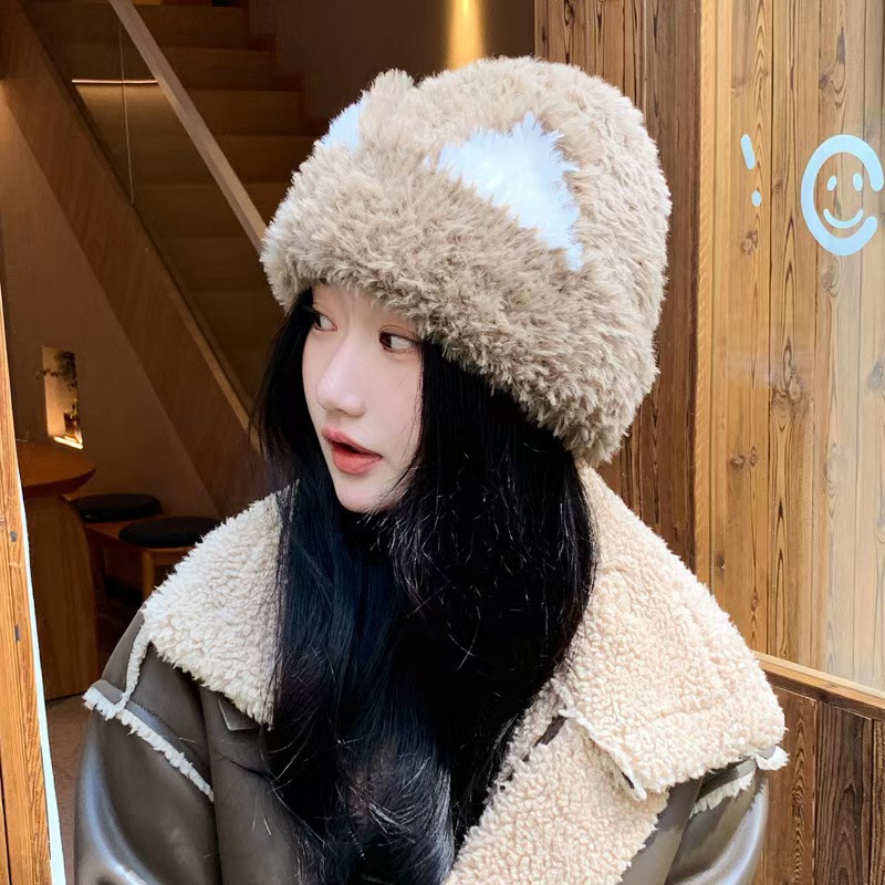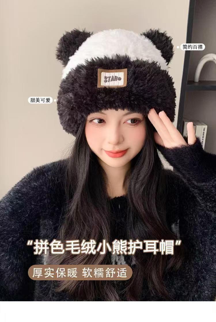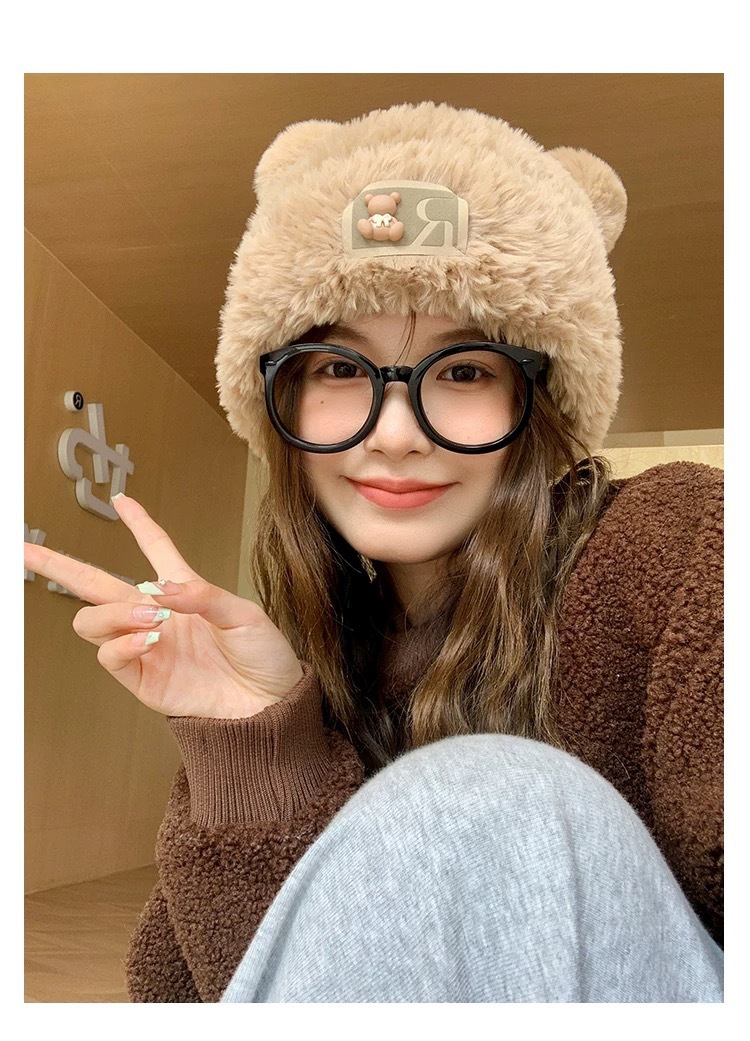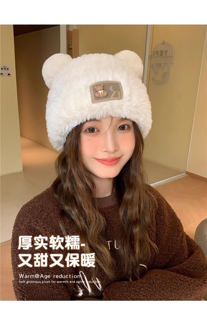 冬季毛绒针织帽女可爱小熊耳朵套头月子帽韩版百搭护耳甜美雷锋帽