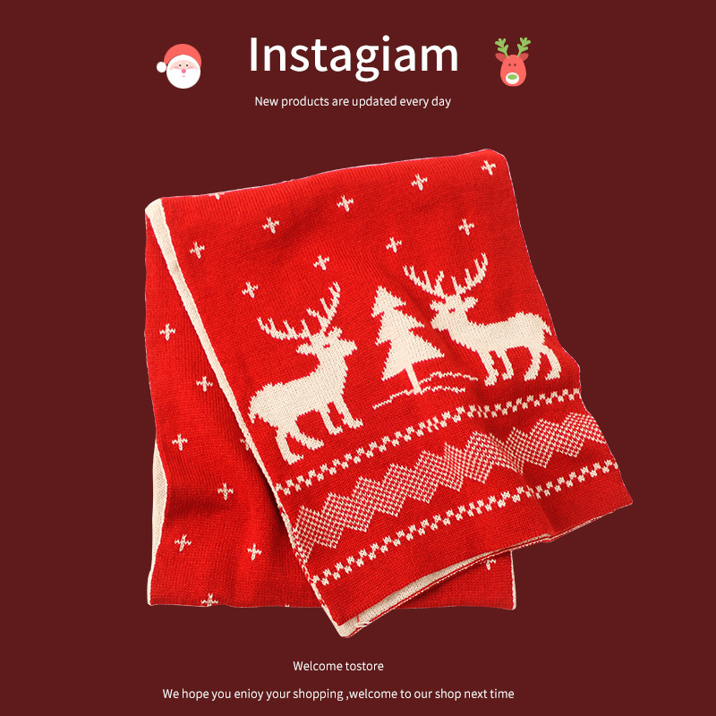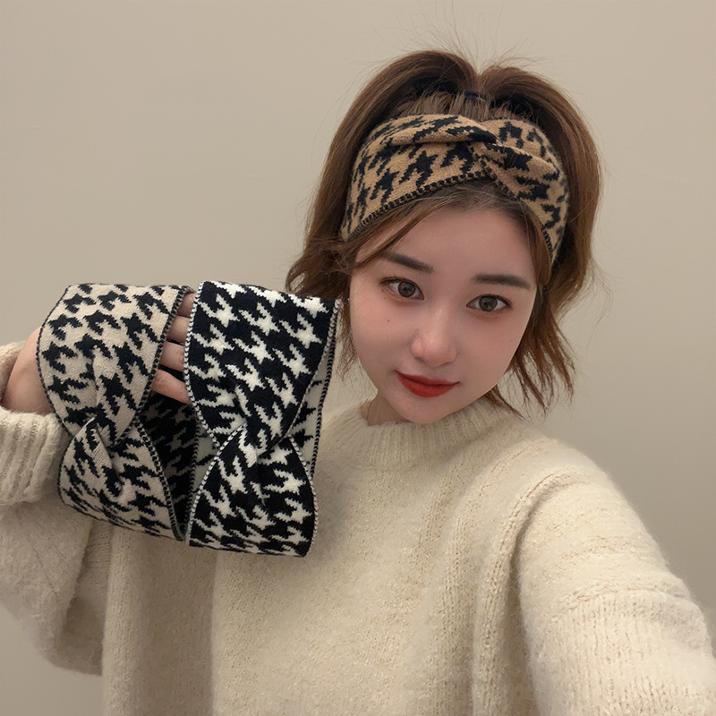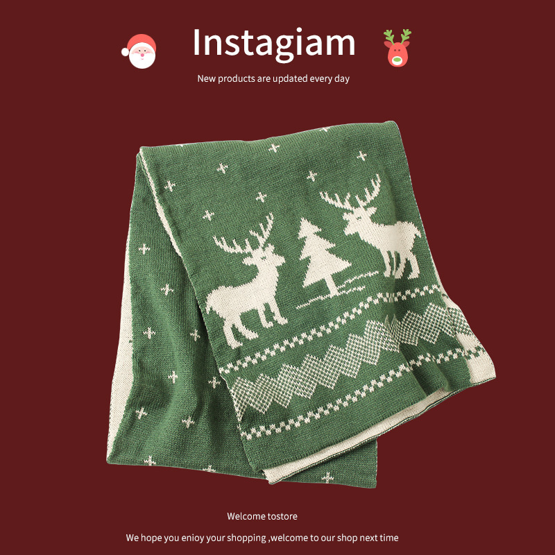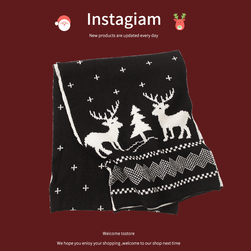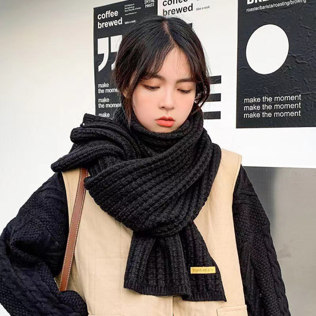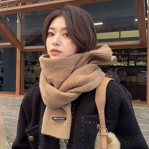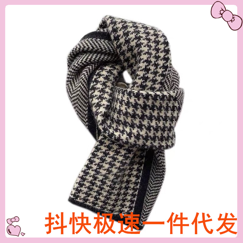 跨境千鸟格针织围巾女冬天保暖防风围脖韩版潮时尚字母学生百搭