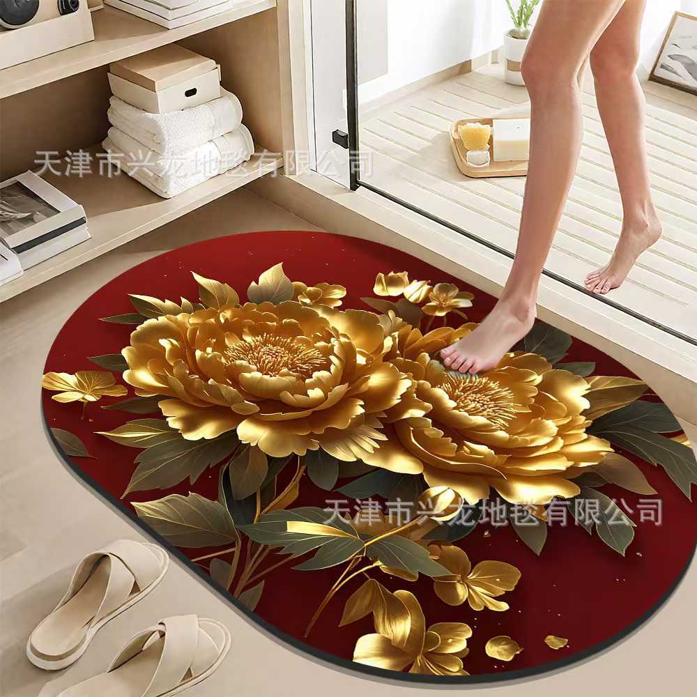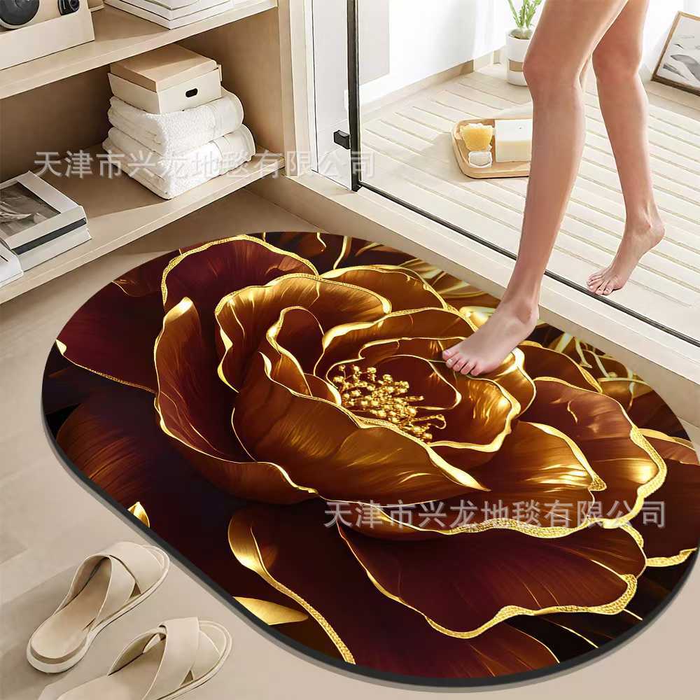 跨境3D浮雕硅藻泥地垫浴室洗手间吸水防滑速干脚垫玄关装饰地垫