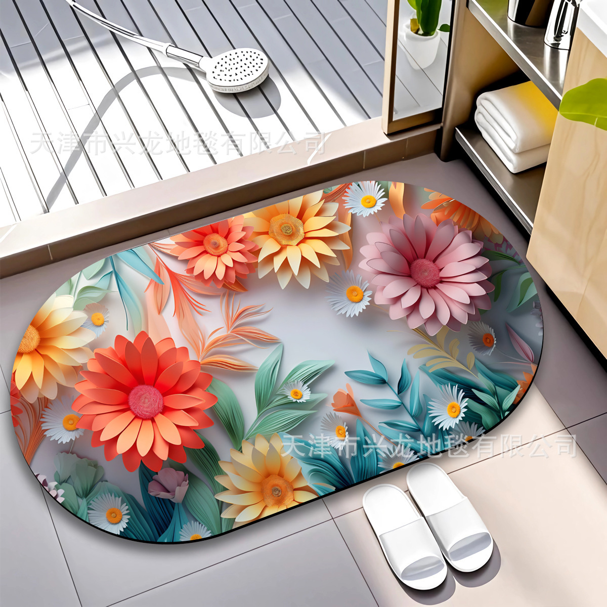 跨境立体花卉硅藻泥地垫浴室吸水防滑速干脚垫洗手间地垫玄关垫