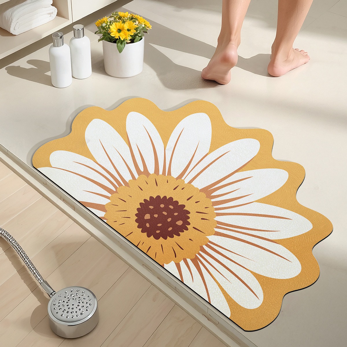 异形花卉硅藻泥浴室地垫卫生间门口吸水速干地垫防滑易打理脚垫
