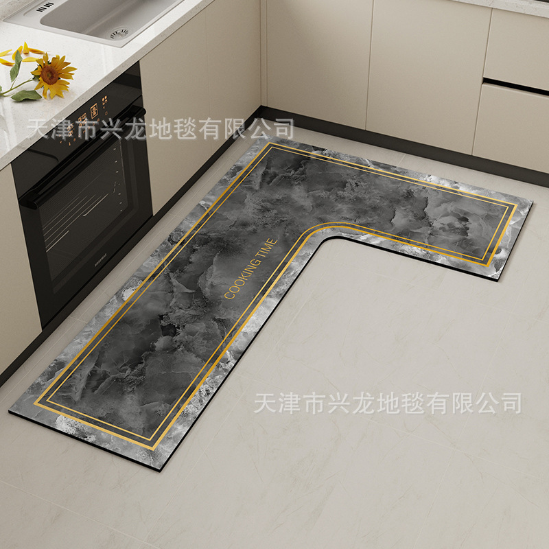 跨境大理石纹硅藻泥L形地垫厨房浴室吸水防滑速干耐脏易清理地垫