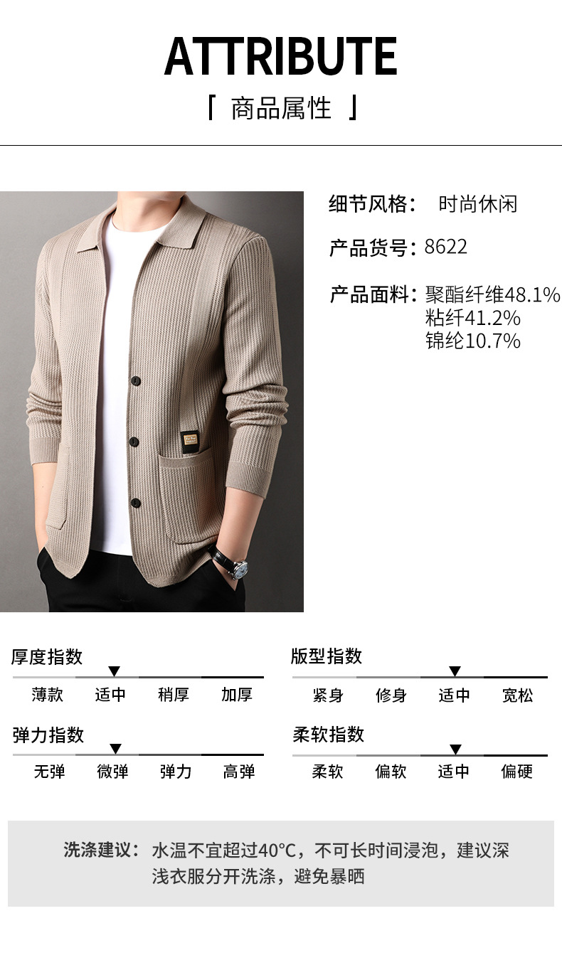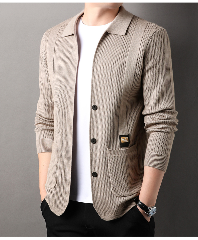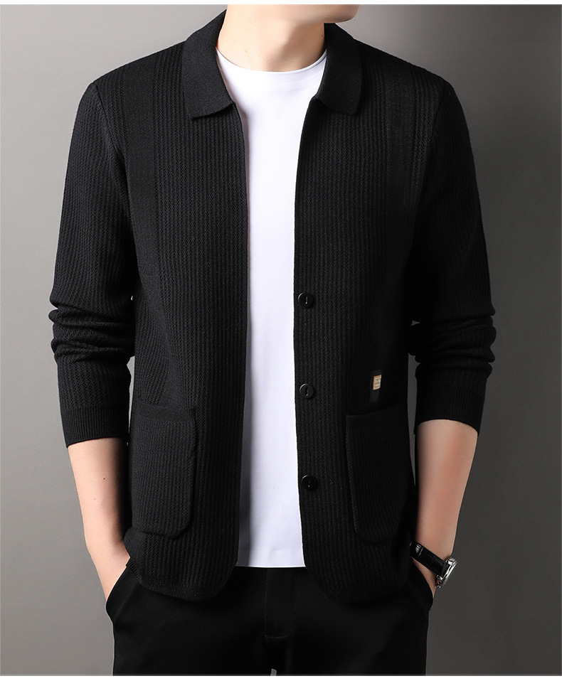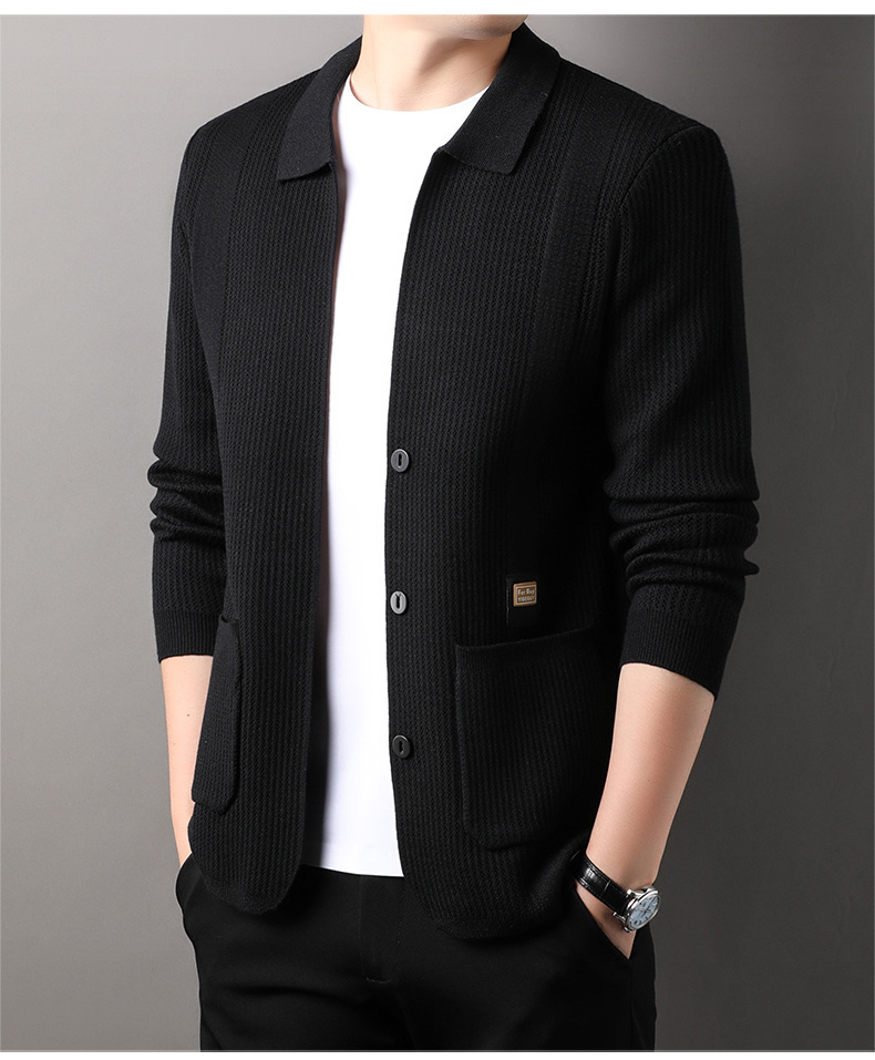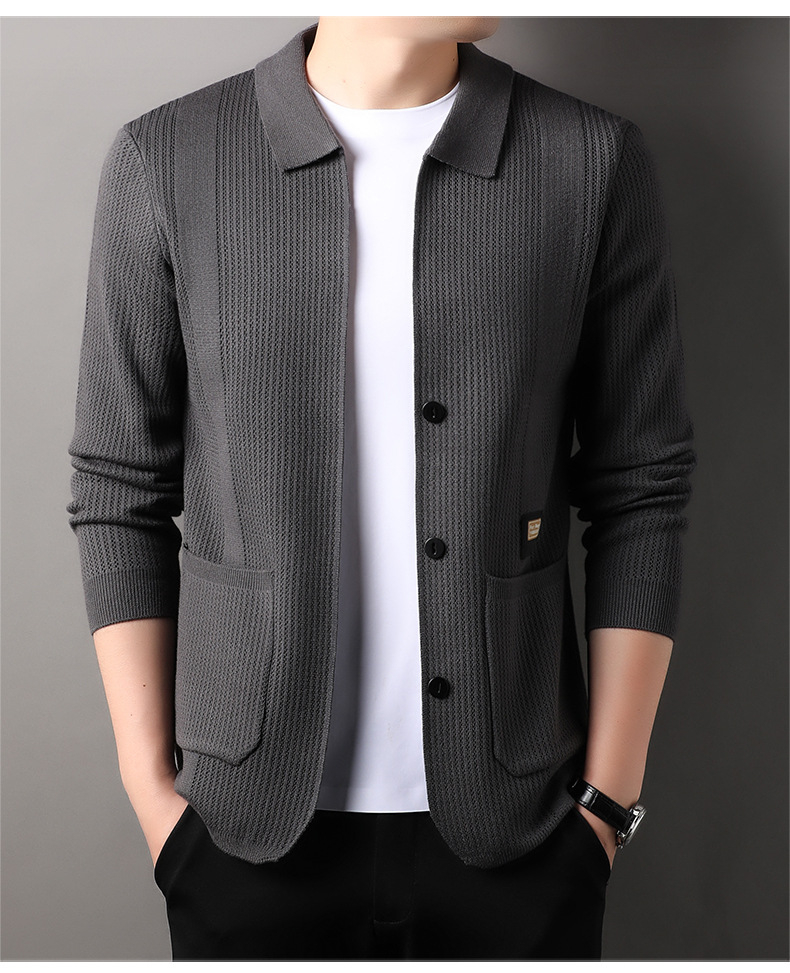 老钱风精品开衫外套男秋季新品纯色轻奢高品质翻领外套针织开衫男