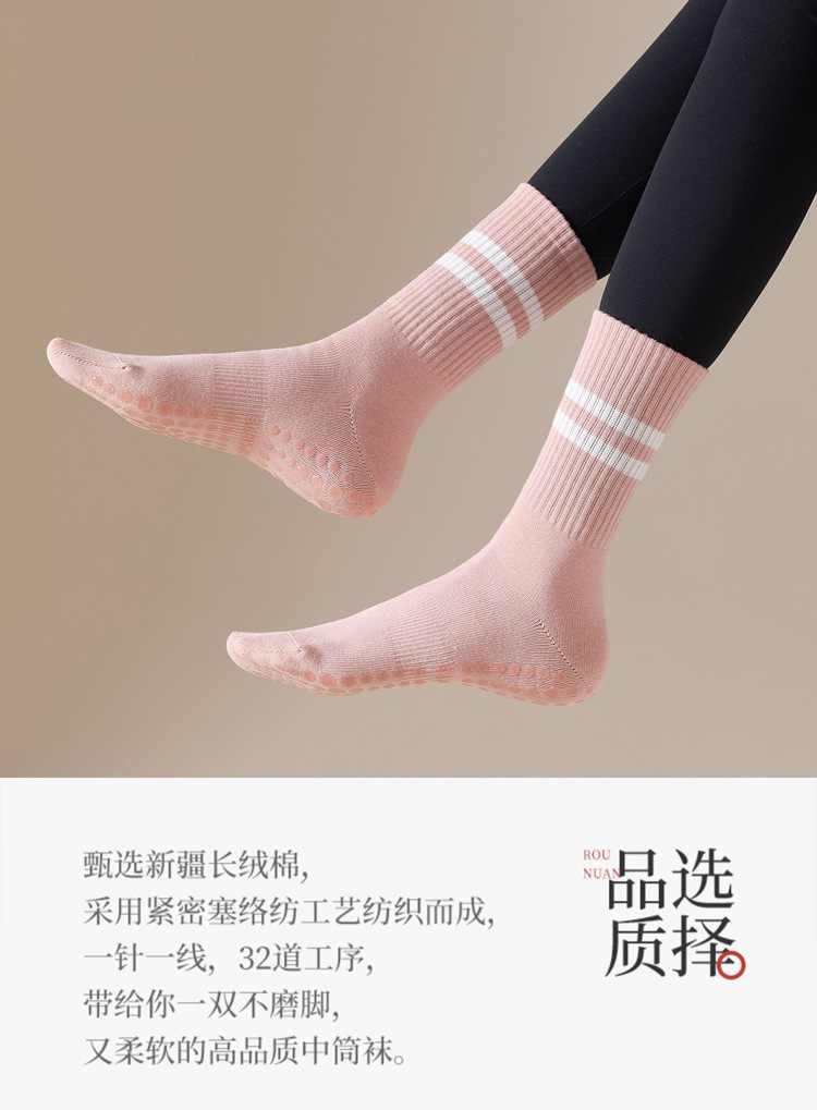 瑜伽袜子女中筒专业防滑袜室内健身跳绳舞蹈普拉提成人运动地板袜