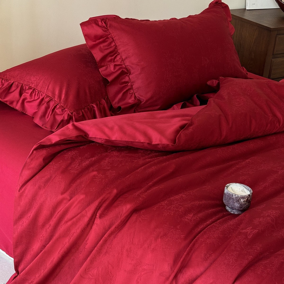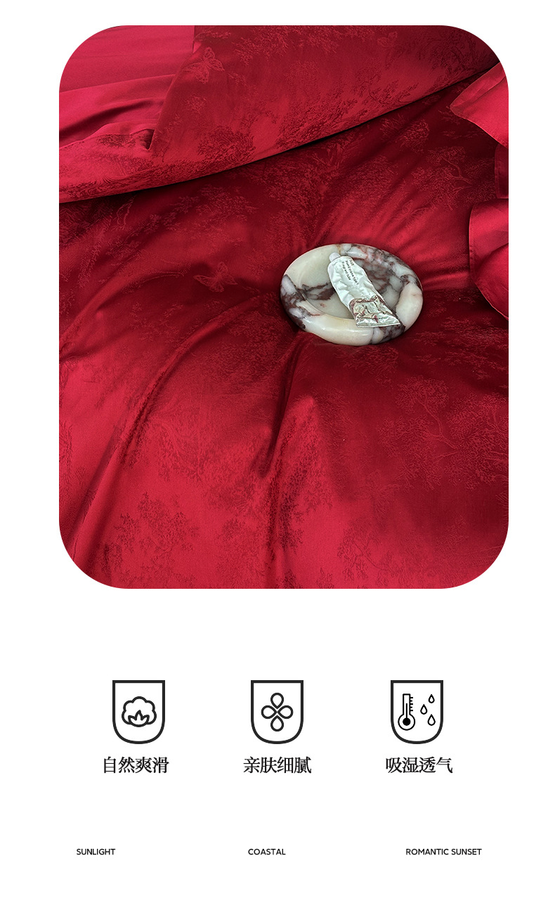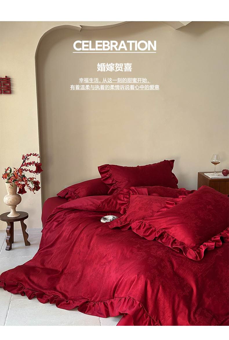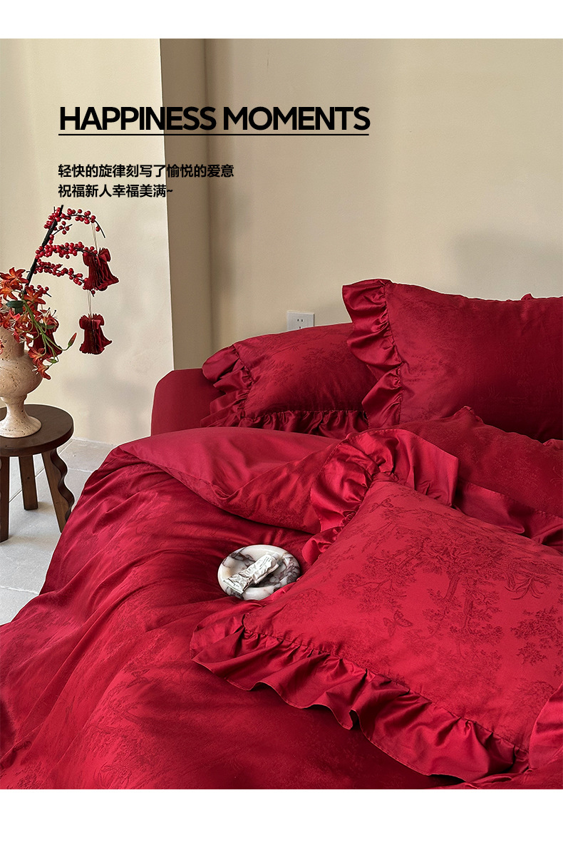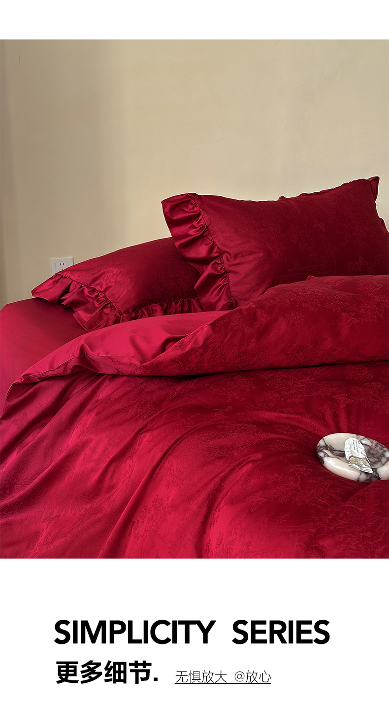 新婚庆结婚床上四件套100支长绒棉全棉提花四件套大红色婚嫁