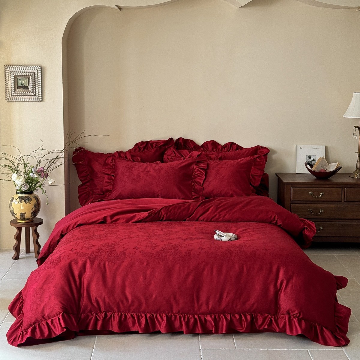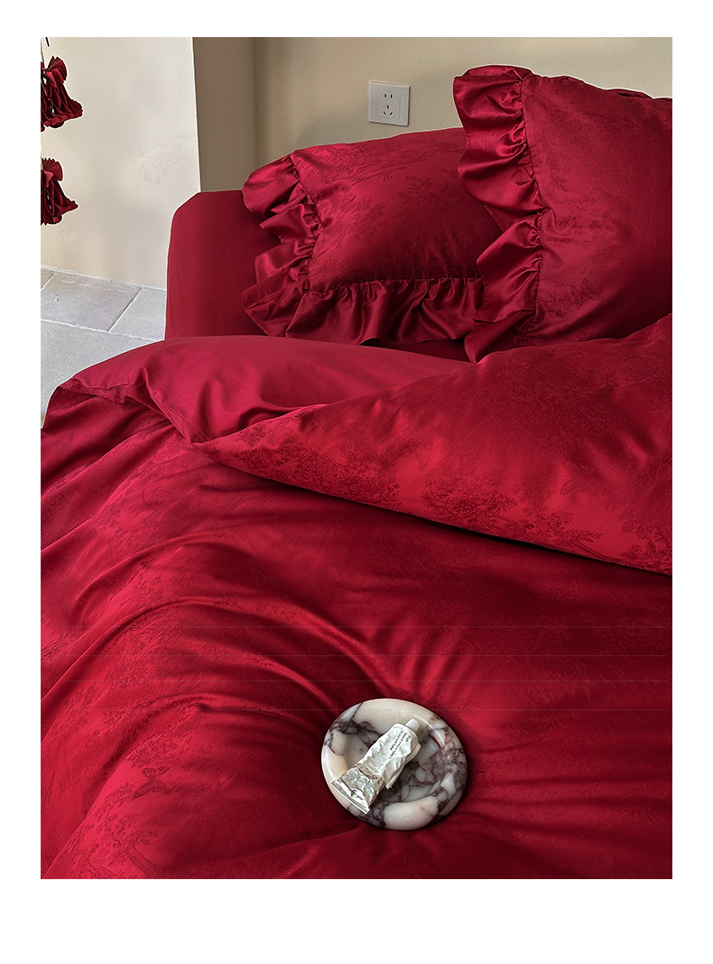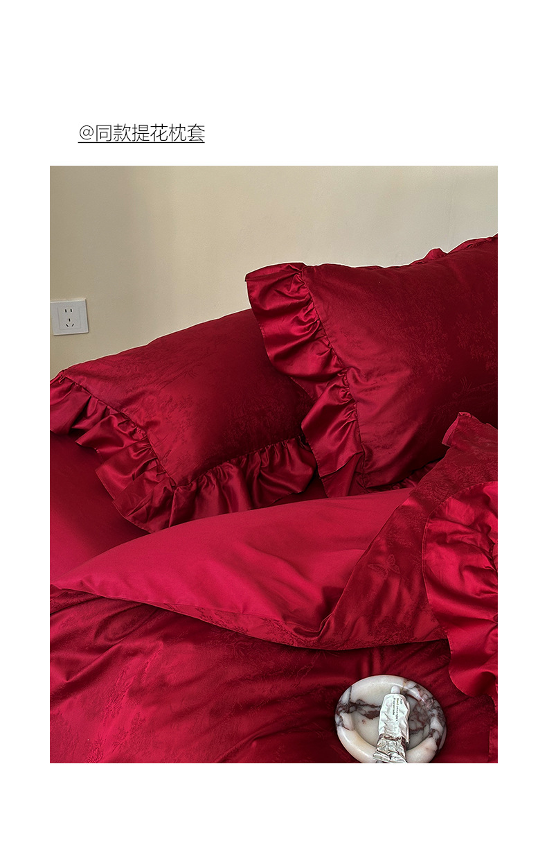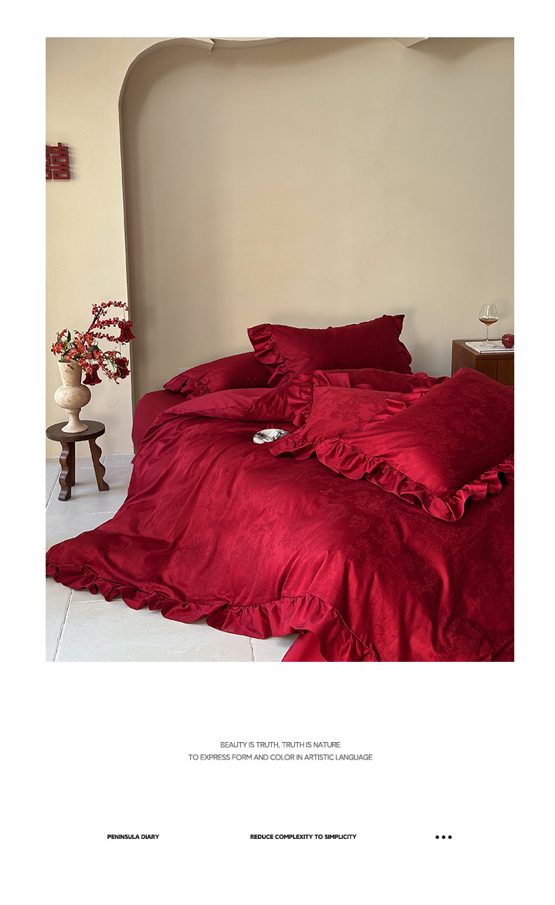 新婚庆结婚床上四件套100支长绒棉全棉提花四件套大红色婚嫁