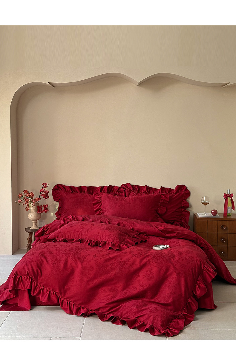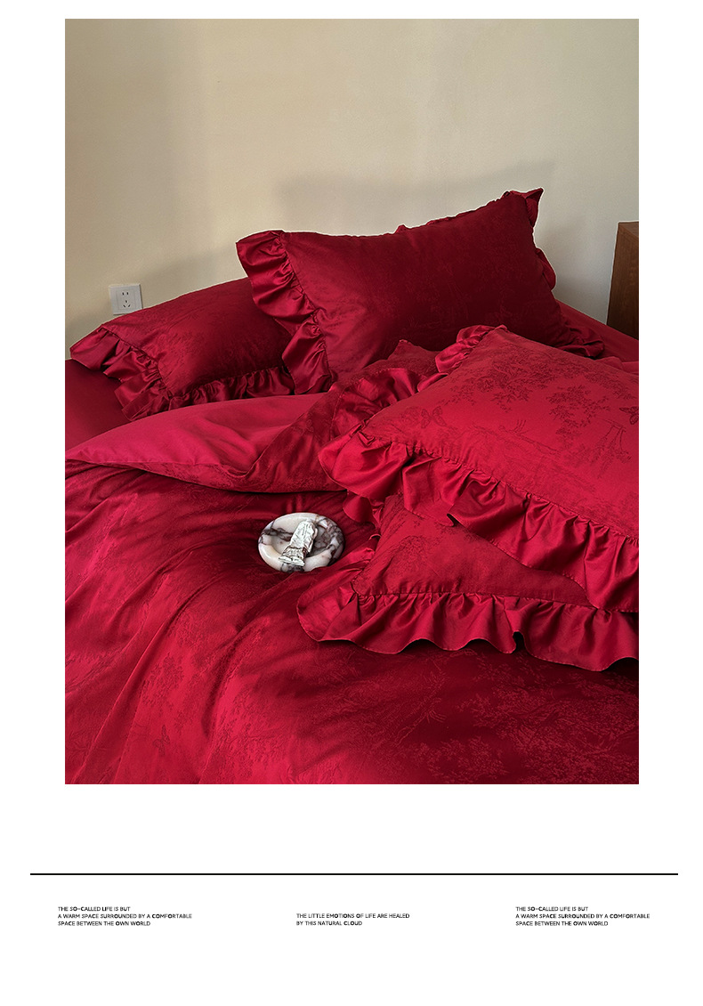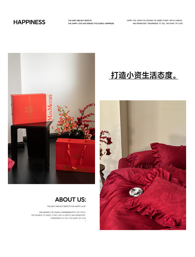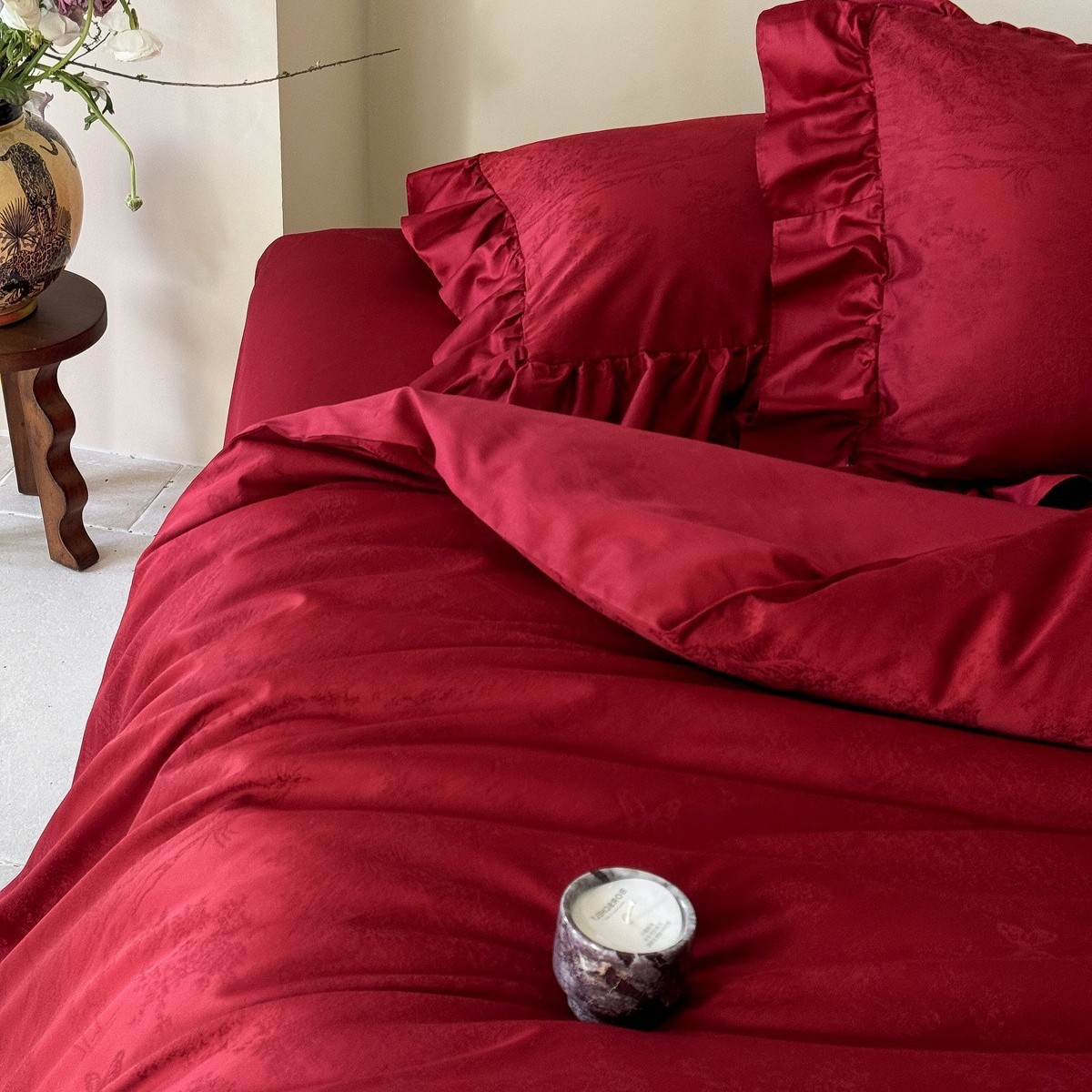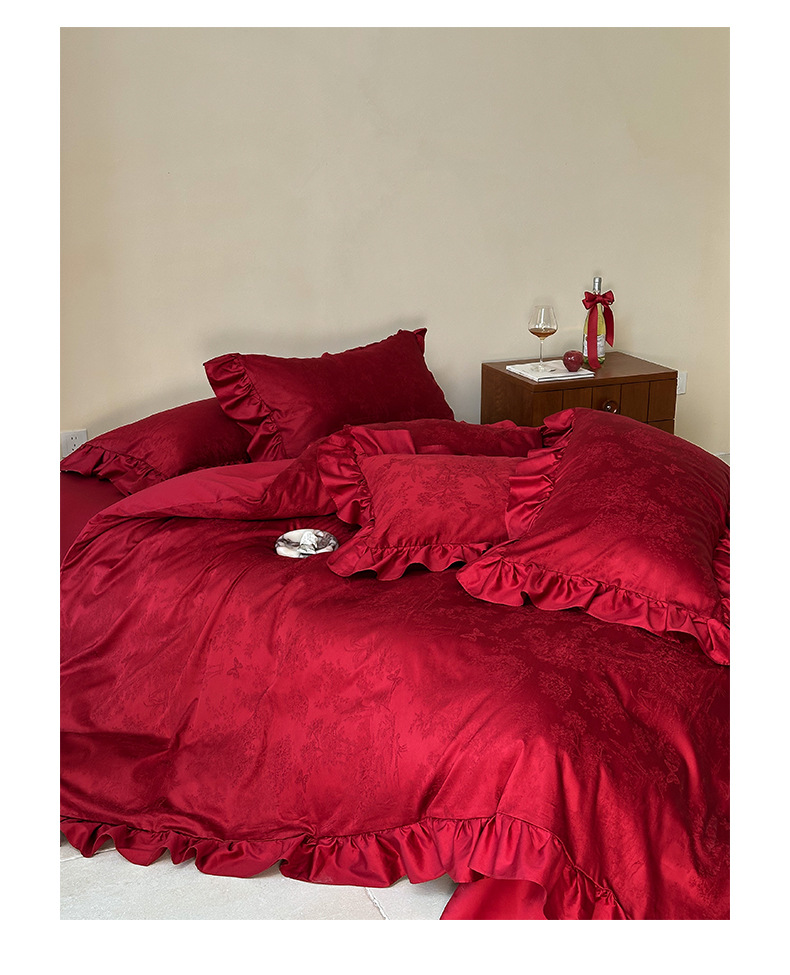 新婚庆结婚床上四件套100支长绒棉全棉提花四件套大红色婚嫁