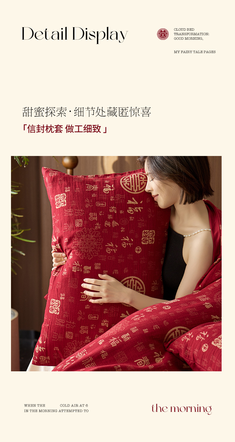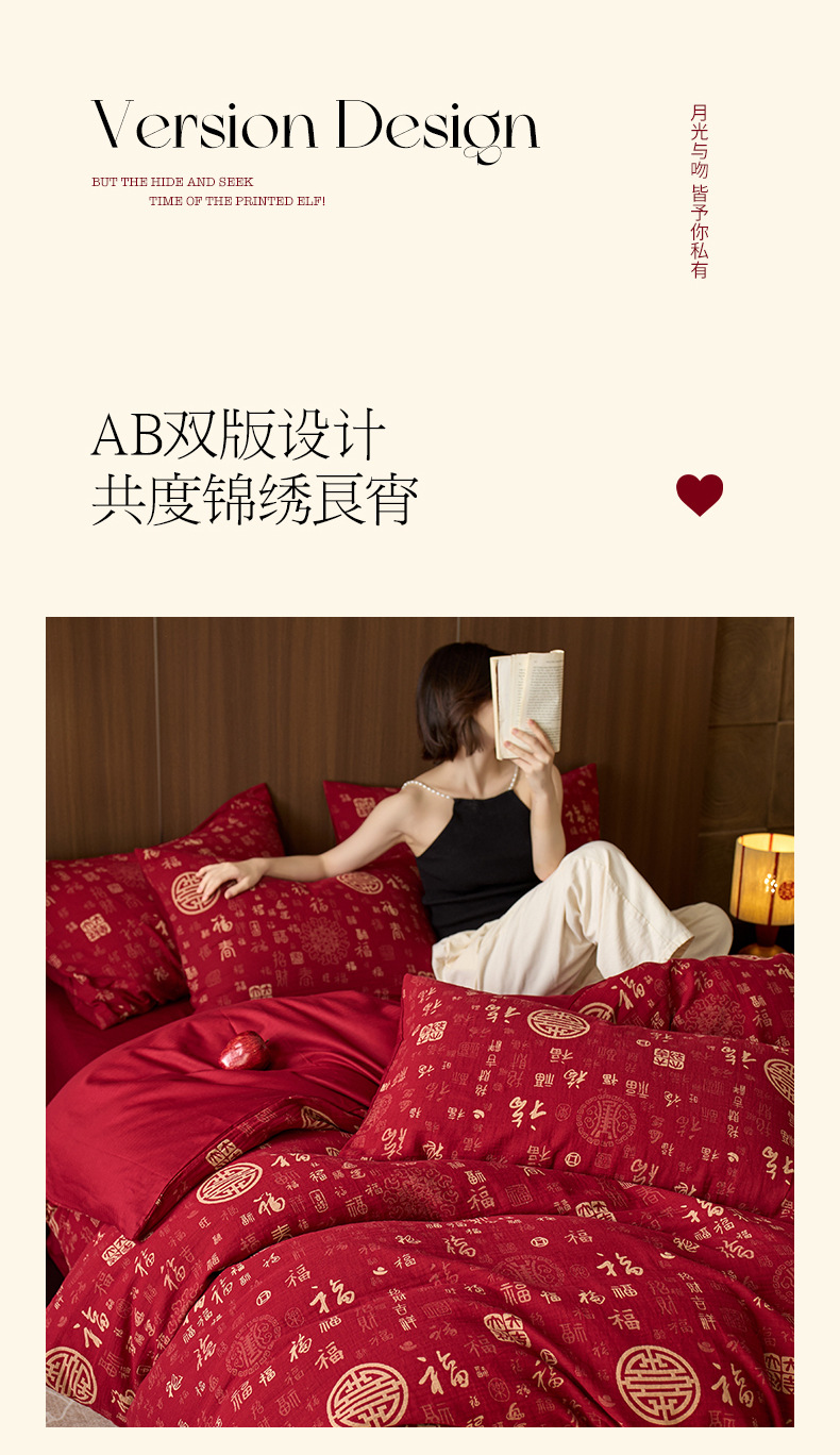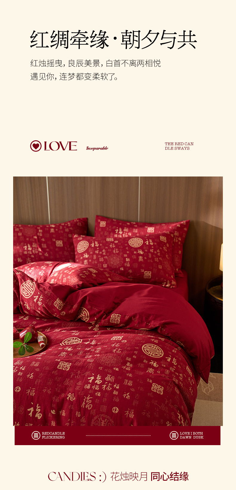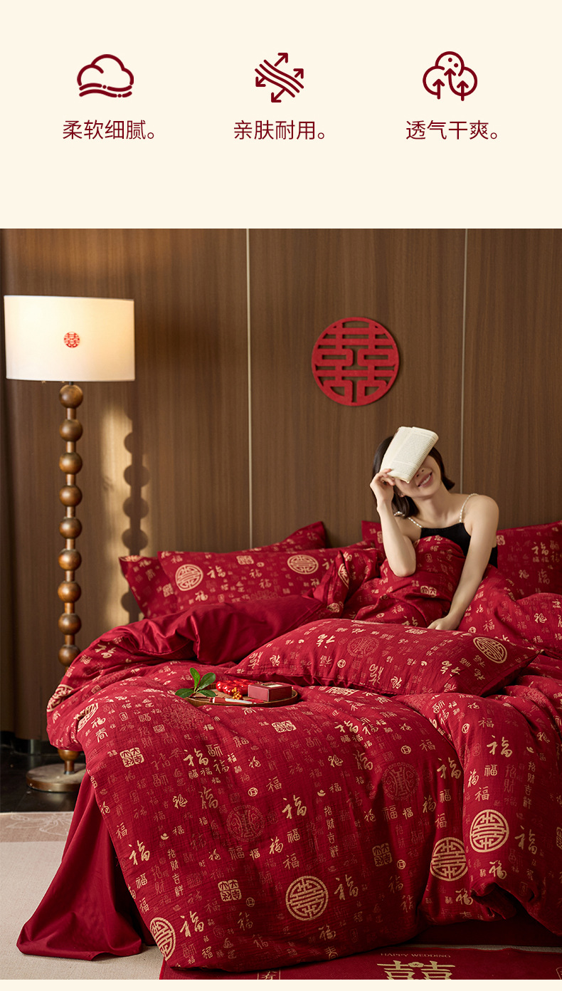 中式提花婚庆纯棉全棉床上四件套大红色婚房床单被套结婚陪嫁床品