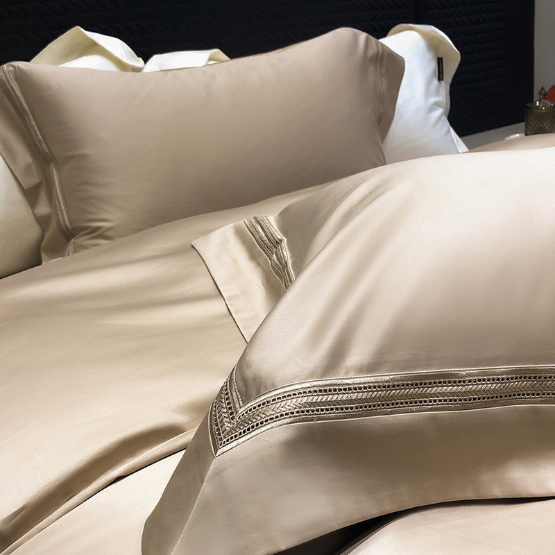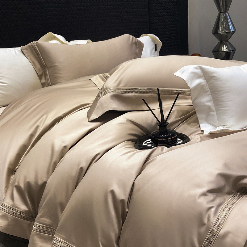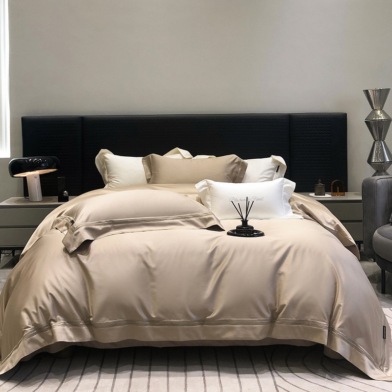 高档轻奢意式120S匹马棉四件套纯色简约婚庆结婚备婚套件裸睡床品
