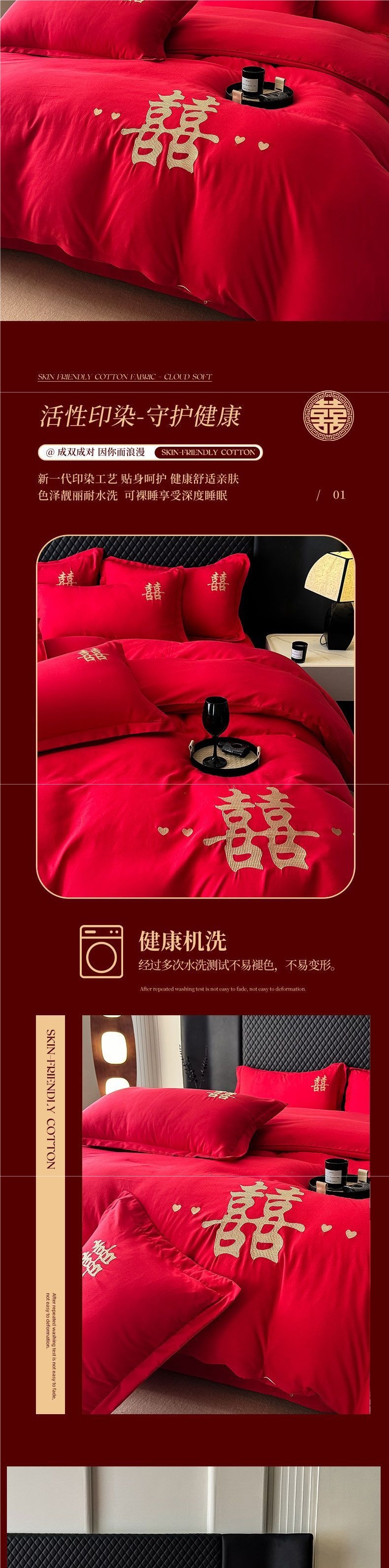 刺绣四件套婚庆大红色绣花被套结婚房双人床单高档被罩四季通用