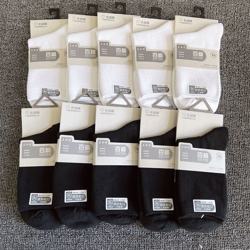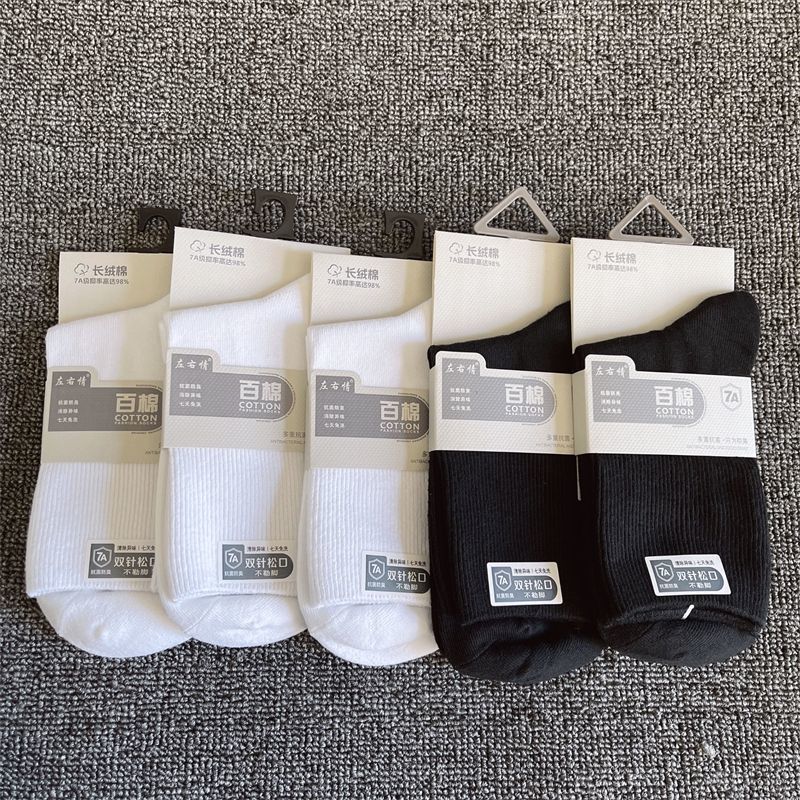 秋冬款双针松口纯棉袜子男士防臭吸汗全棉透气加厚保暖中长款男袜