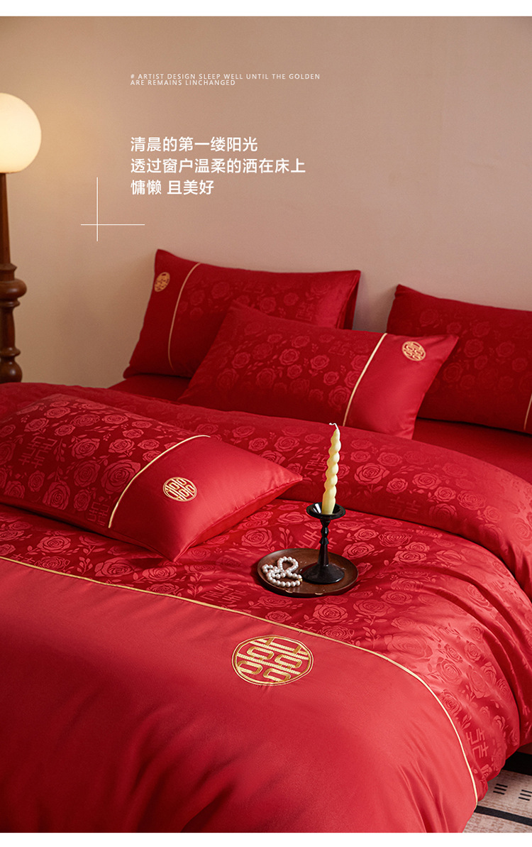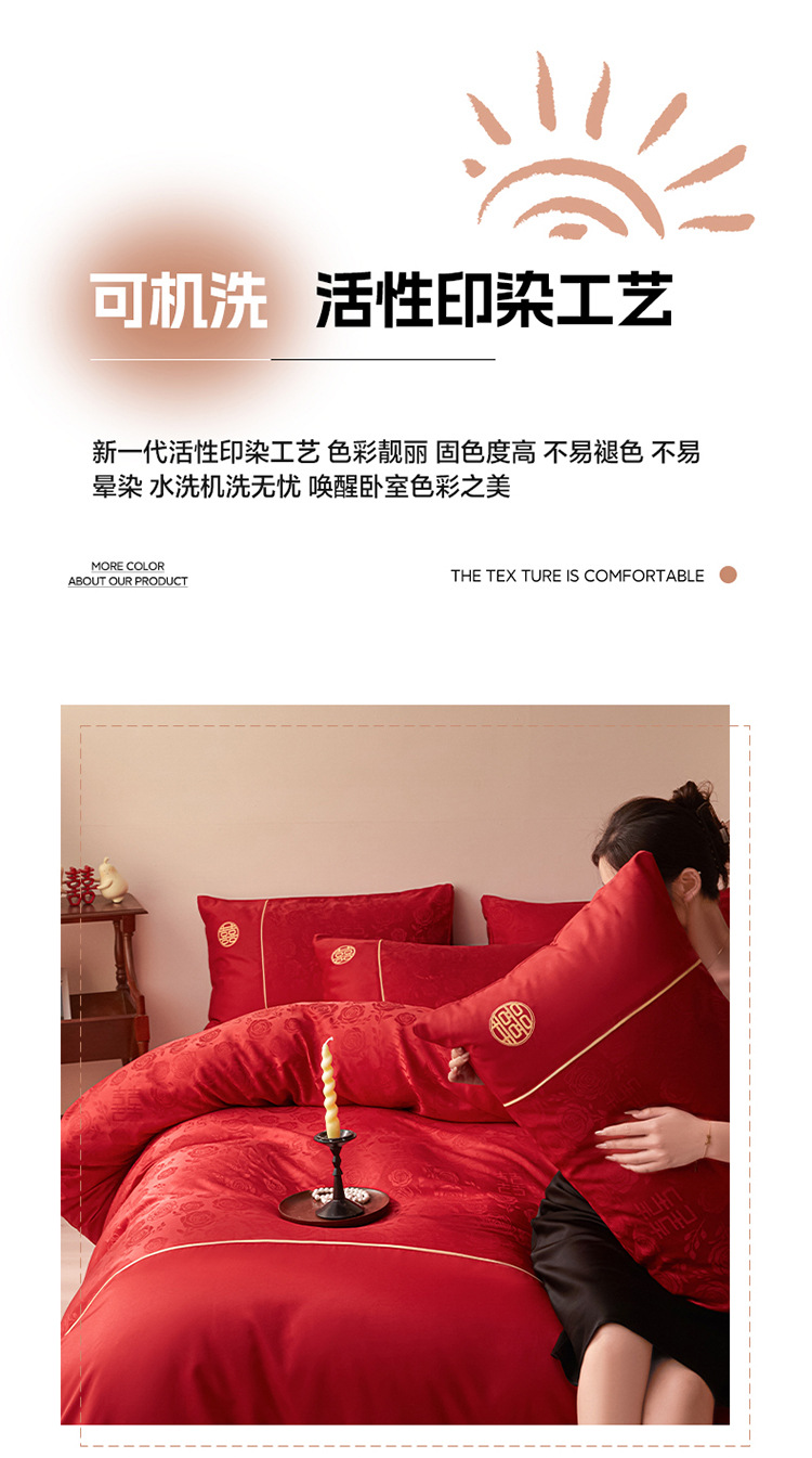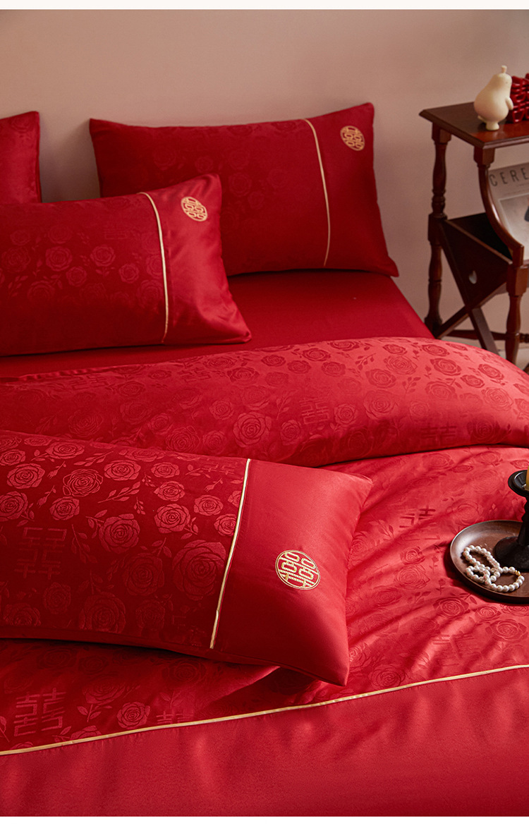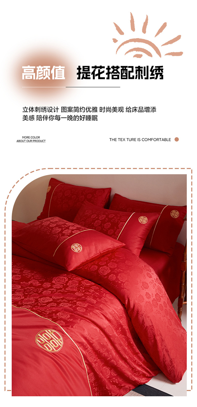 高档提花结婚四件套婚庆大红色婚床床品被套新婚床上用品喜被床单