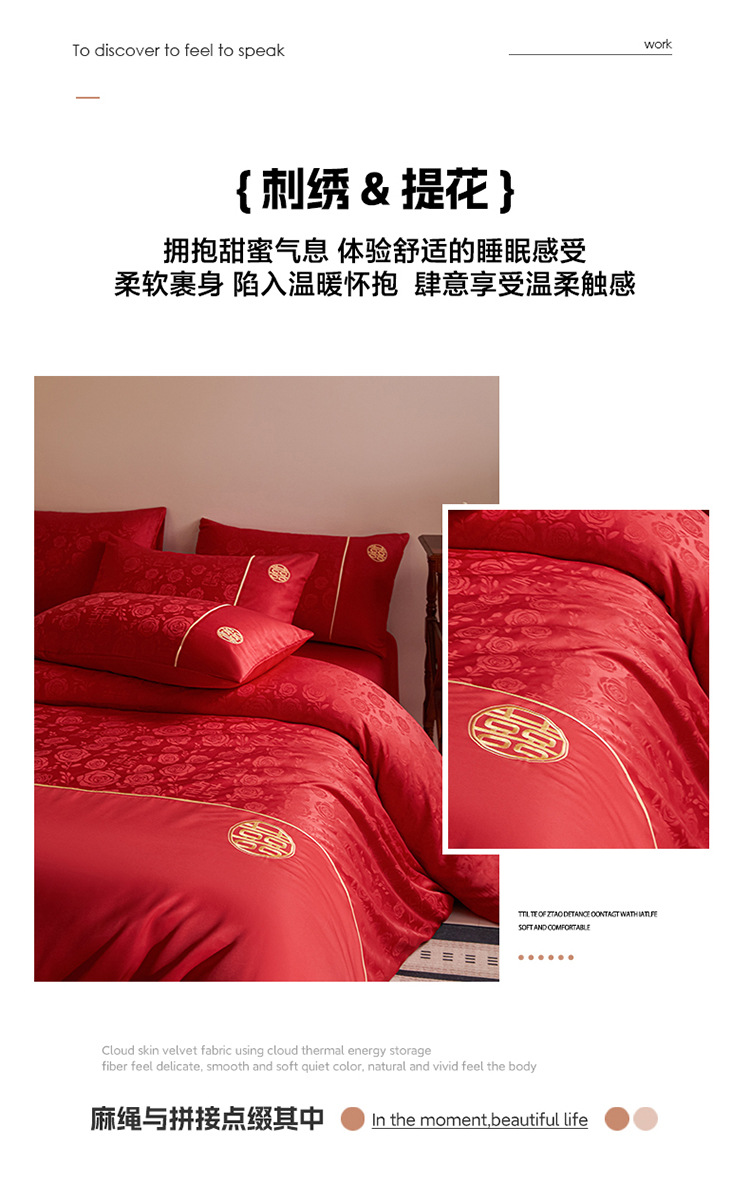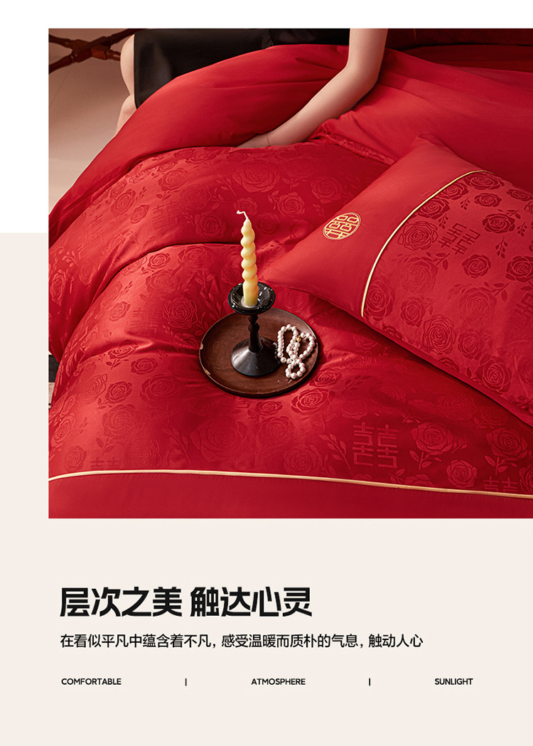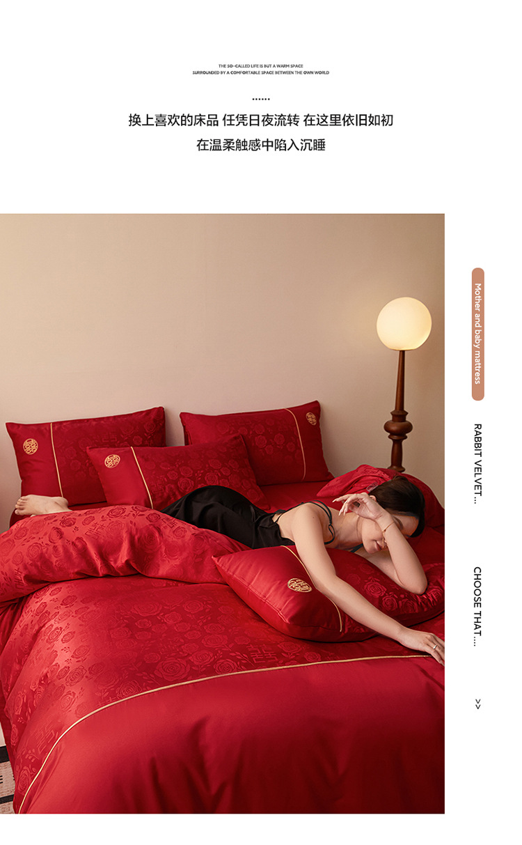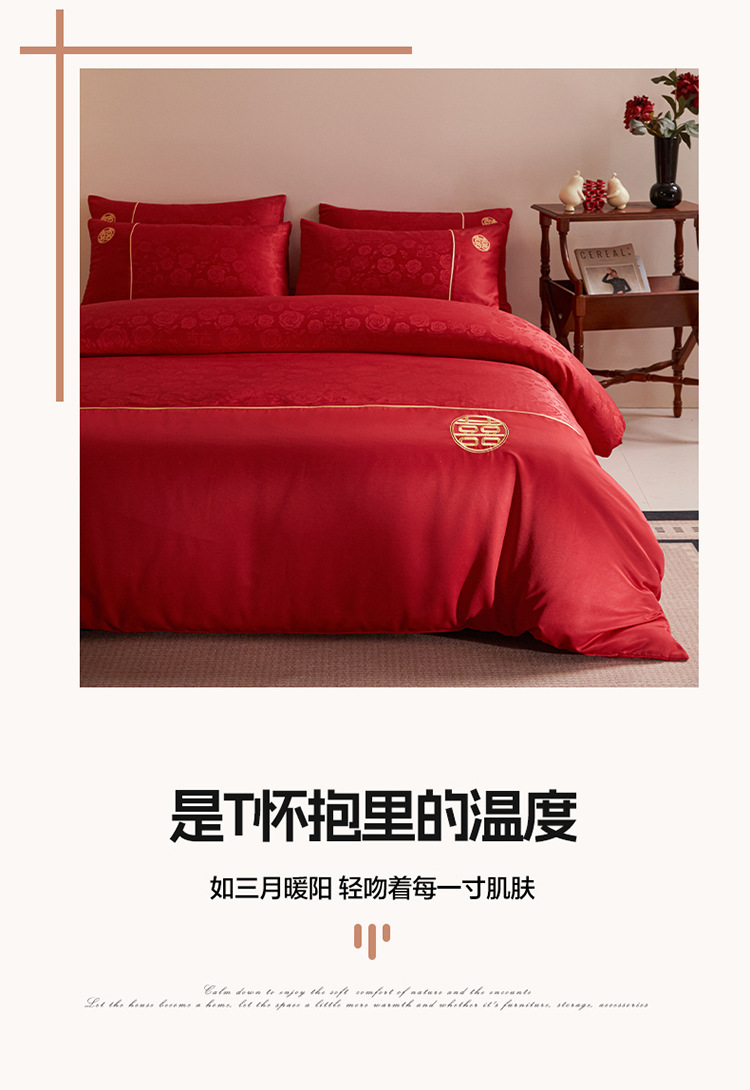 高档提花结婚四件套婚庆大红色婚床床品被套新婚床上用品喜被床单