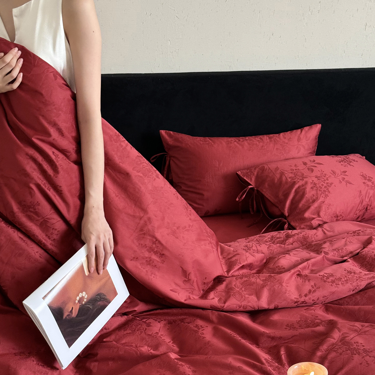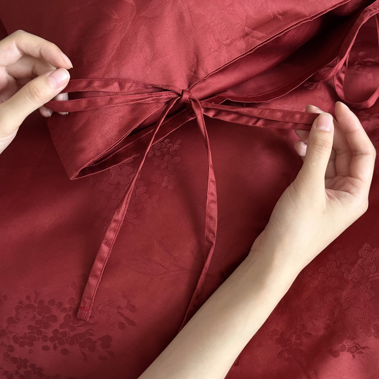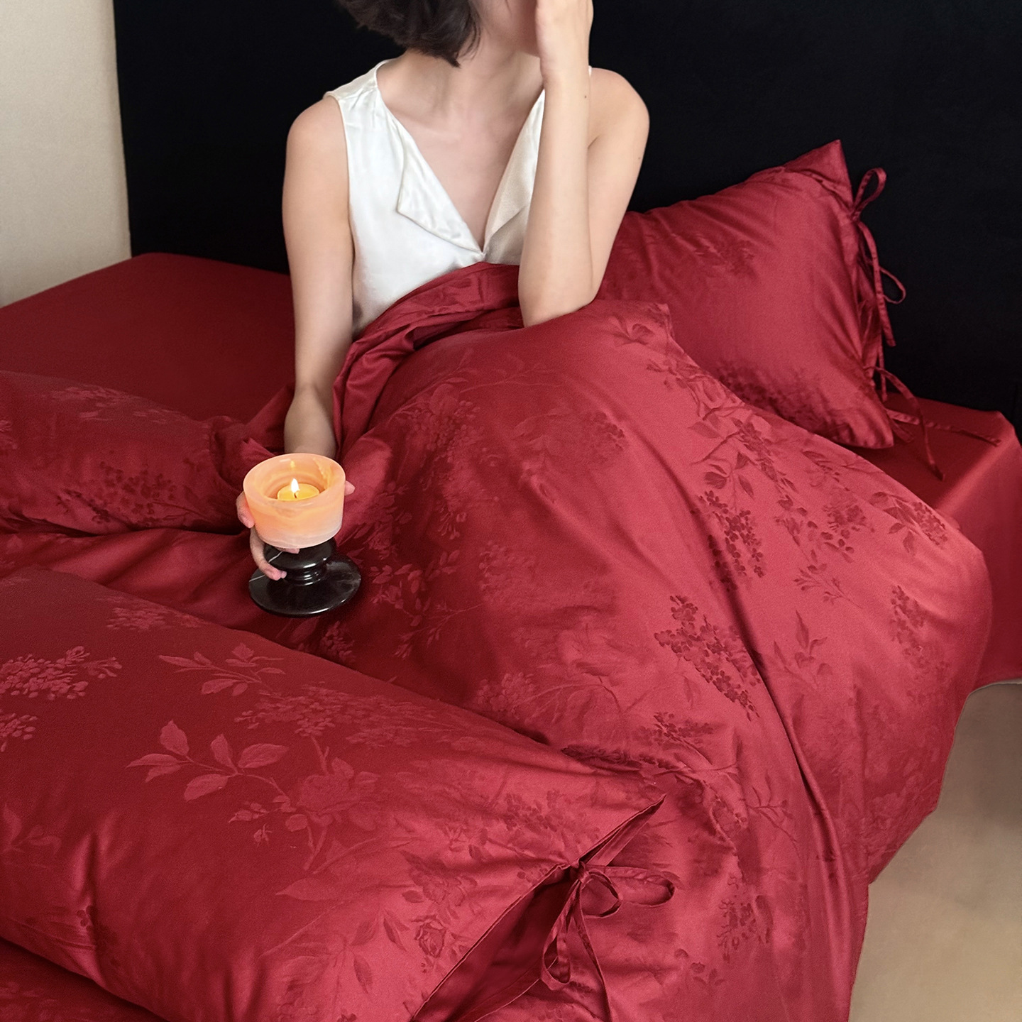 新中式红色婚庆全棉四件套 100支长绒棉贡缎提花婚嫁结婚床上用品
