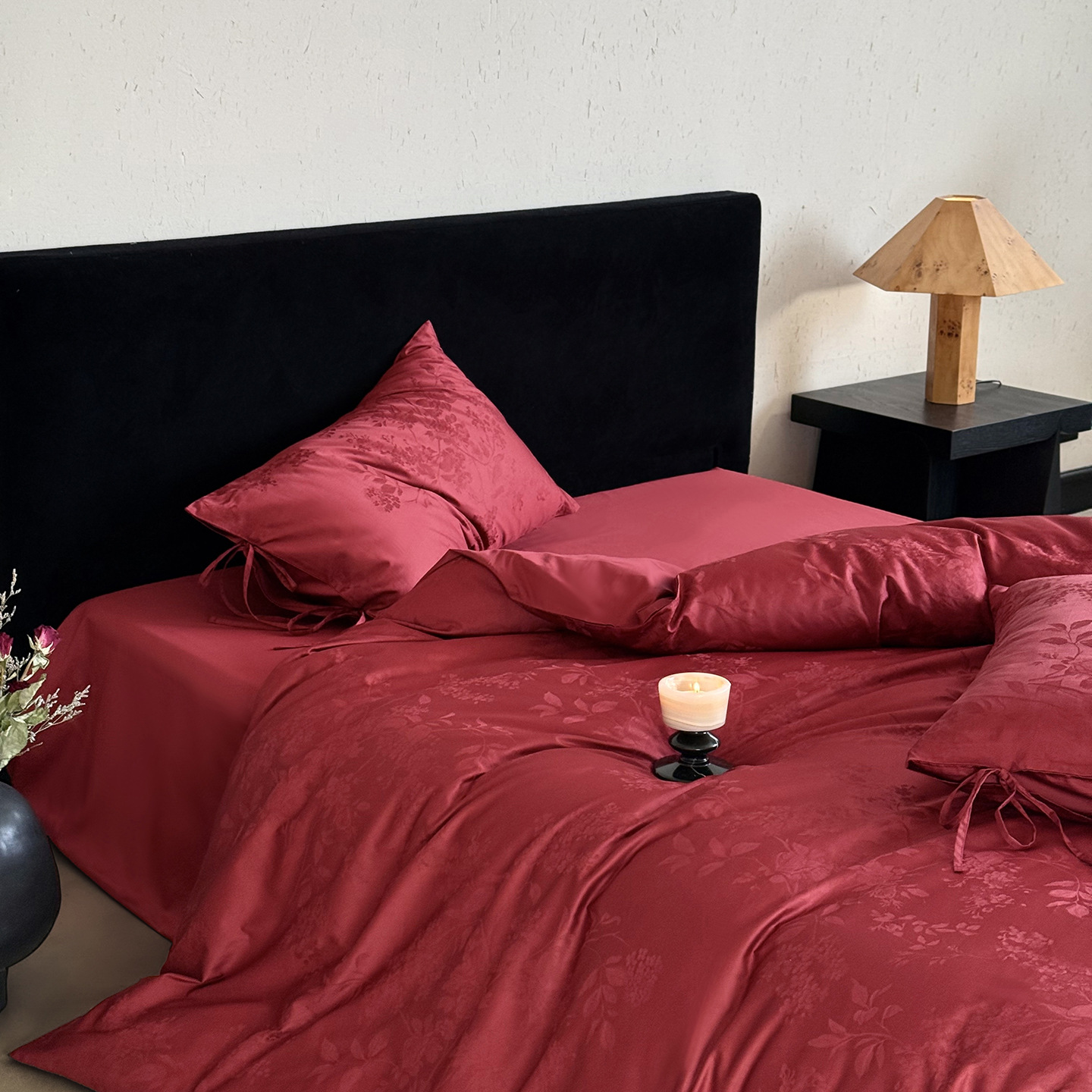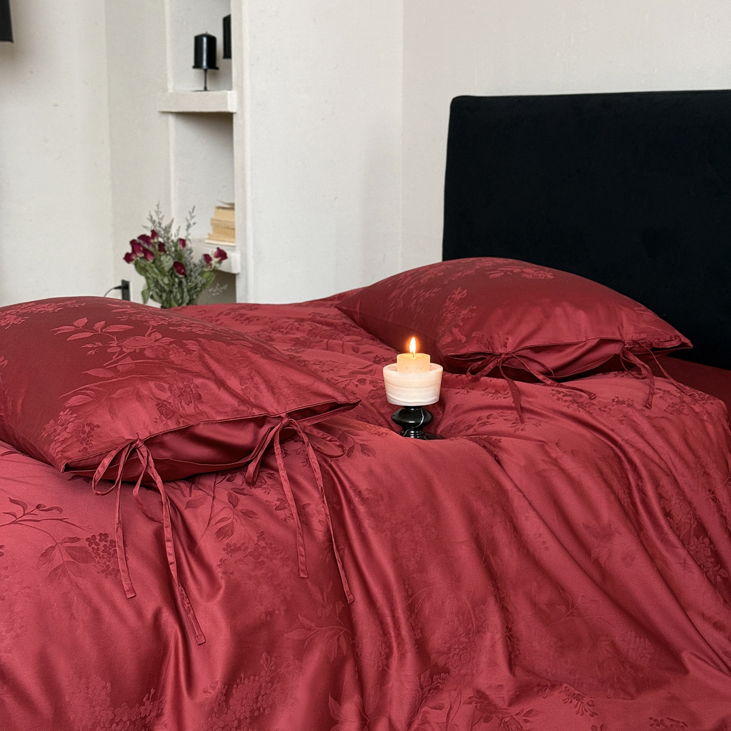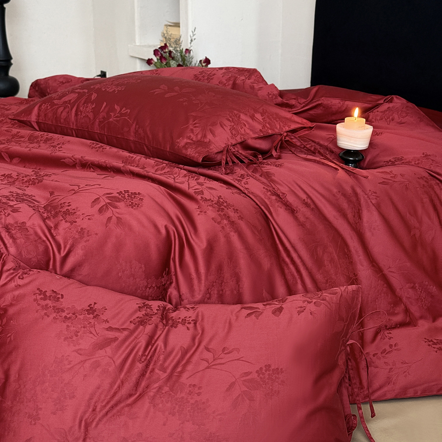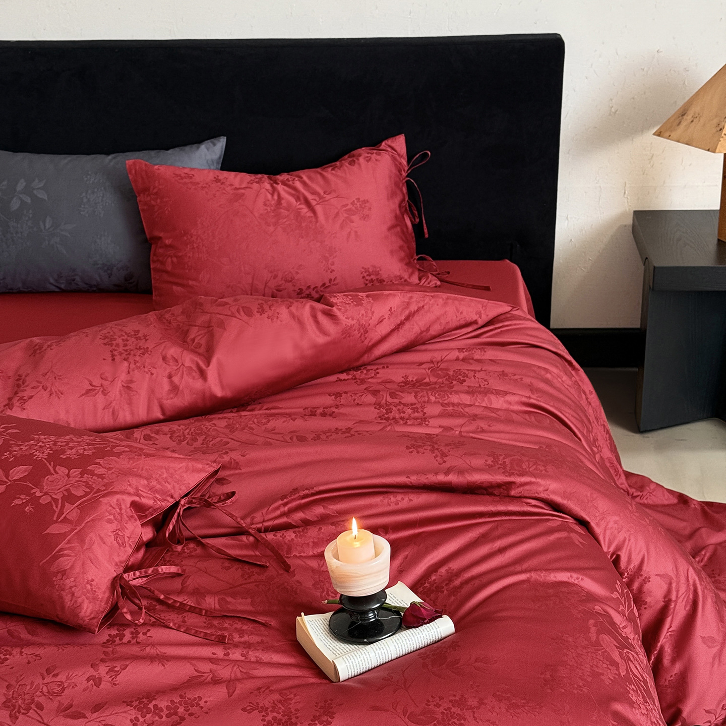 新中式红色婚庆全棉四件套 100支长绒棉贡缎提花婚嫁结婚床上用品
