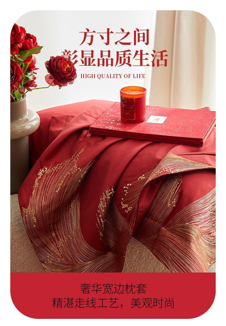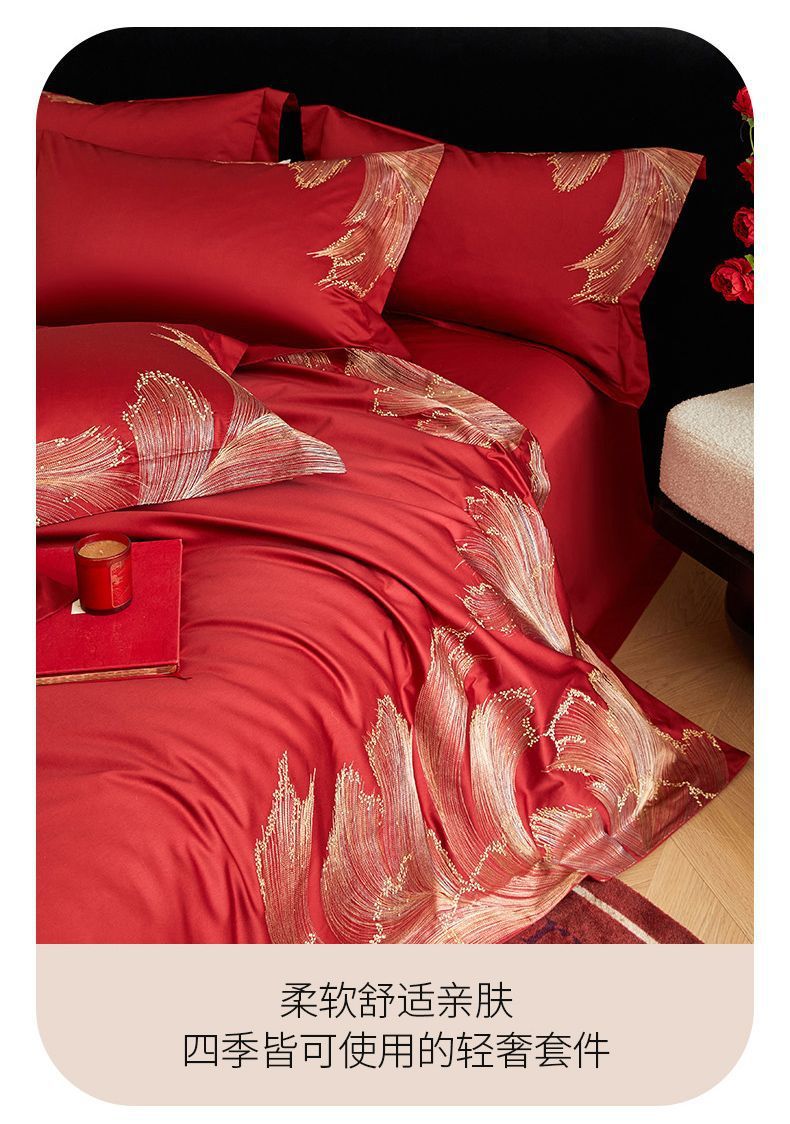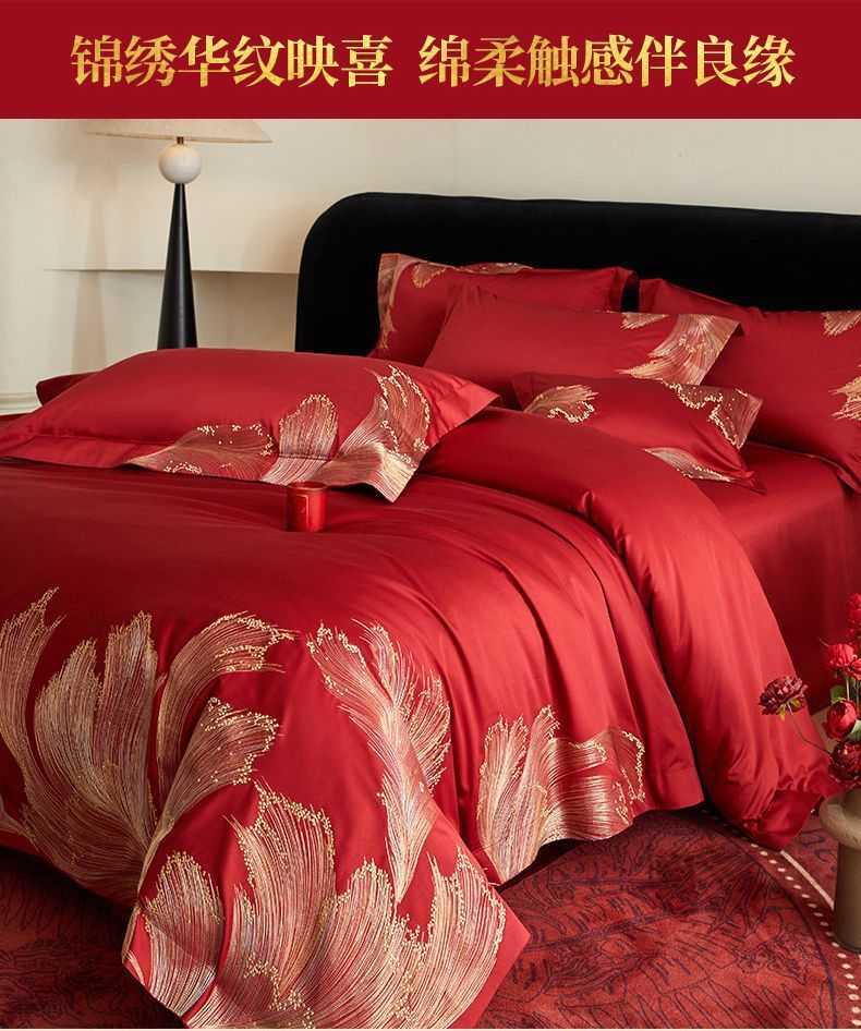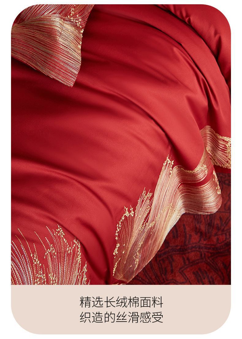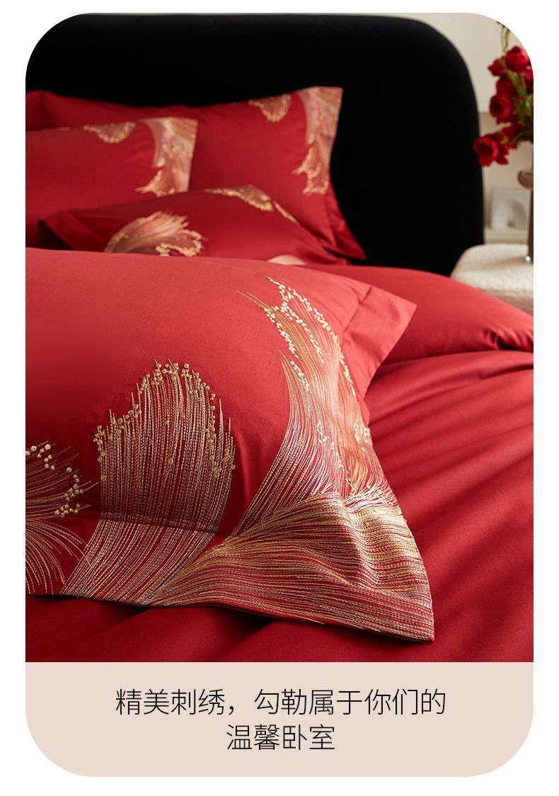 高端新婚婚庆A类长绒棉全棉四件套纯棉结婚房大红色婚嫁床单被套