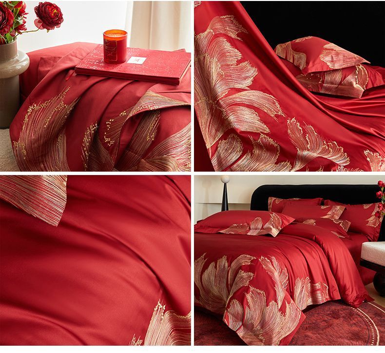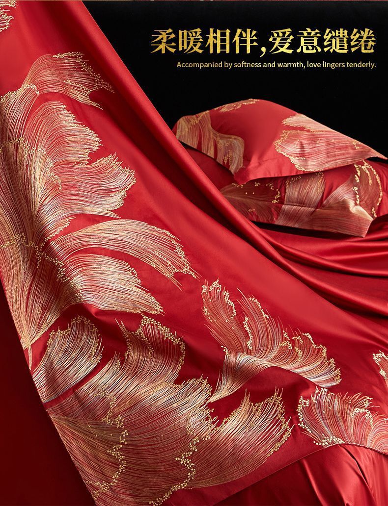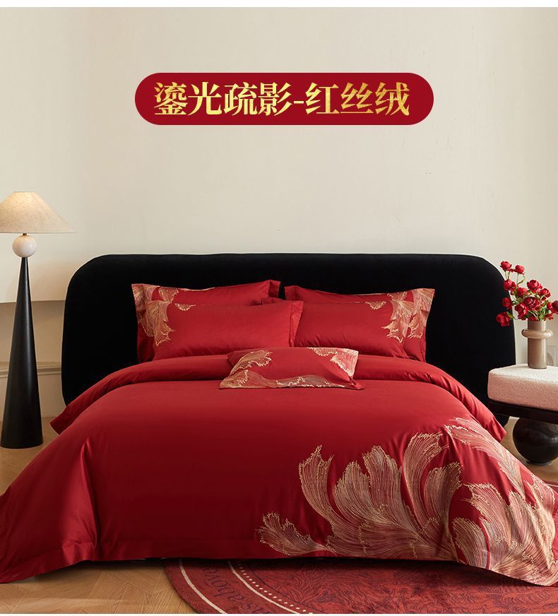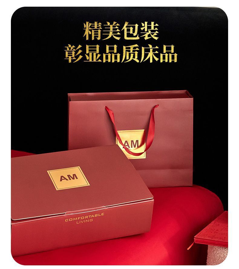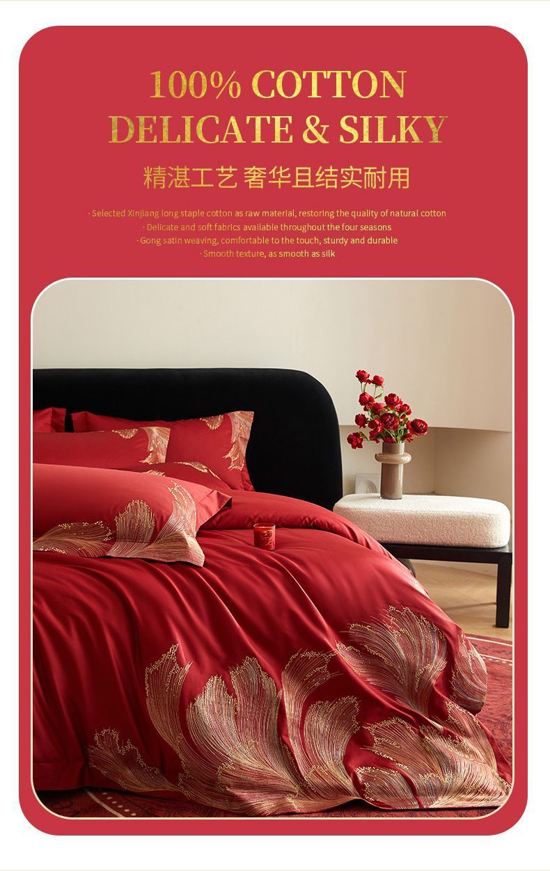 高端新婚婚庆A类长绒棉全棉四件套纯棉结婚房大红色婚嫁床单被套