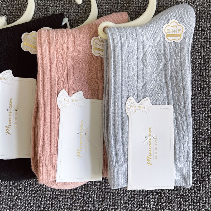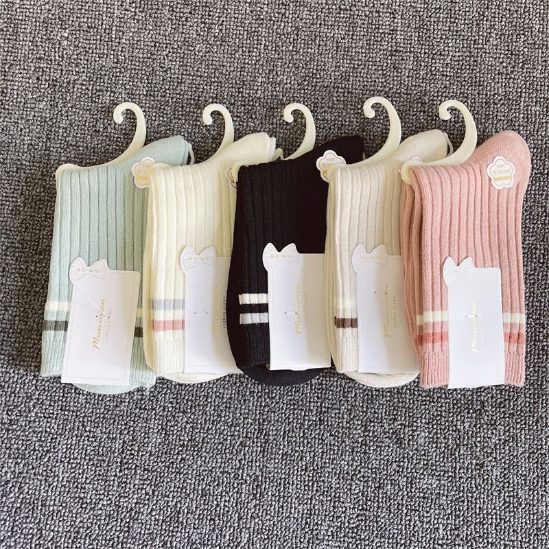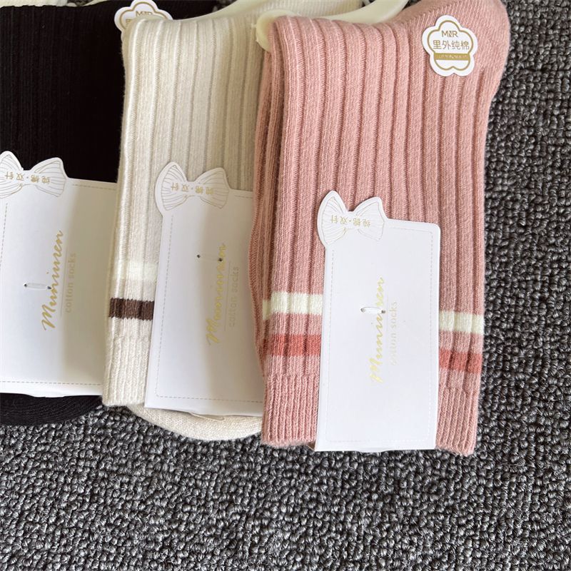 新疆棉秋冬季纯棉保暖袜子秋冬女士防臭吸汗中筒透气条纹双针女袜