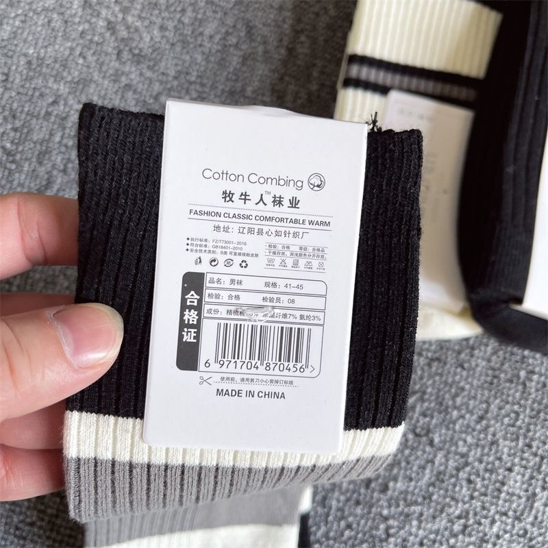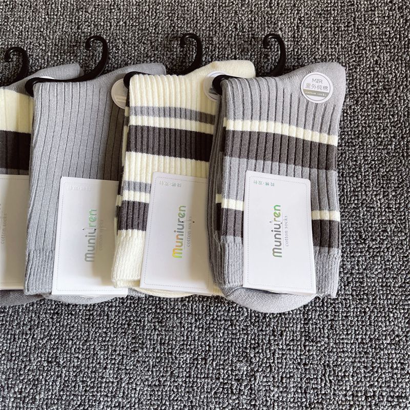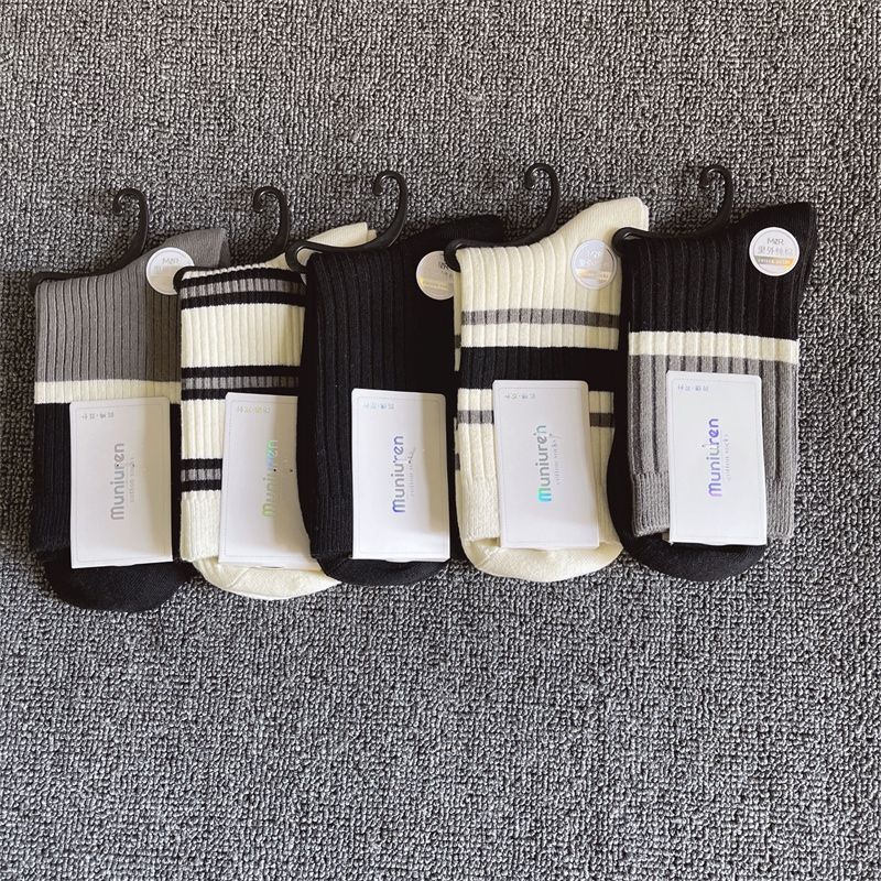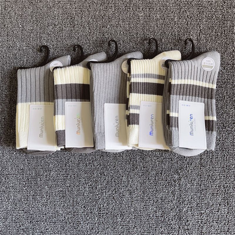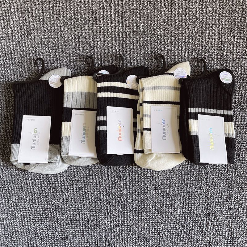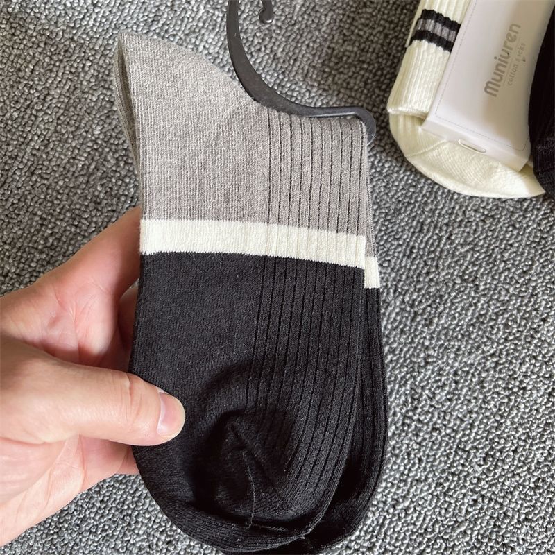 男士条纹袜子纯棉吸汗防臭秋冬季中筒袜男款棉袜青少年运动长筒袜