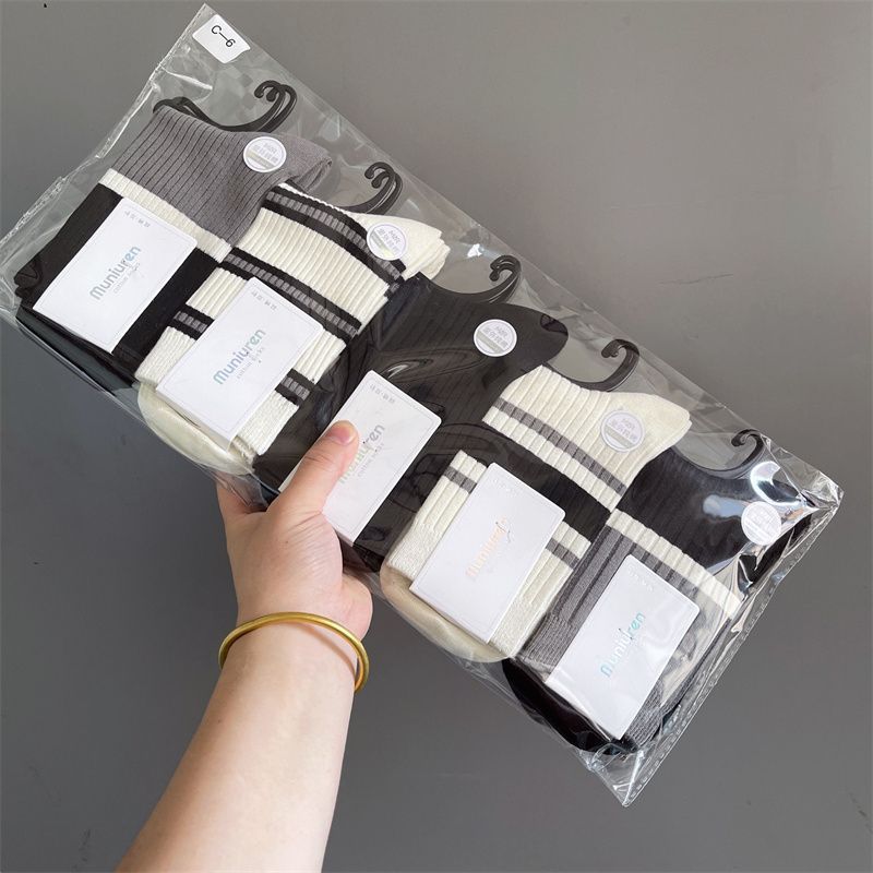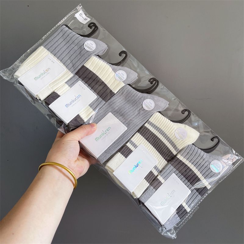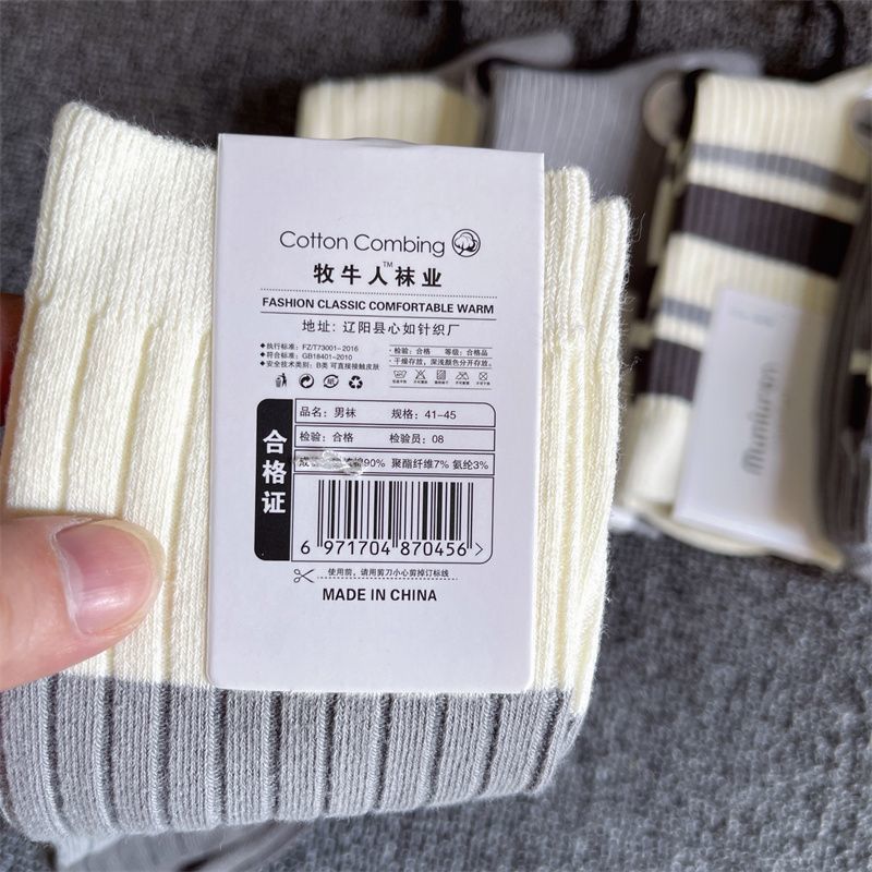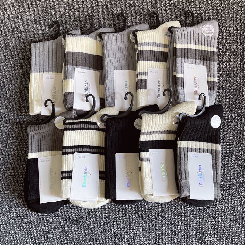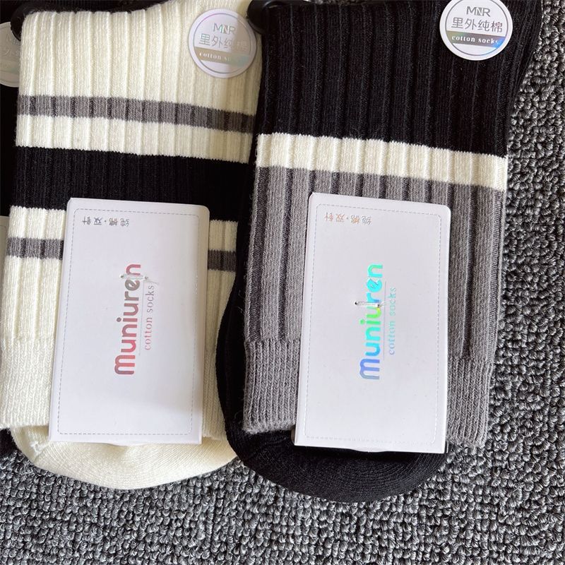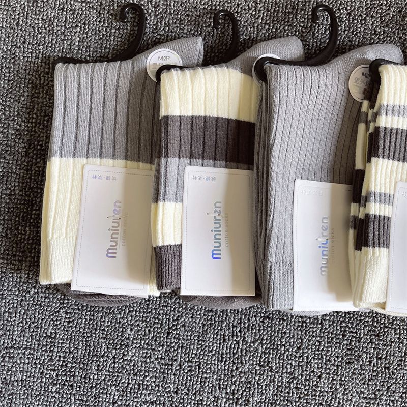 男士条纹袜子纯棉吸汗防臭秋冬季中筒袜男款棉袜青少年运动长筒袜