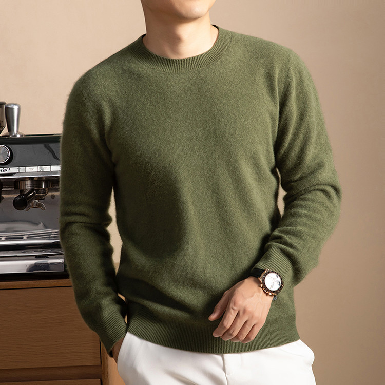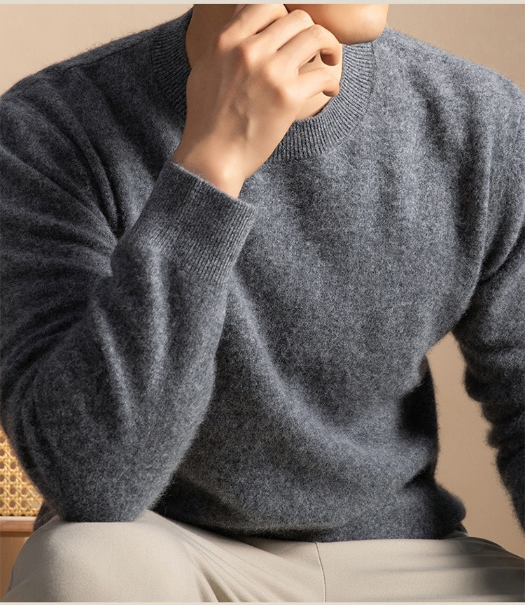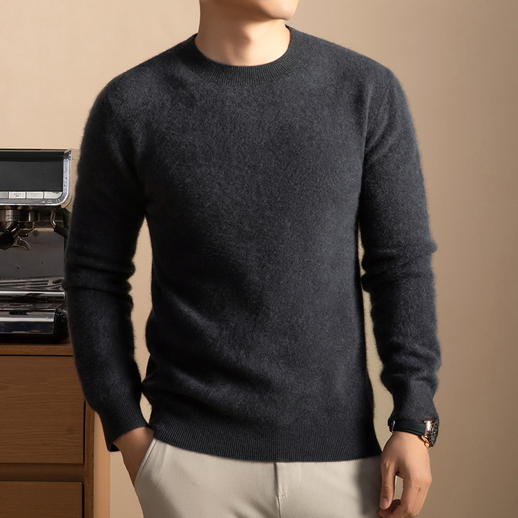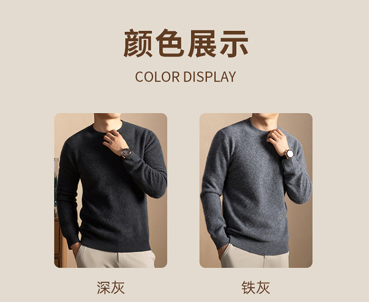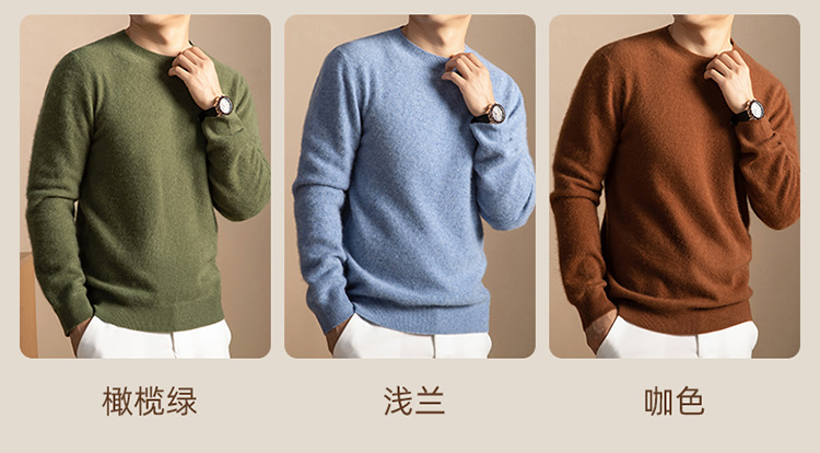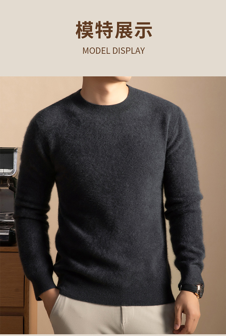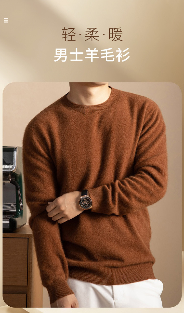 【拉毛工艺】羊毛衫男新款纯色圆领冬季保暖毛衣含羊绒打底衫