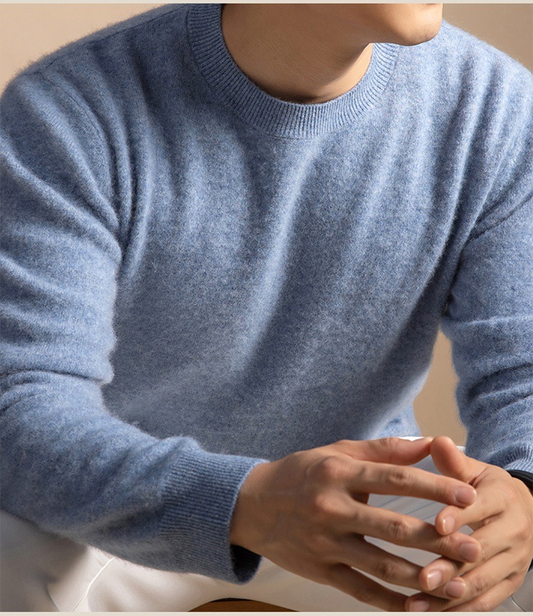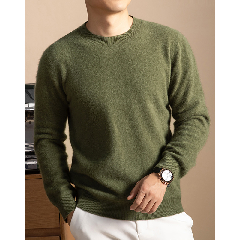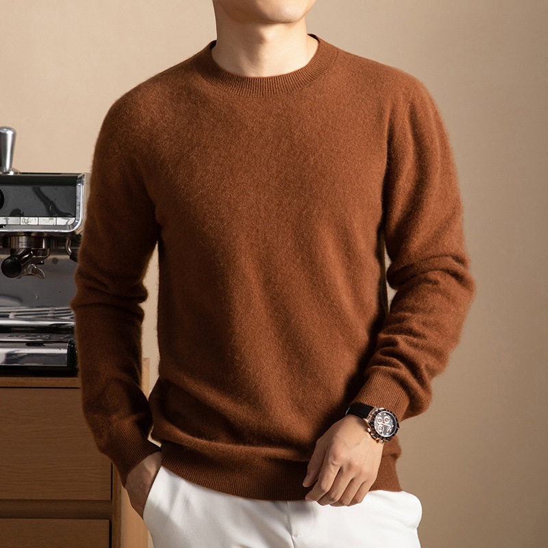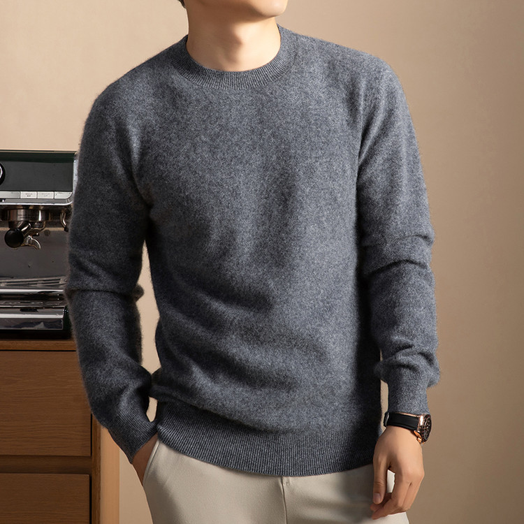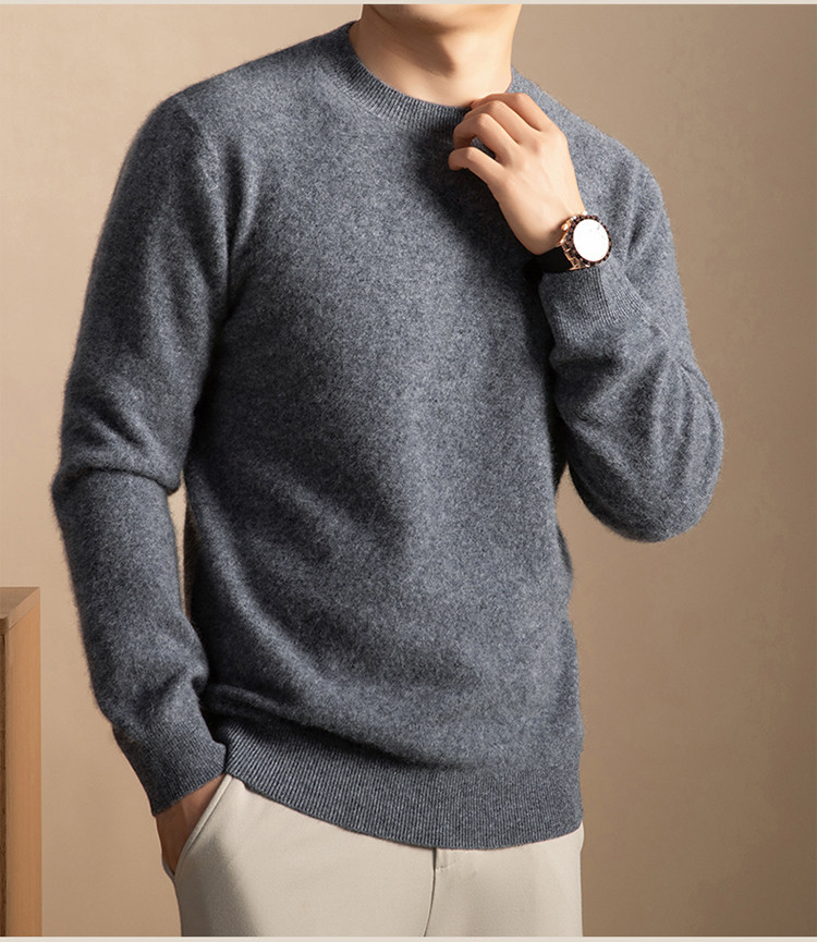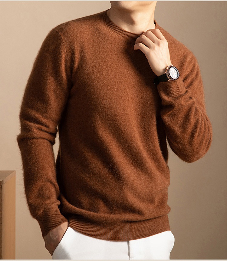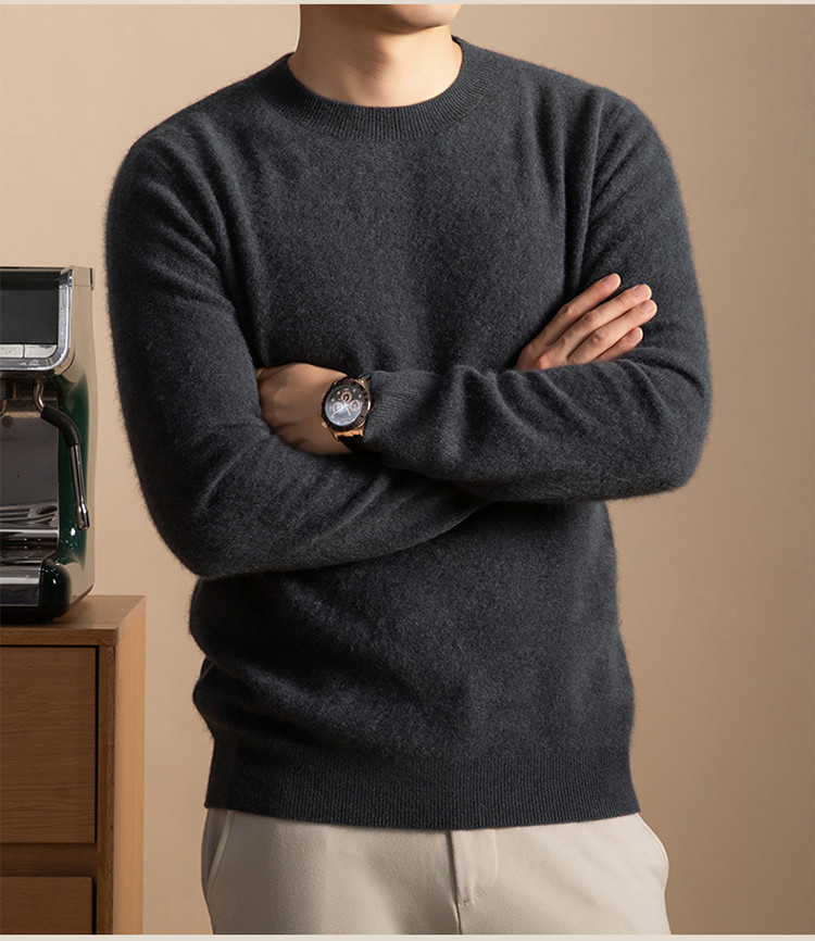 【拉毛工艺】羊毛衫男新款纯色圆领冬季保暖毛衣含羊绒打底衫