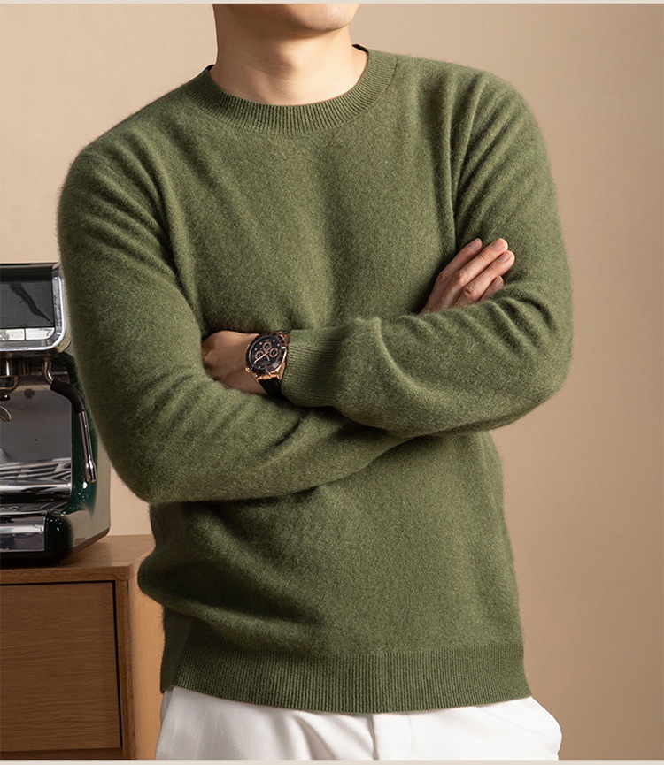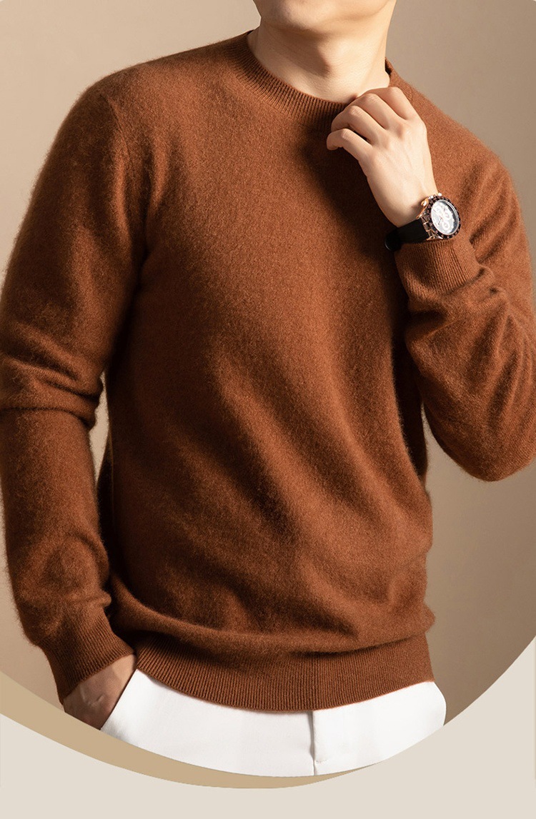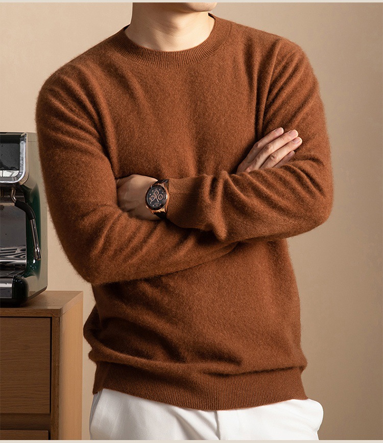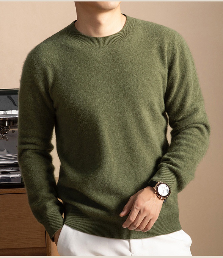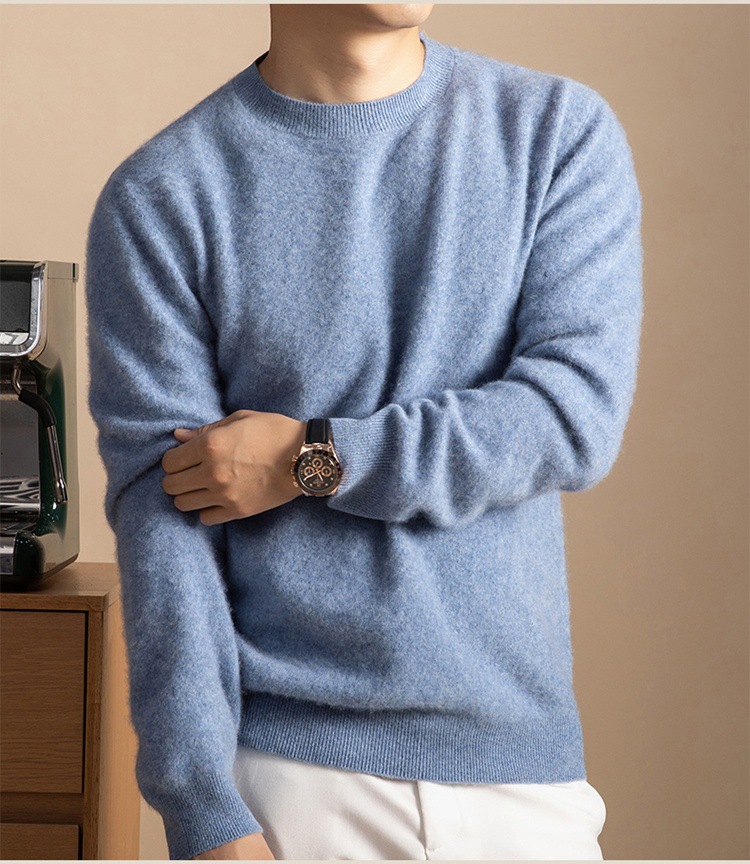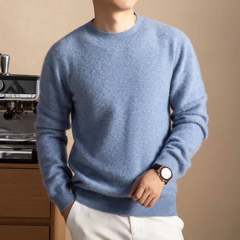 【拉毛工艺】羊毛衫男新款纯色圆领冬季保暖毛衣含羊绒打底衫