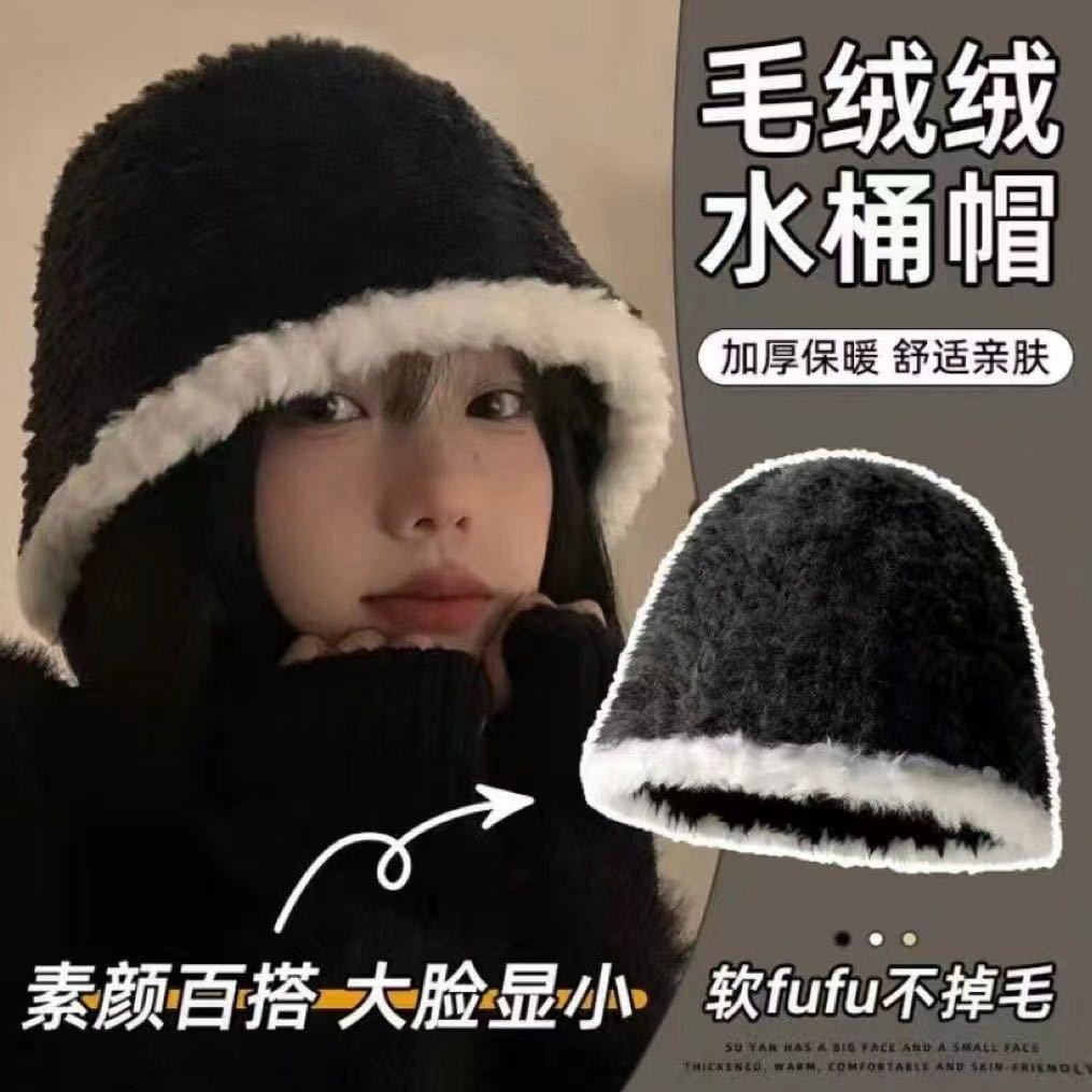 大头围帽子女秋冬白色兔毛渔夫帽2024年爆款毛绒水桶帽显脸小盆帽