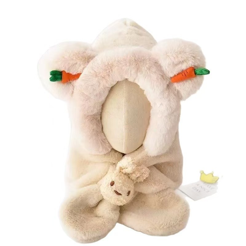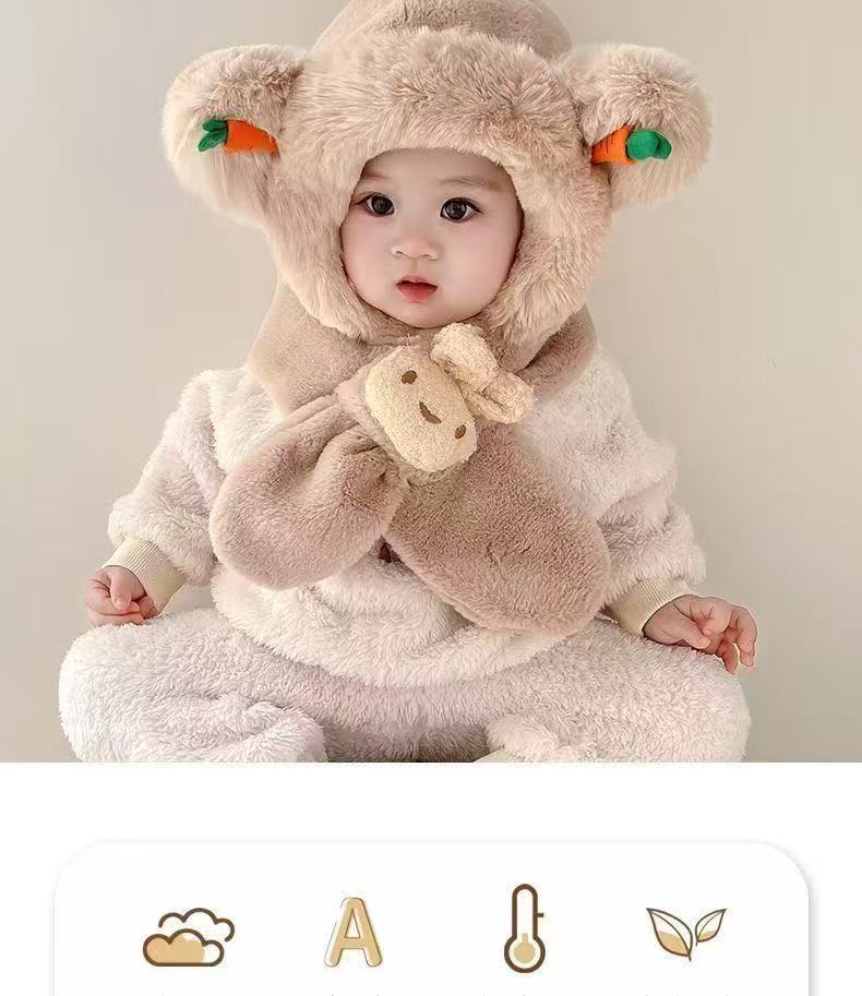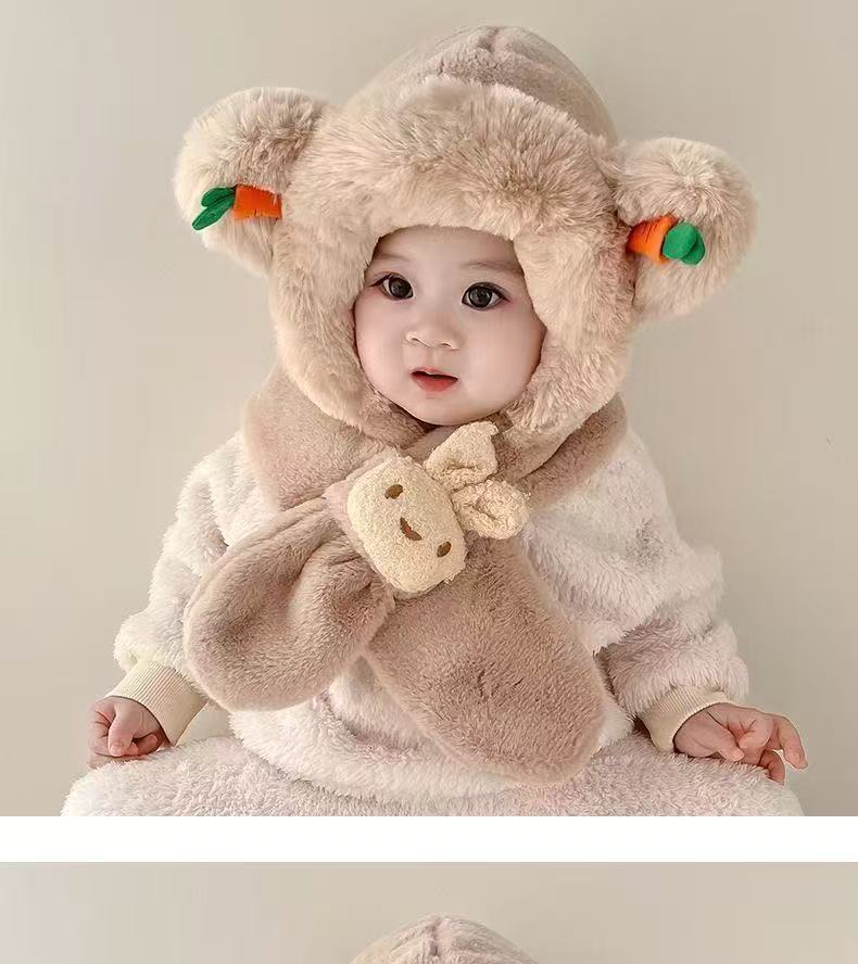 宝宝冬季帽子围巾一体加绒保暖儿童防风护耳帽男童女童加厚毛绒帽