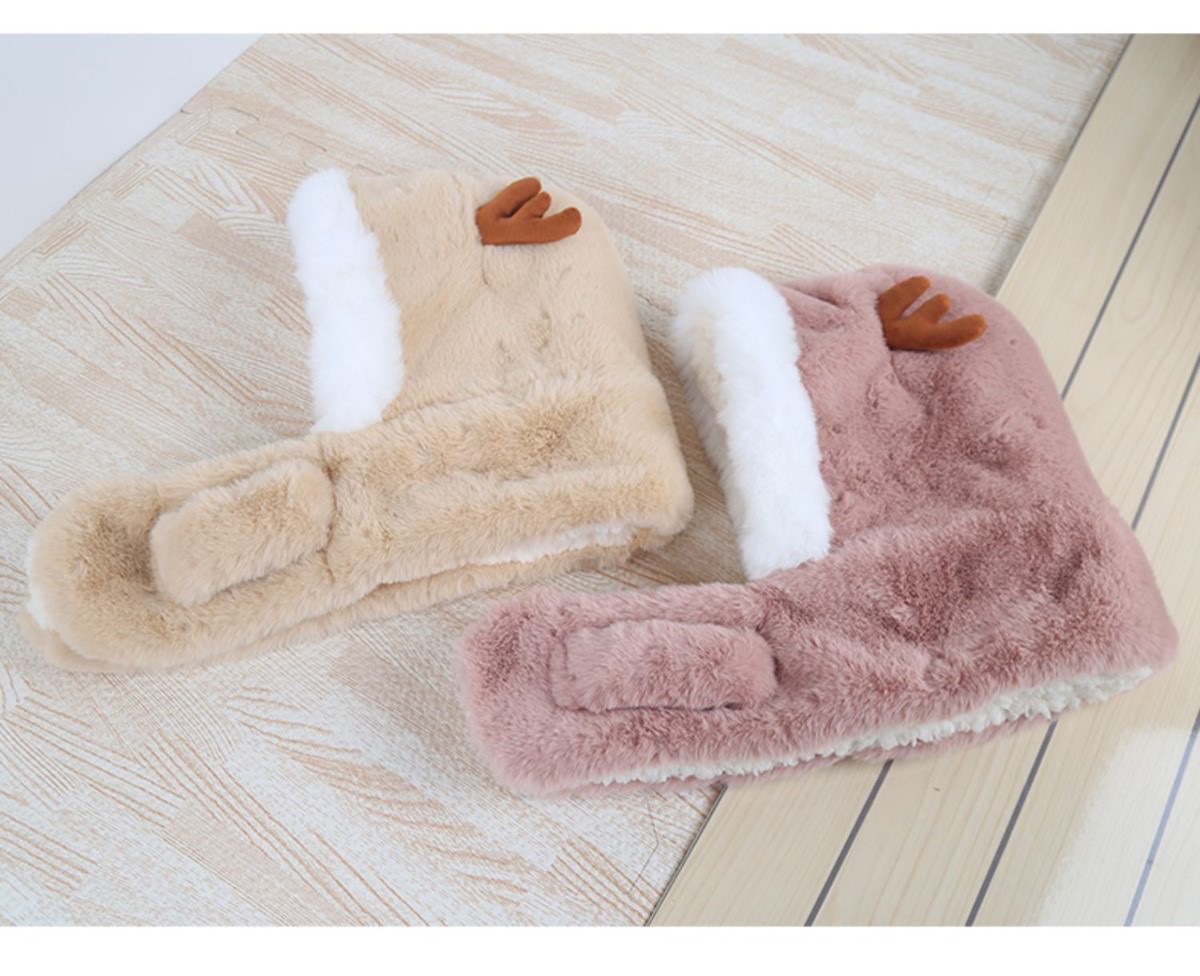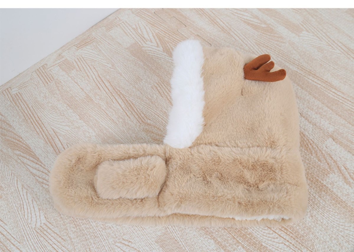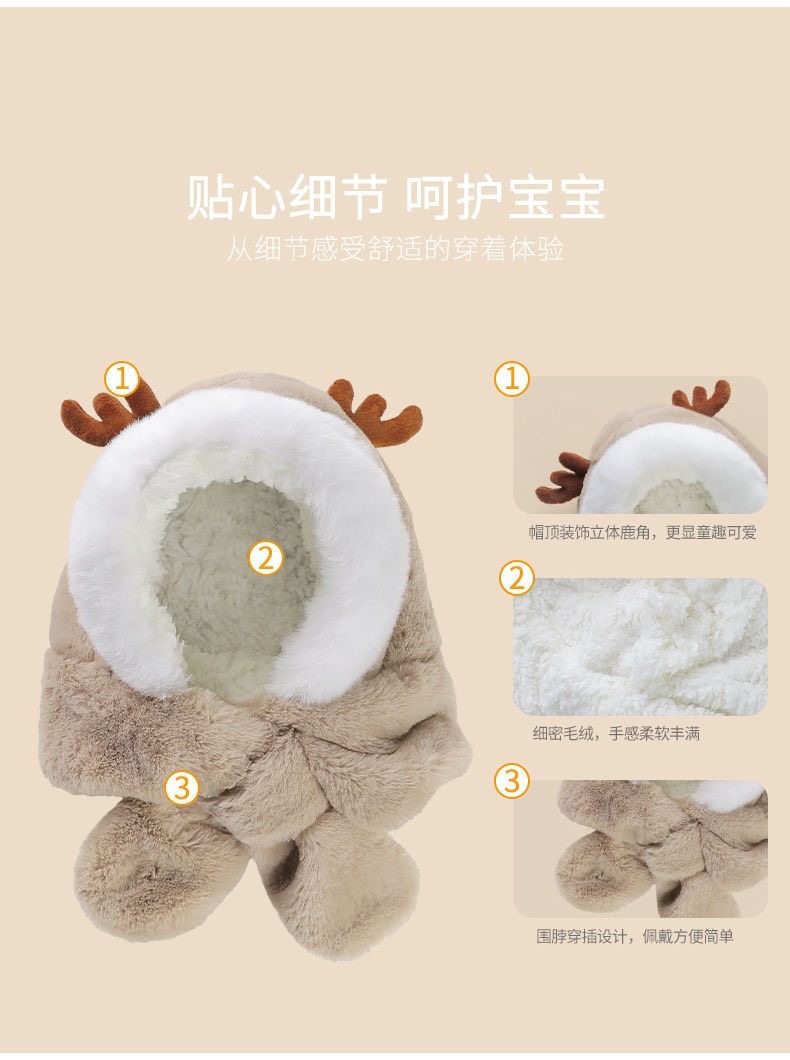 冬季儿童帽子围巾一体男女童加厚保暖婴儿可爱宝宝动物防风护耳帽
