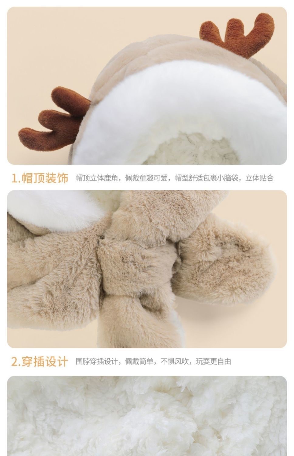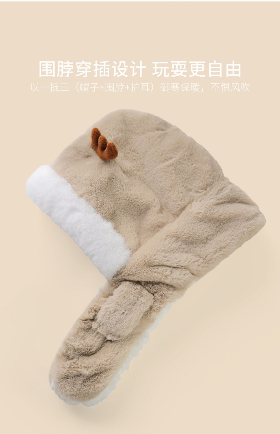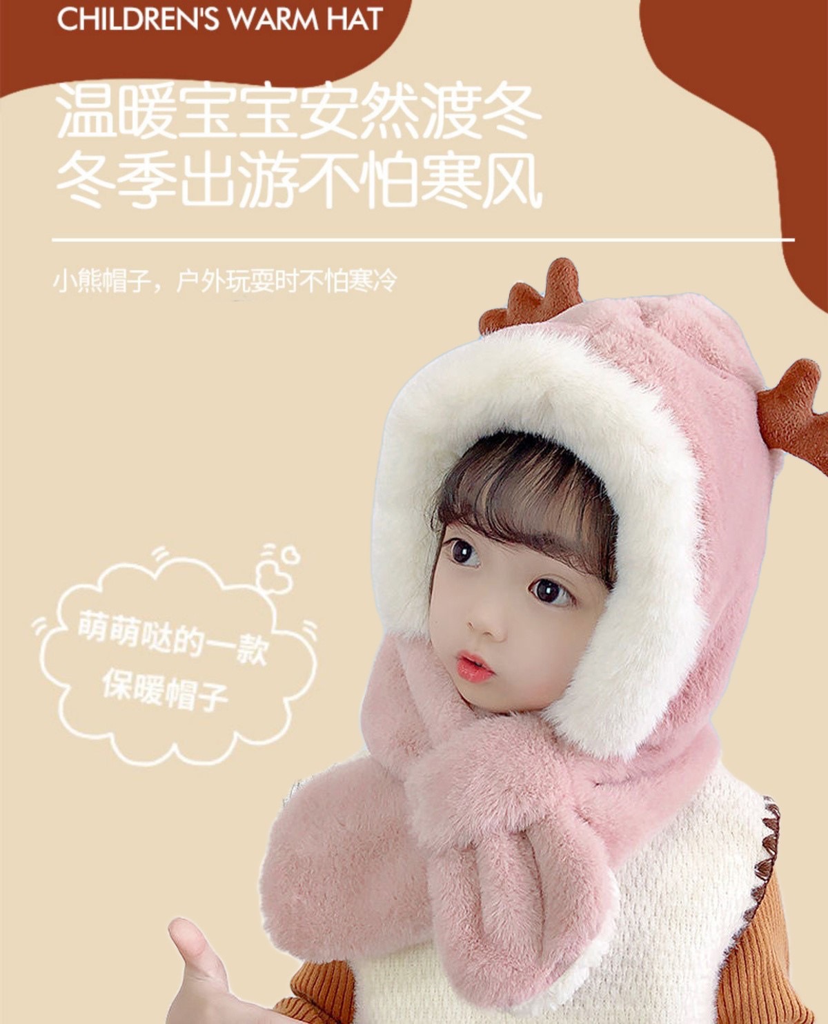 冬季儿童帽子围巾一体男女童加厚保暖婴儿可爱宝宝动物防风护耳帽