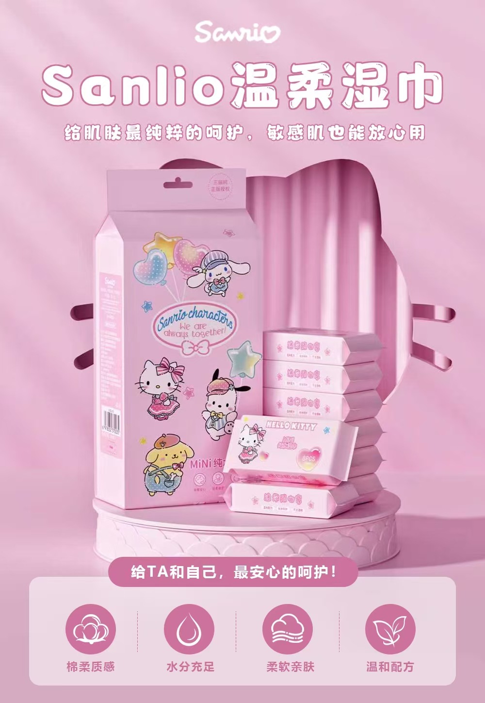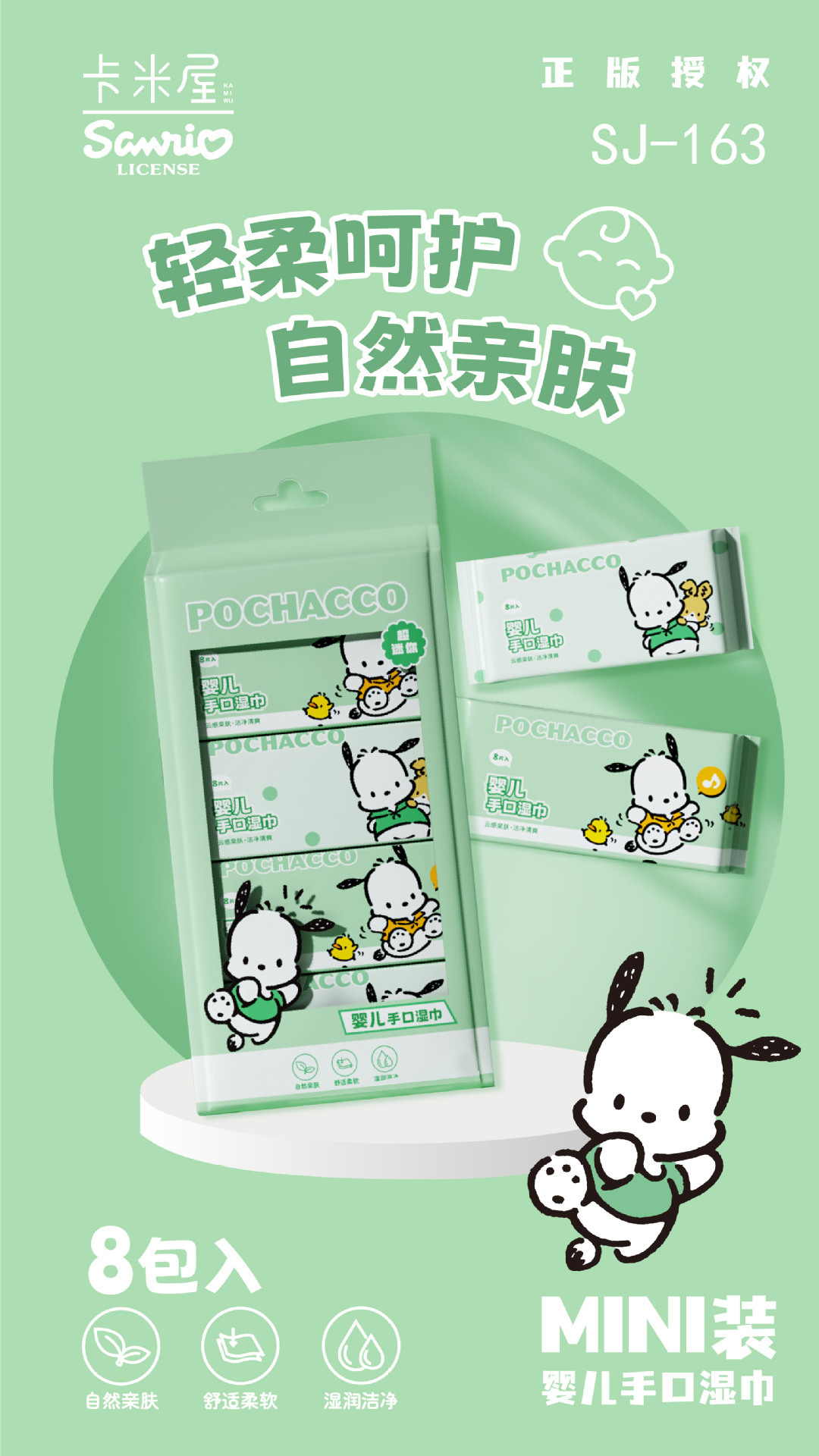 三丽鸥帕恰狗婴儿专用手口湿巾小包便携湿巾纸母婴儿童宝宝湿纸巾