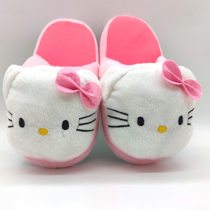 冬季泡沫情侣粉色红色KT猫现货超柔绒女圆形粘胶鞋套趾拖鞋棉拖鞋