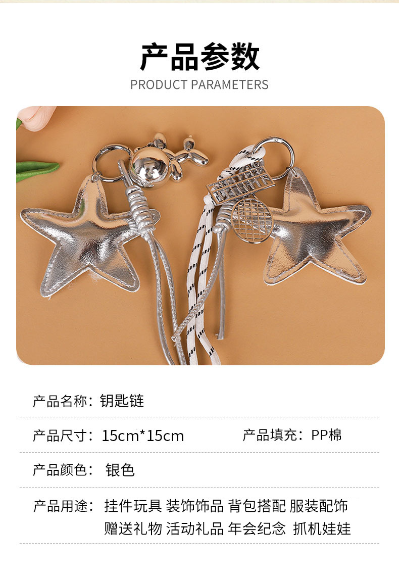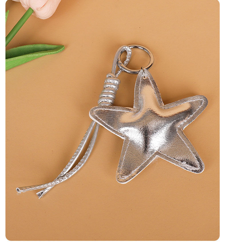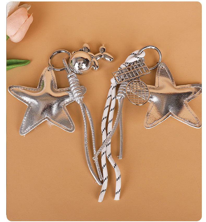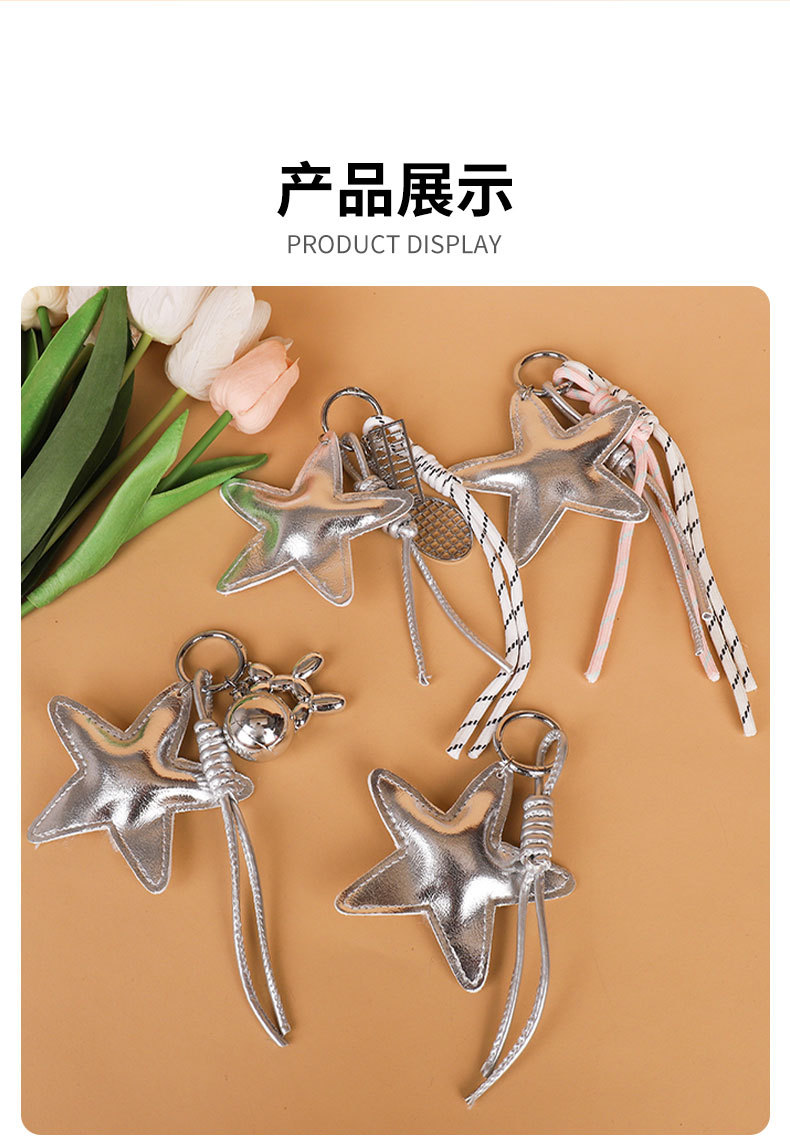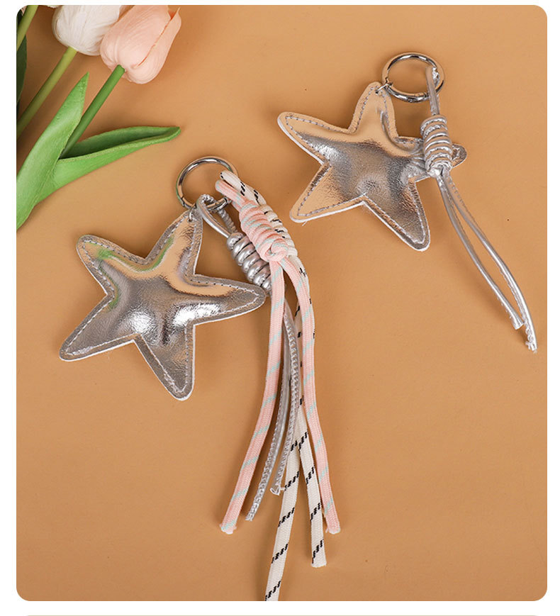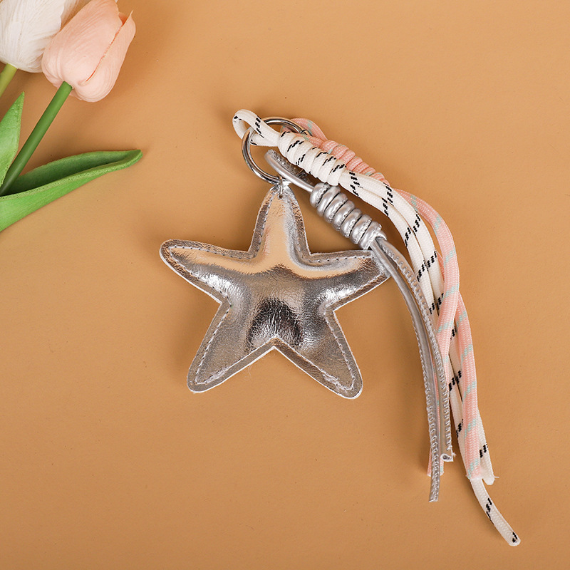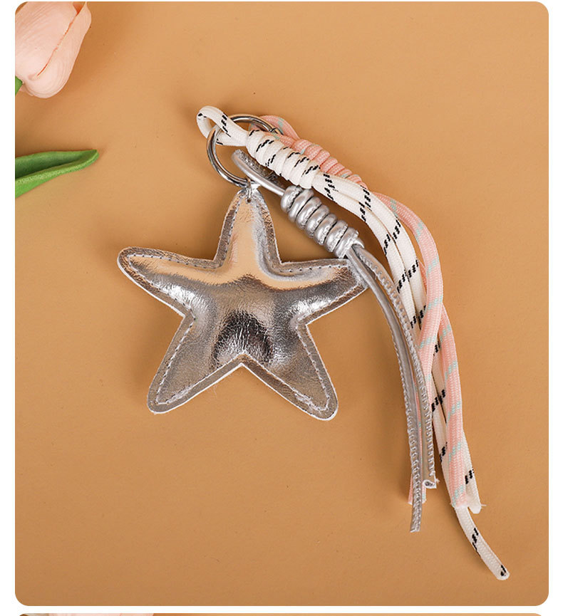 韩系可爱皮革五角星挂件精致登山绳甜酷钥匙扣挂饰手机挂饰包包